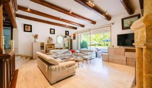 The house is organized mainly on one level, around a vast entrance hall leading to a large living room with a stone fireplace, a convivial dining room opening onto a sheltered terrace, the garden and the swimming pool.
