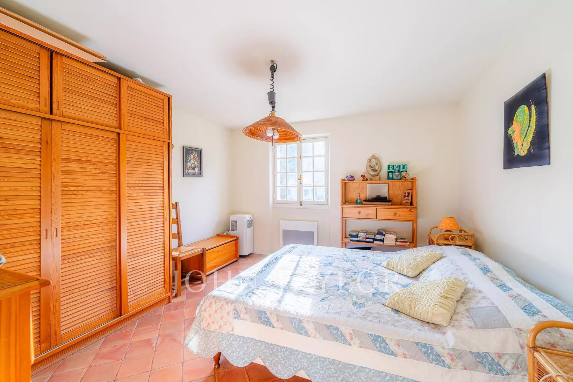 Organized on two levels, the first floor comprises an entrance hall, a bright living room, a dining room, a large closed kitchen and an adjoining scullery. Upstairs are four bedrooms, including a vast master suite with a walk-in closet and spacious bathroom, and three bedrooms sharing a bathroom.