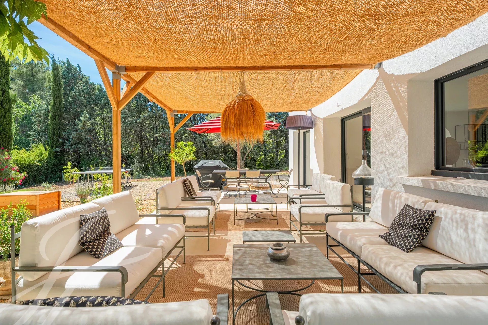 Only 4 km from the center of Aix-en-Provence, within a secure and peaceful residence, this fully renovated house of approximately 250 m² offers an exceptional and highly sought-after living environment.