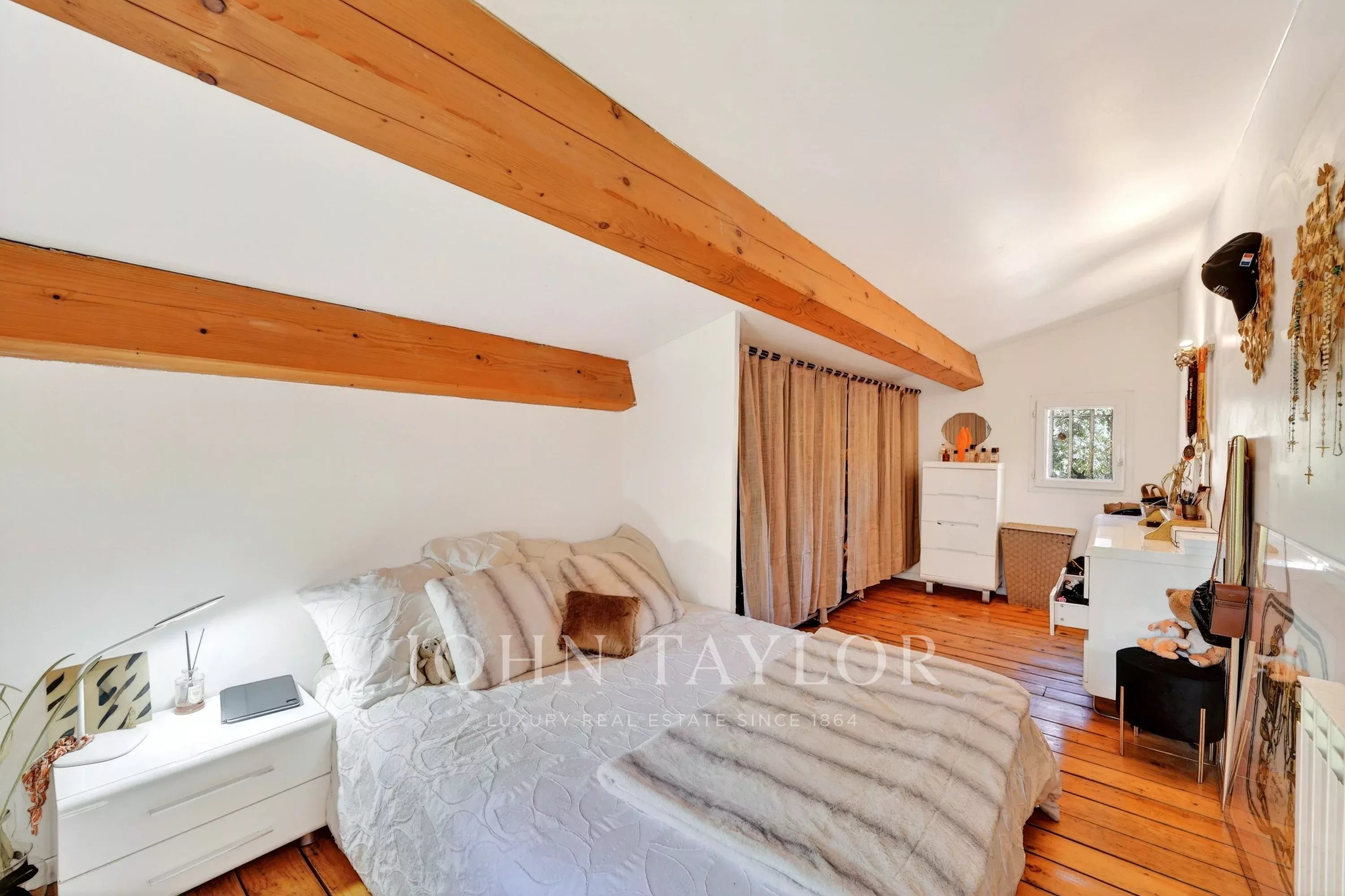 Just a few minutes from the center of Aix-en-Provence, in a privileged natural environment with spectacular views of Sainte Victoire, this character property of approximately 210 m² is set in the heart of a walled park of nearly 7,500 m².