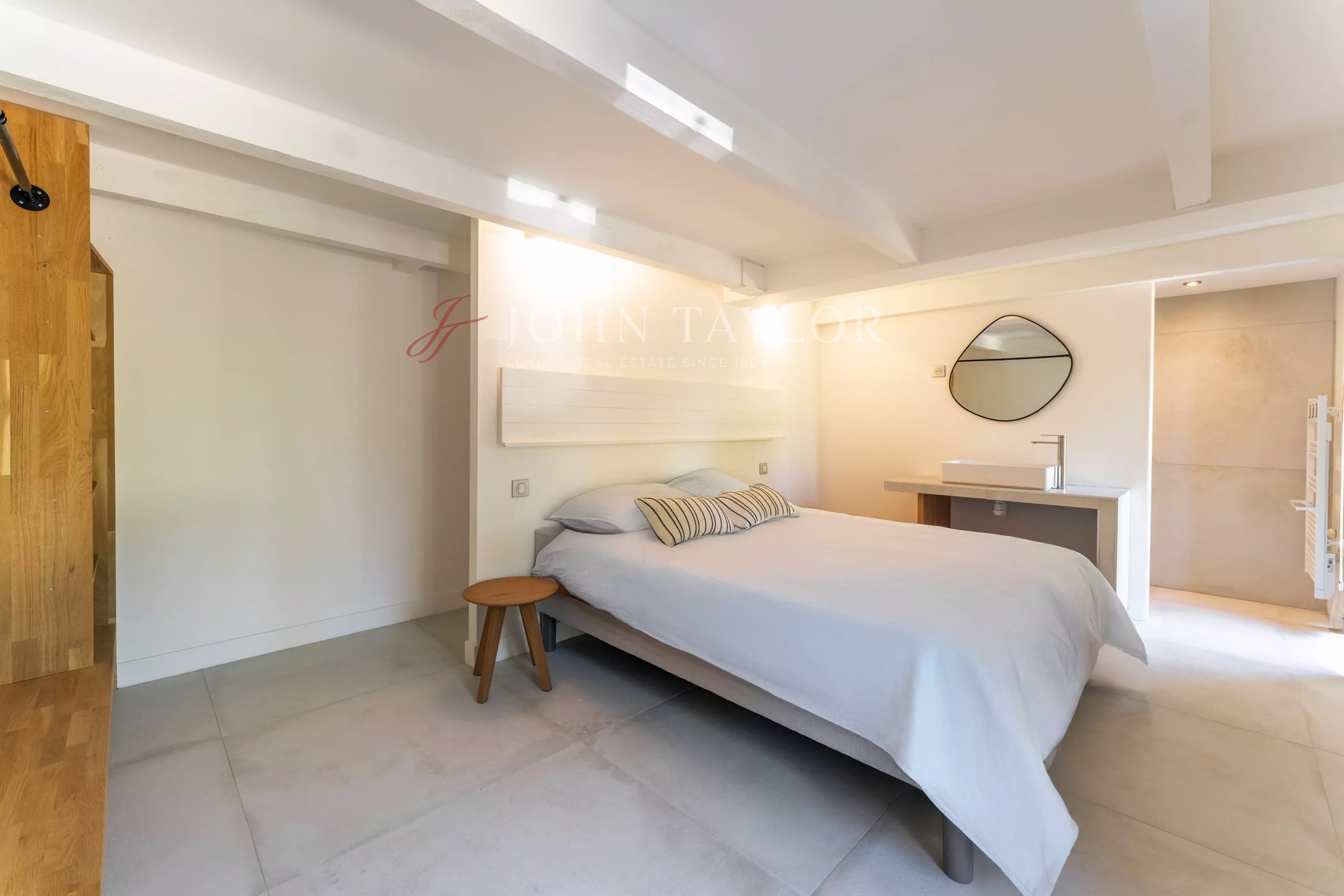 On the ground floor, a spacious master suite, a suite with a shower, and two elegant bedrooms share a bathroom, offering a perfect balance between privacy and conviviality. Upstairs, an additional bedroom, nestled under the eaves, has its own bathroom, offering a haven of tranquillity.