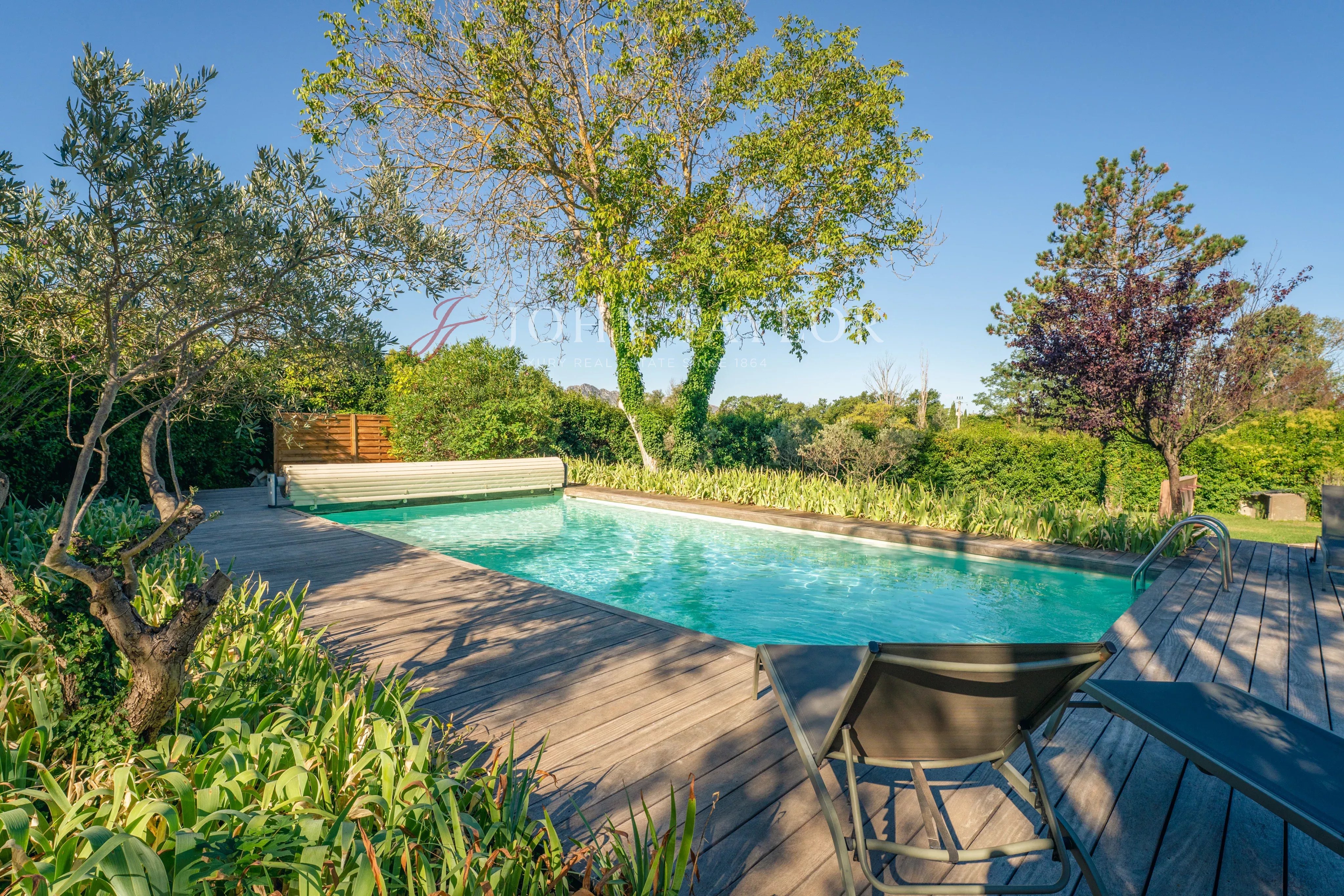 Surrounded by a fragrant pine forest, the property is nestled in a green setting, offering captivating views of the Alpilles mountain range. A Mediterranean garden, filled with generous plant species, houses a 10 x 5 metres heated swimming pool, bordered by a teak deck, inviting you to relax and daydream.