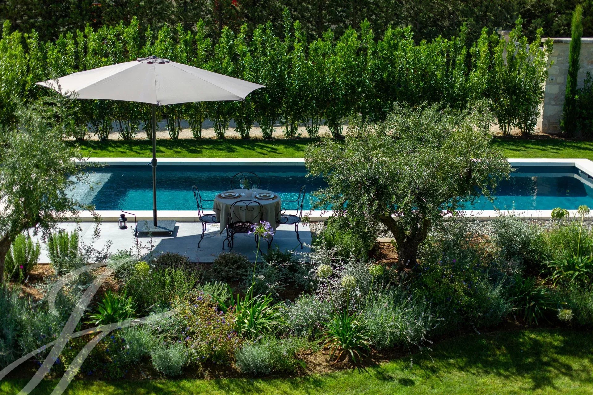 Numerous terraces, both covered and with arbors, allow you to lunch or dine in the shade, while a heated swimming pool blends harmoniously into the landscaped, bucolic garden. For parking, up to six vehicles can be parked without obstructing the view.