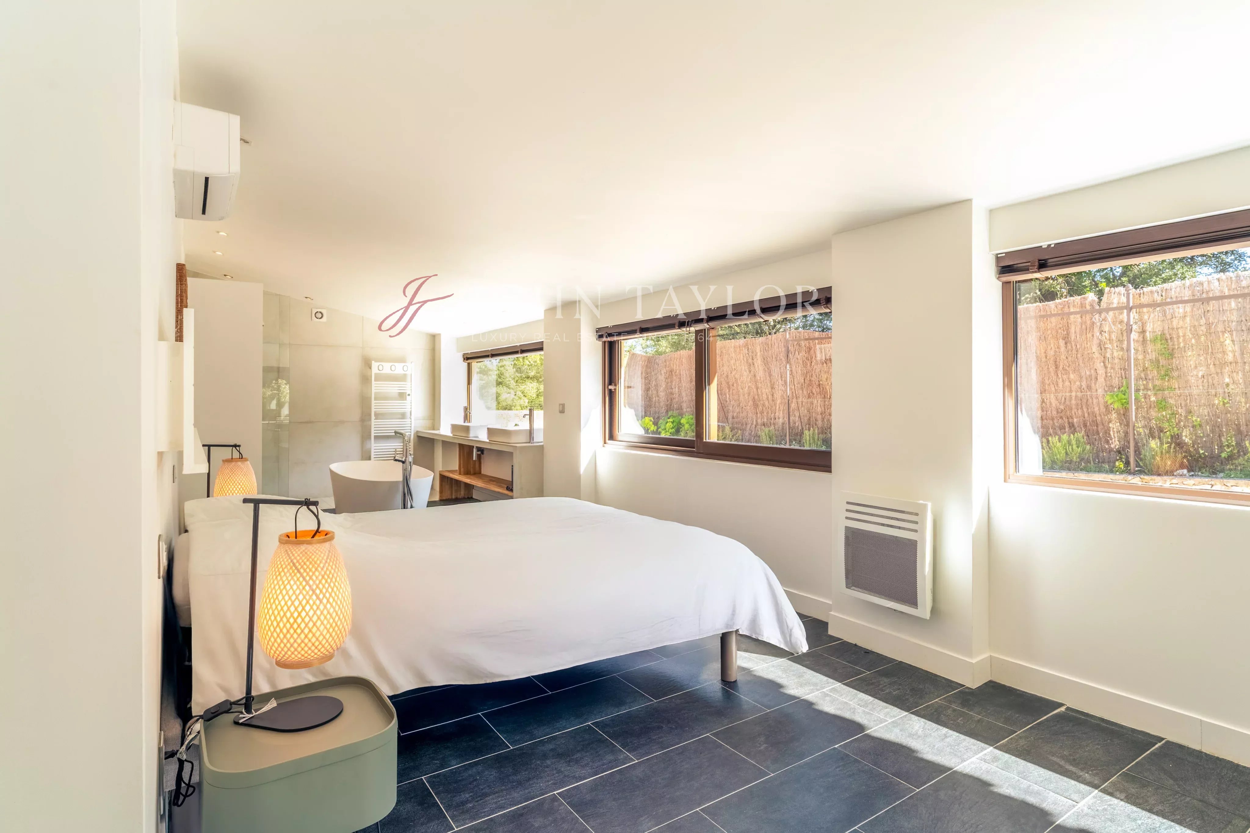 The grounds, covering more than 8,000 m², are a haven of peace where every detail has been designed for your well-being: reversible air conditioning, heated swimming pool, technical room, new plumbing and electricity, automatic watering system, garden shed, double glazing, new window frames, and mains water as well as canal water for the garden.