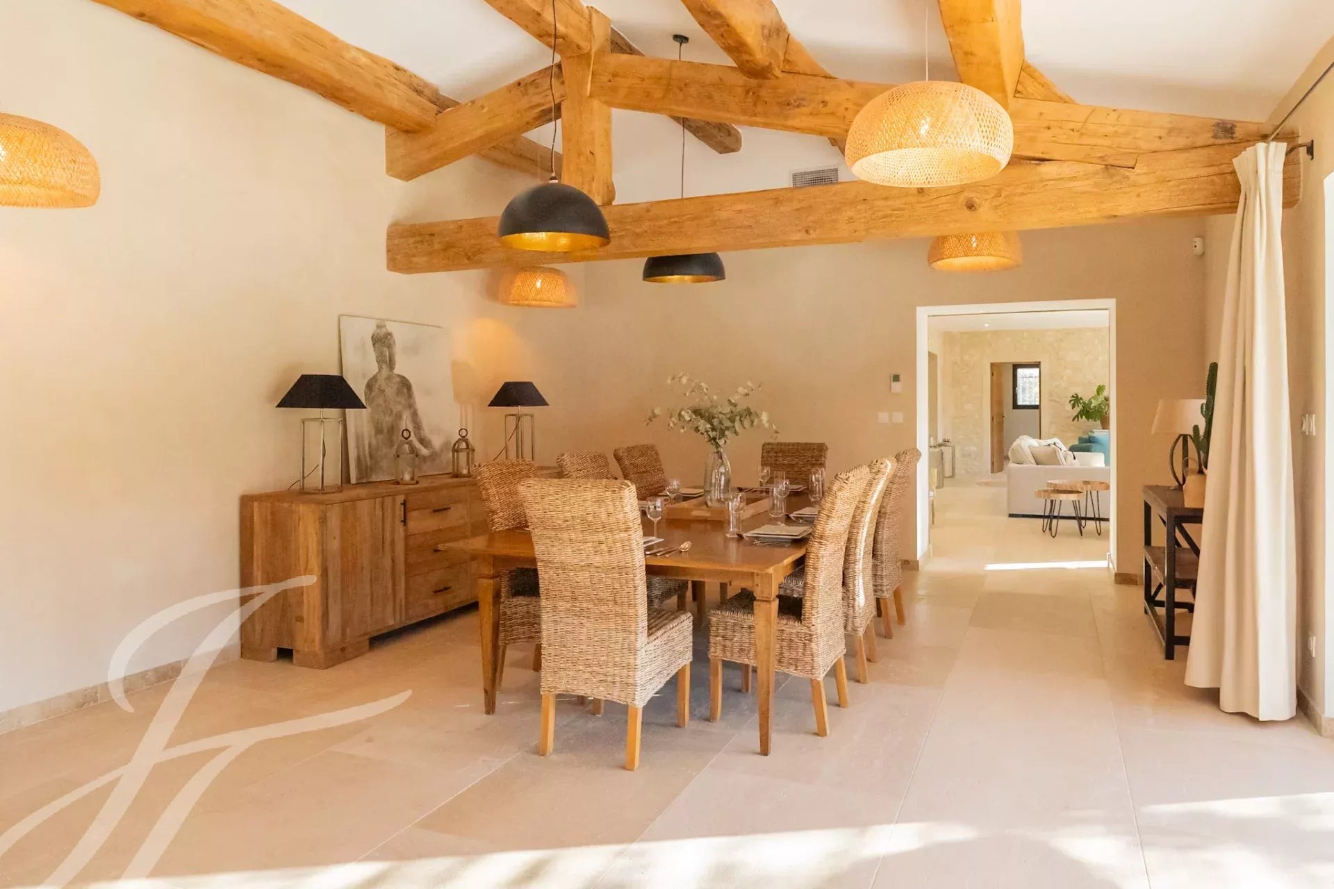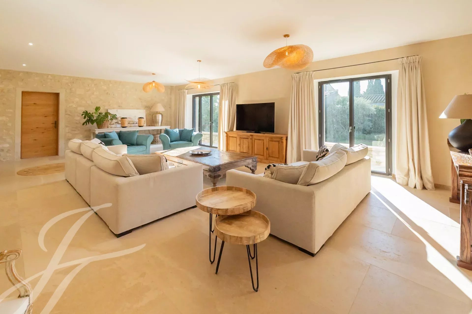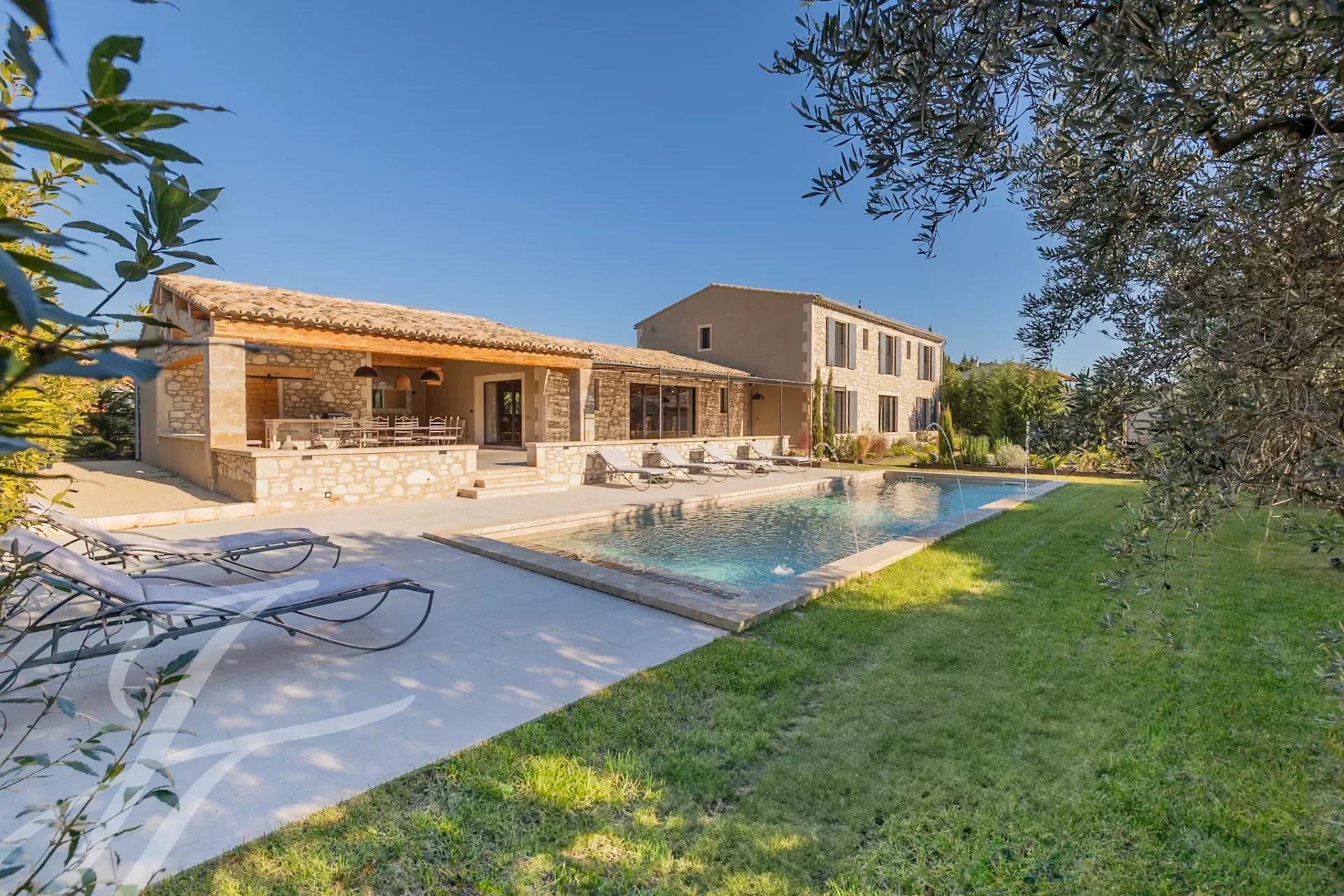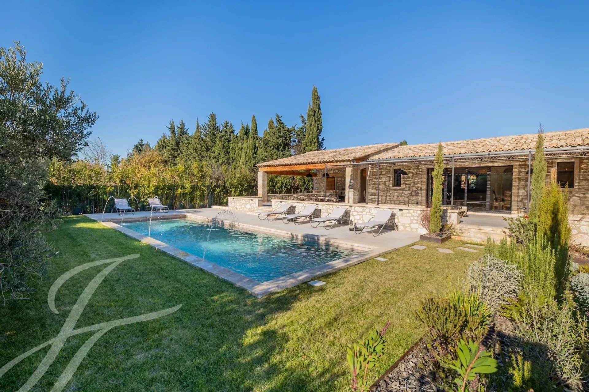Nestled at the end of an unassuming lane, this authentic stone farmhouse captivates with its timeless charm and enchanting setting. Its carefully landscaped 1,700 m² garden offers a haven of greenery enhanced by a beautiful swimming pool surrounded by flower beds and an elegant lawn.