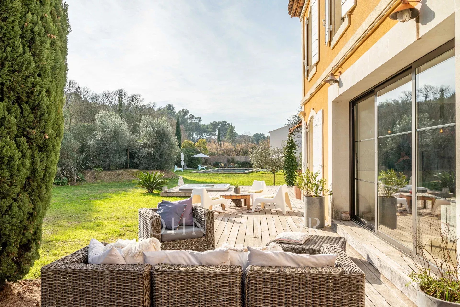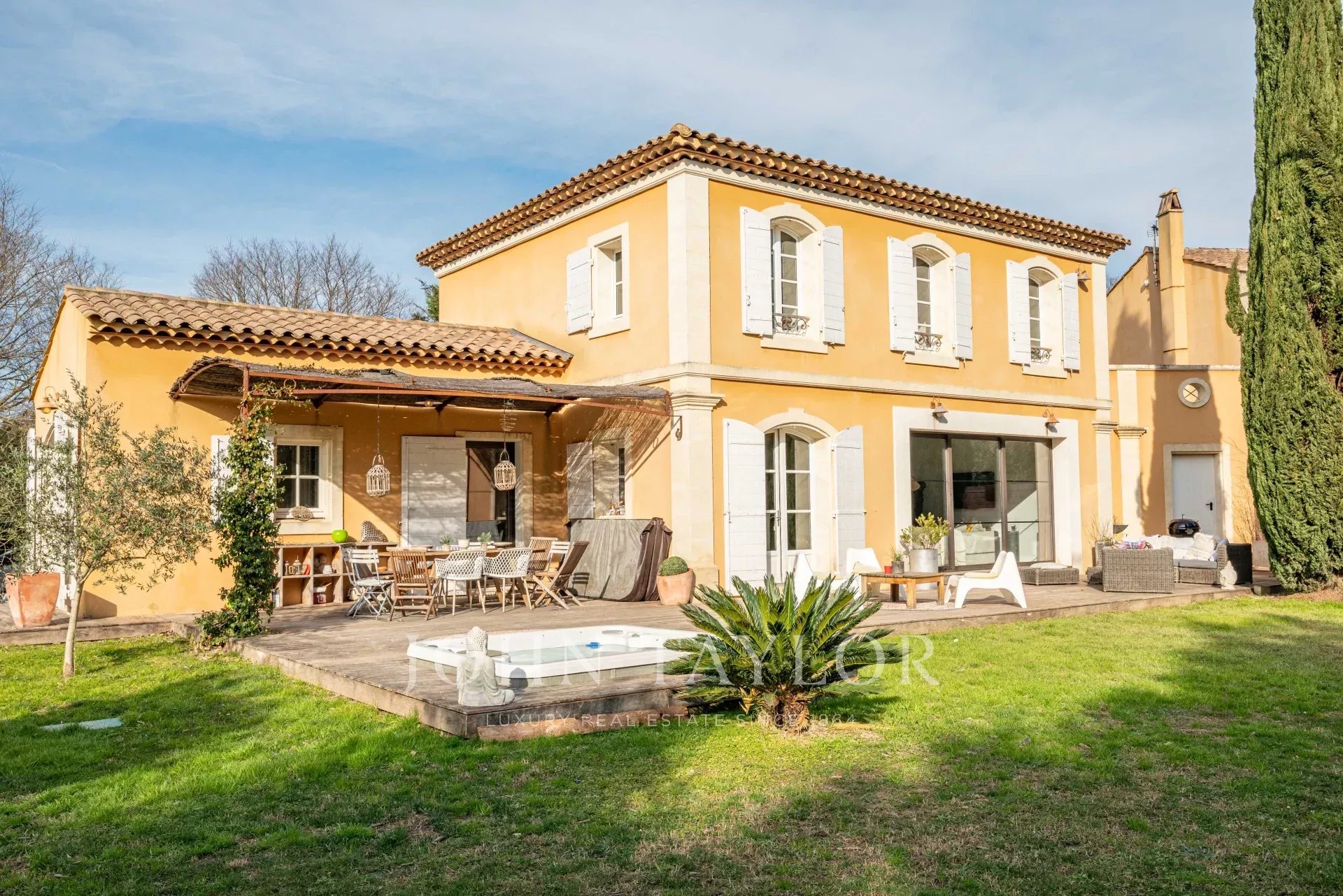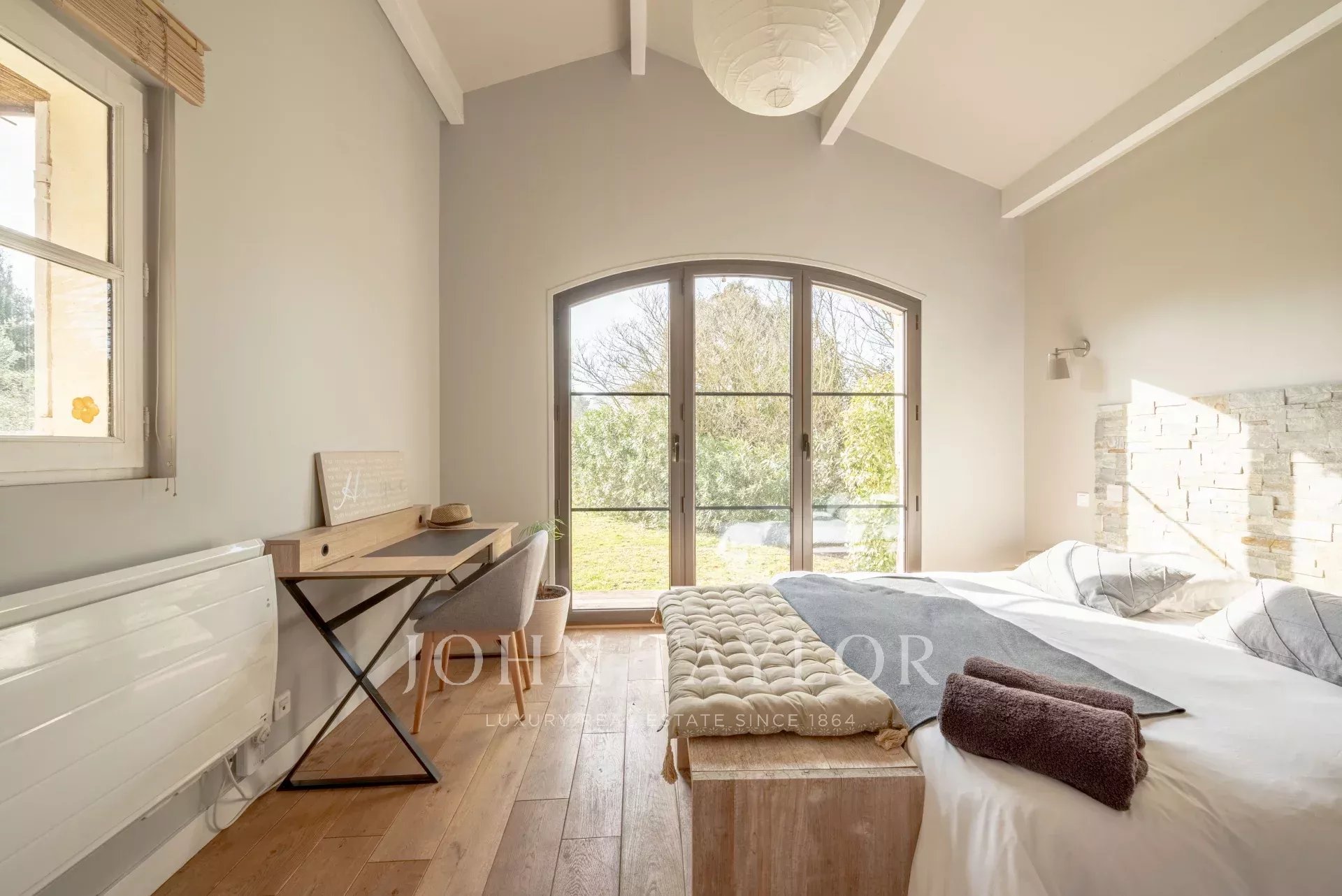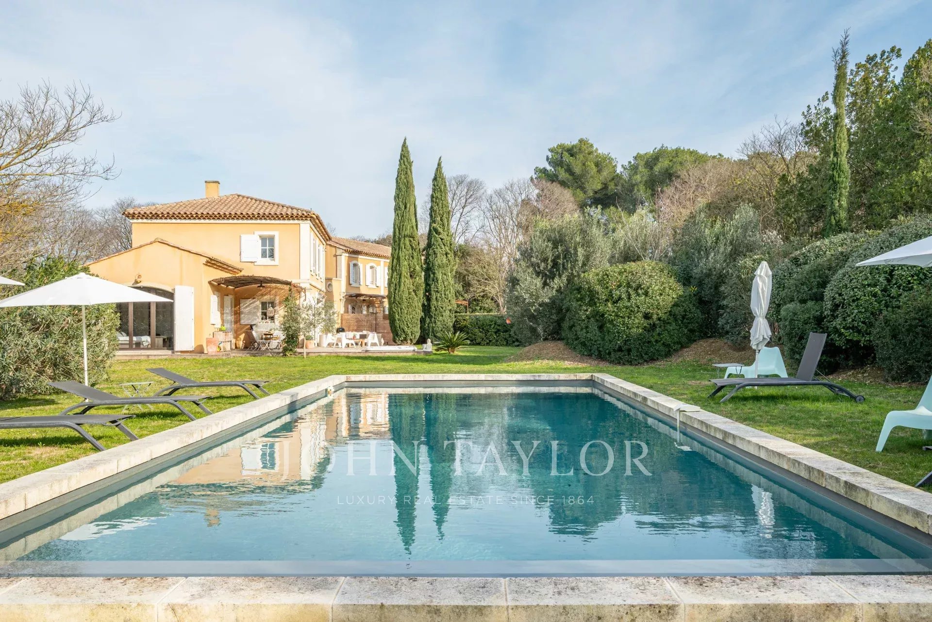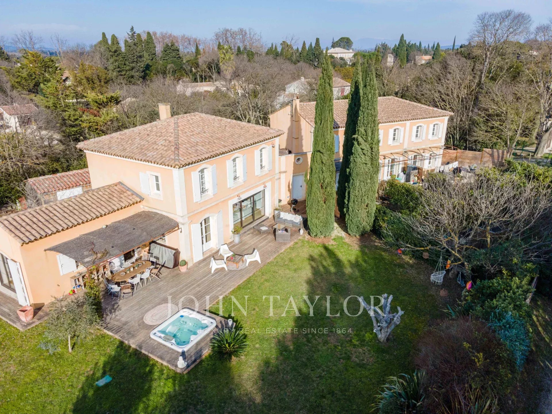 In the Alpilles mountains, 25 minutes from the TGV station of Aix and Avignon, the John Taylor agency located in Lourmarin proposes you to sell this magnificent renovated bastide of 320 m2 on a land of 3000 m2, divided into two distinct parts.