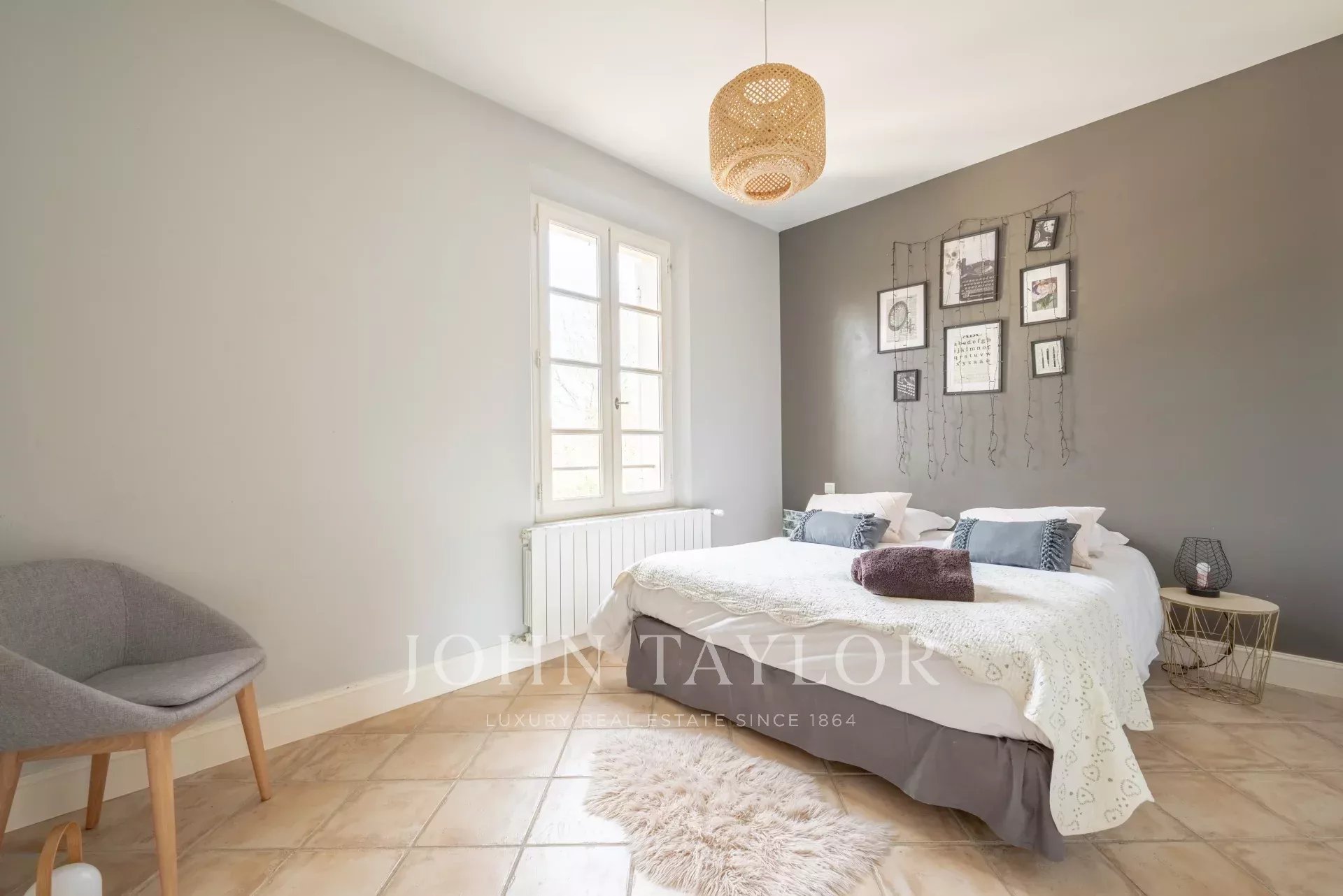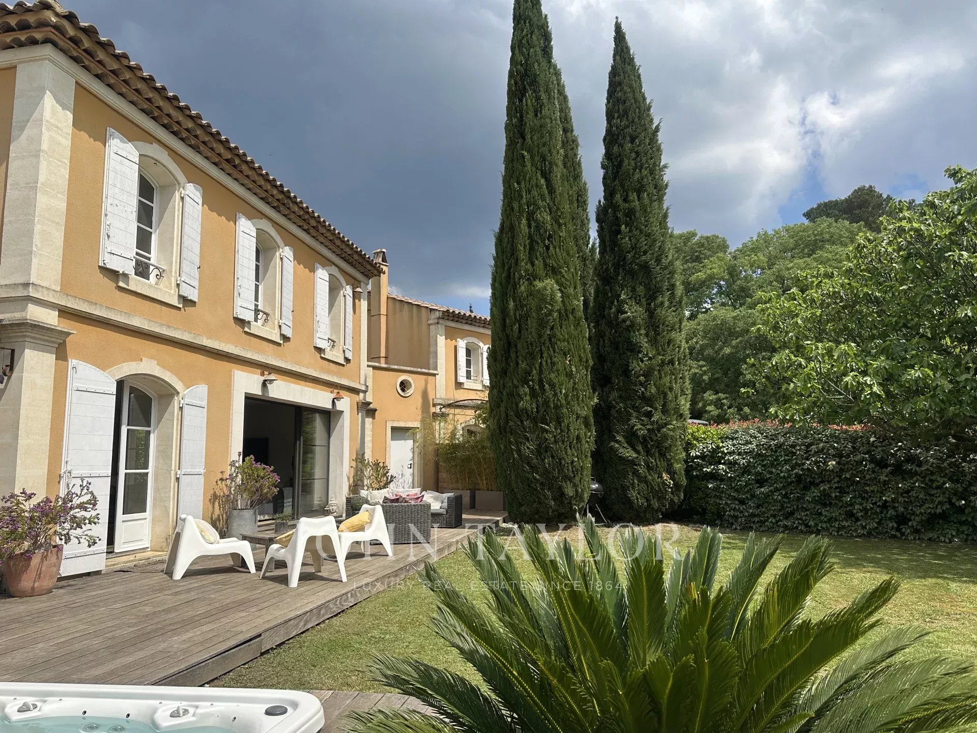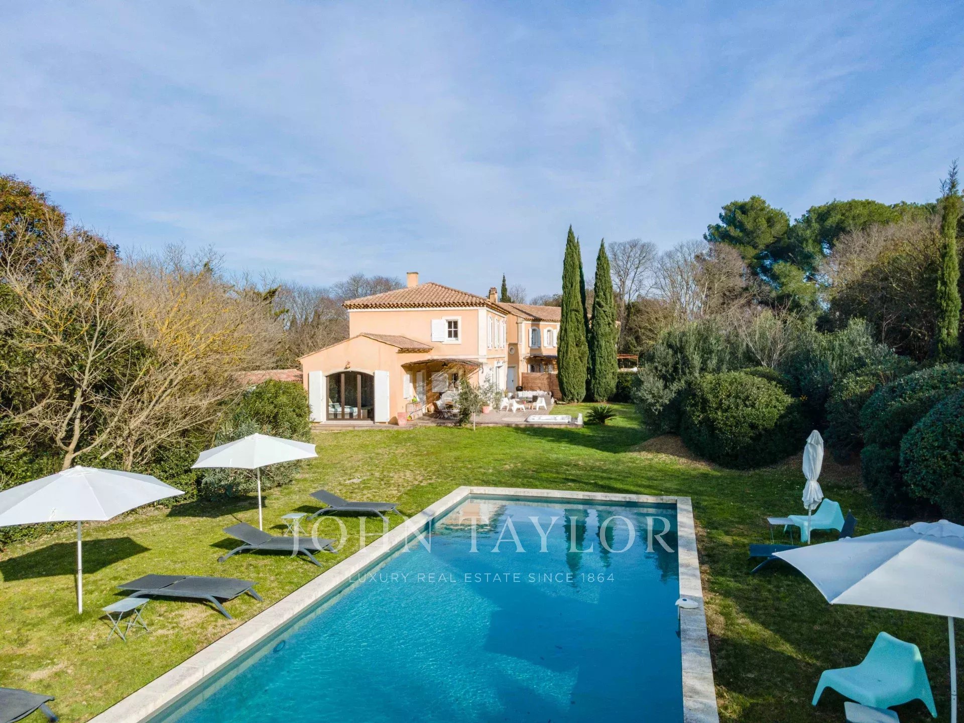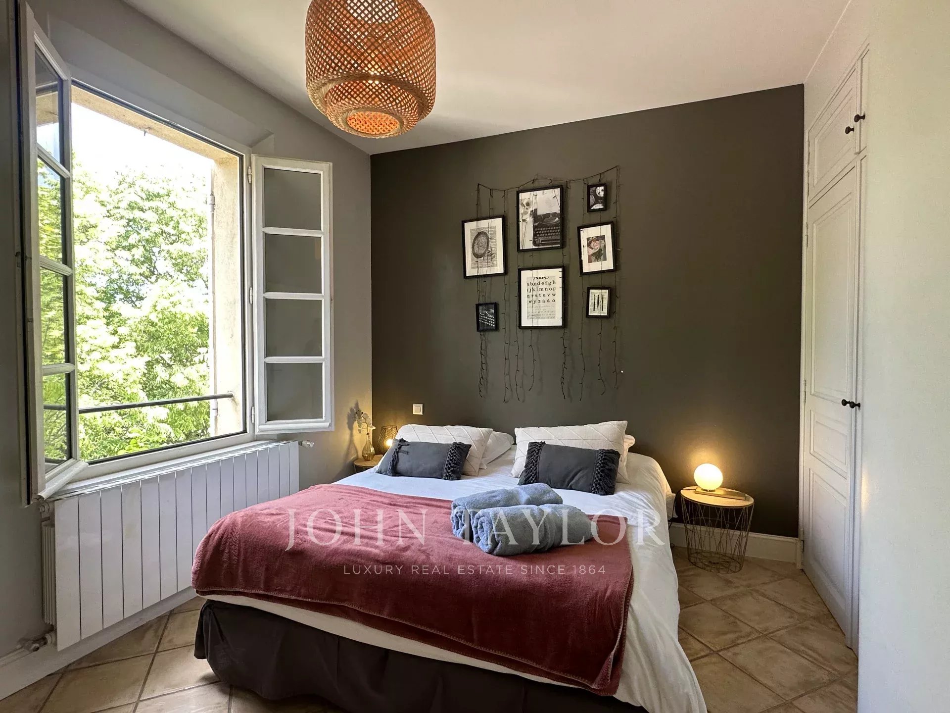 In the Alpilles mountains, 25 minutes from the TGV station of Aix and Avignon, the John Taylor agency located in Lourmarin proposes you to sell this magnificent renovated bastide of 320 m2 on a land of 3000 m2, divided into two distinct parts.