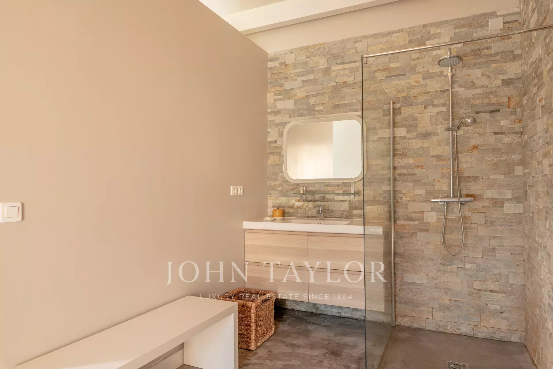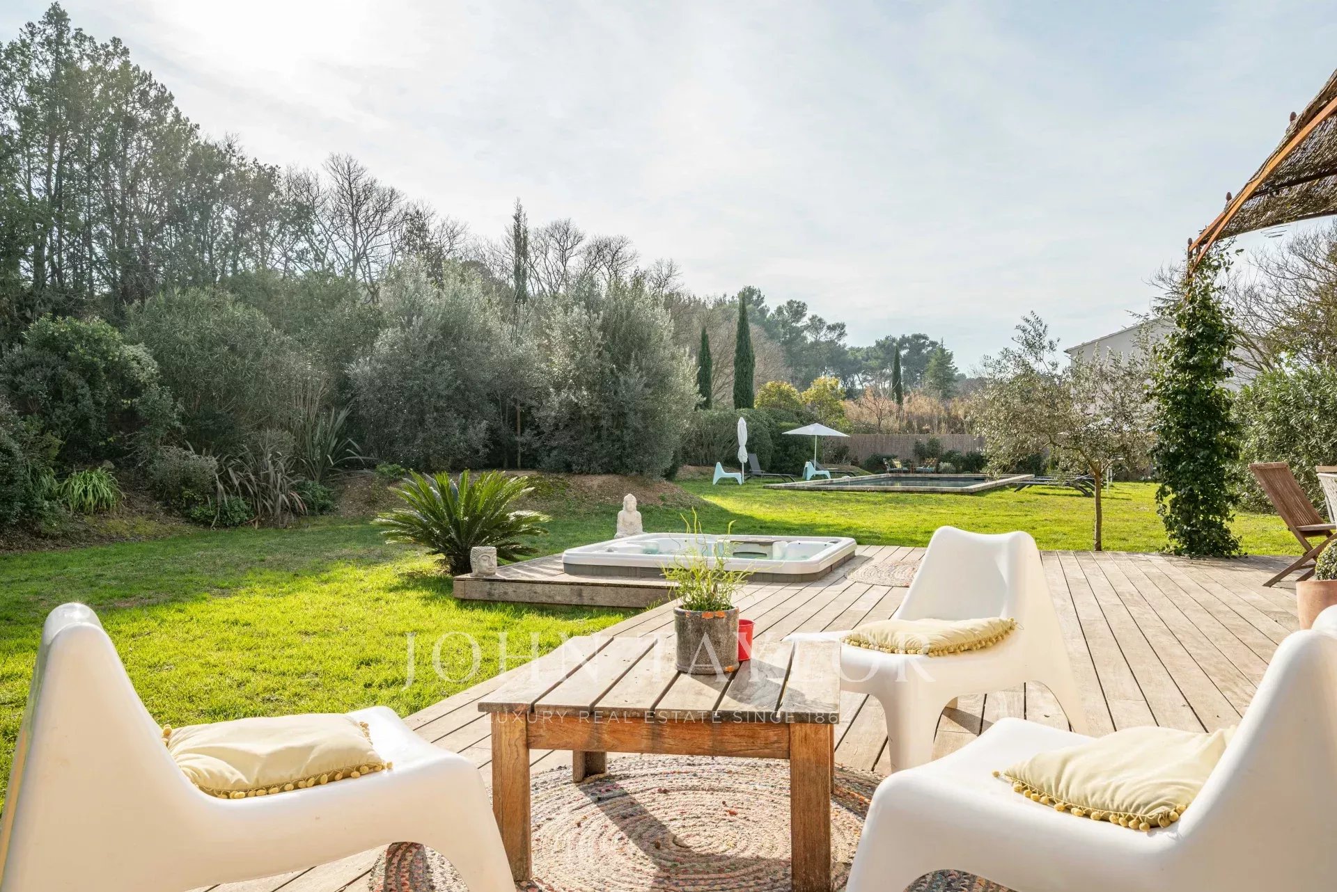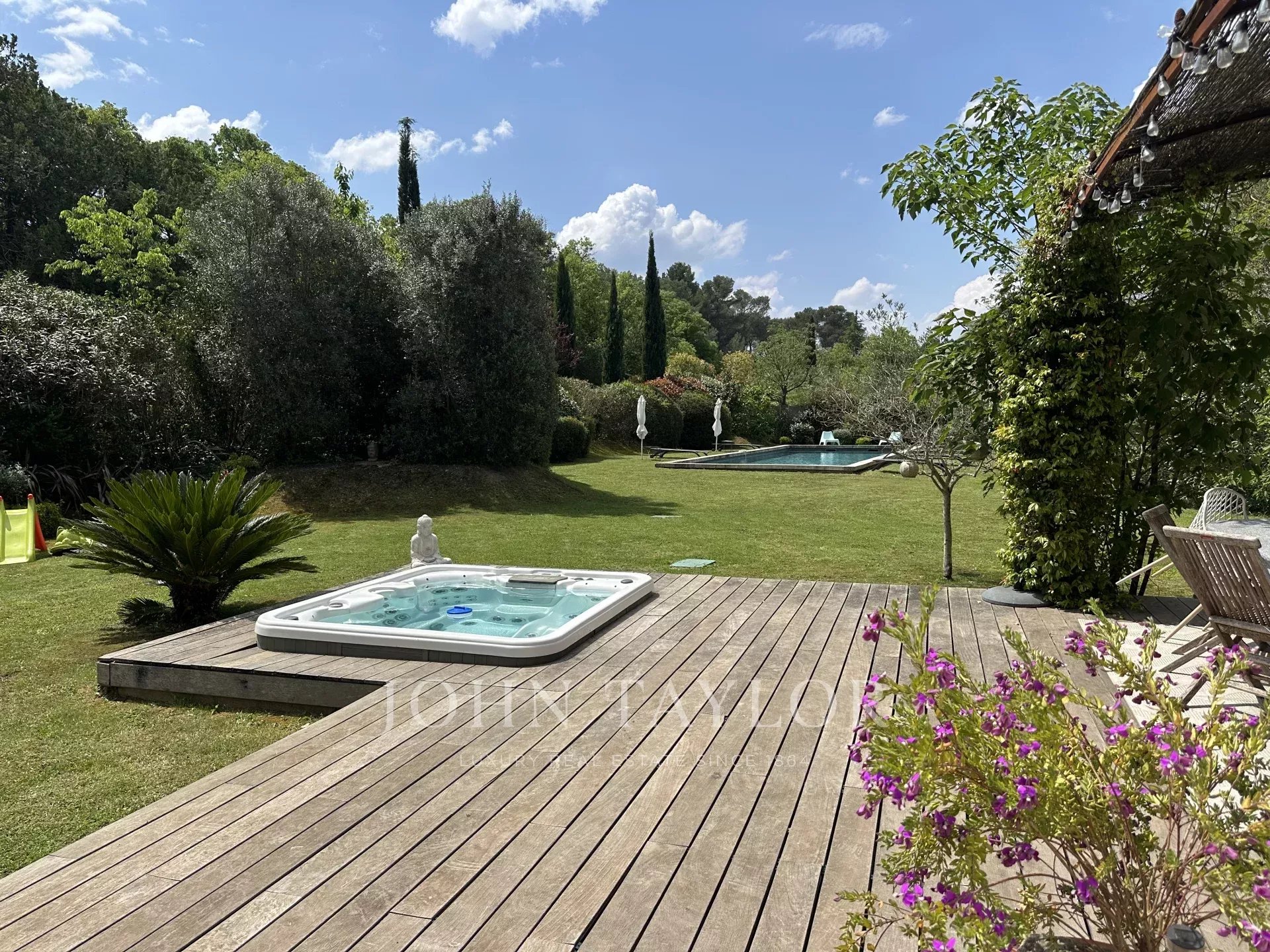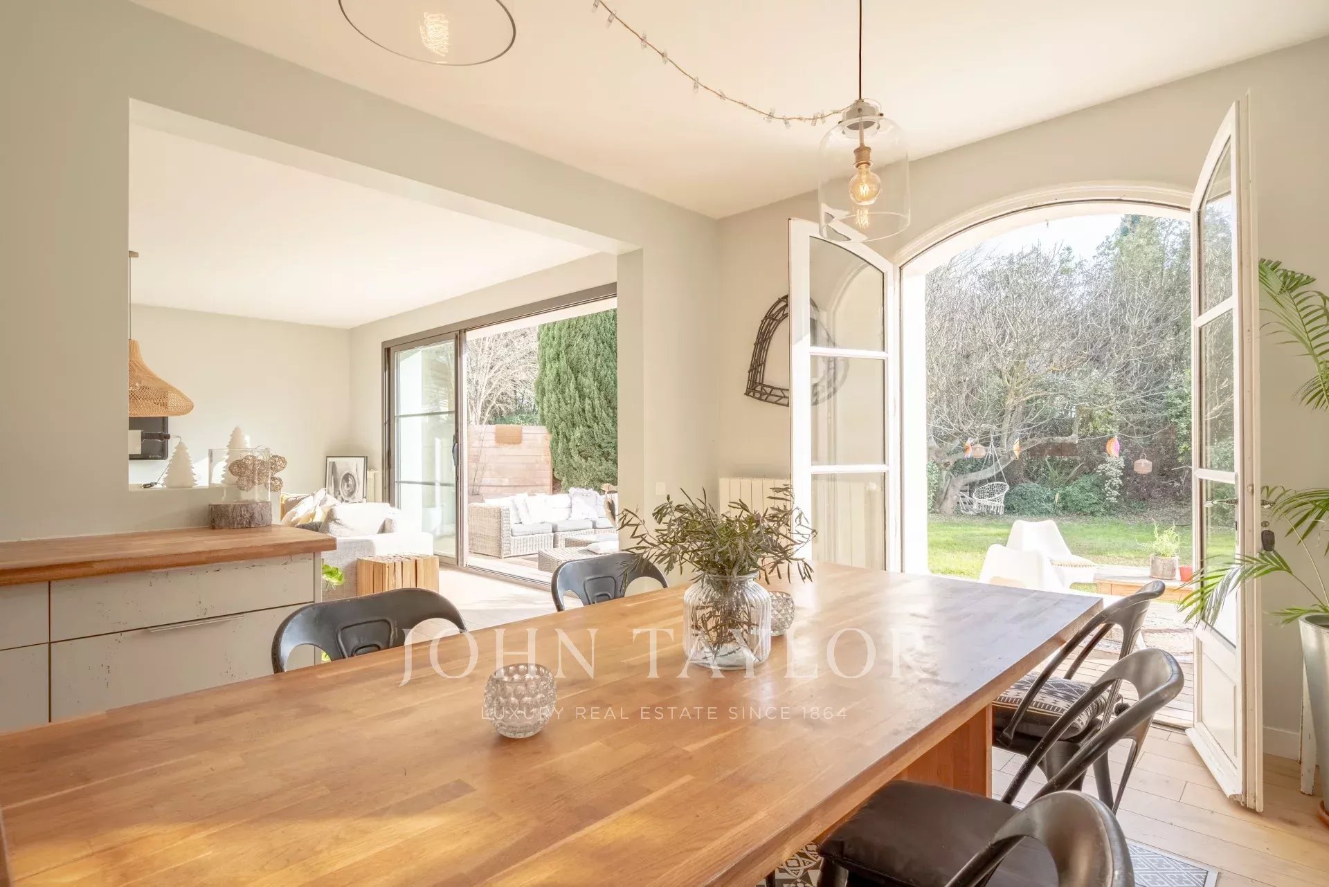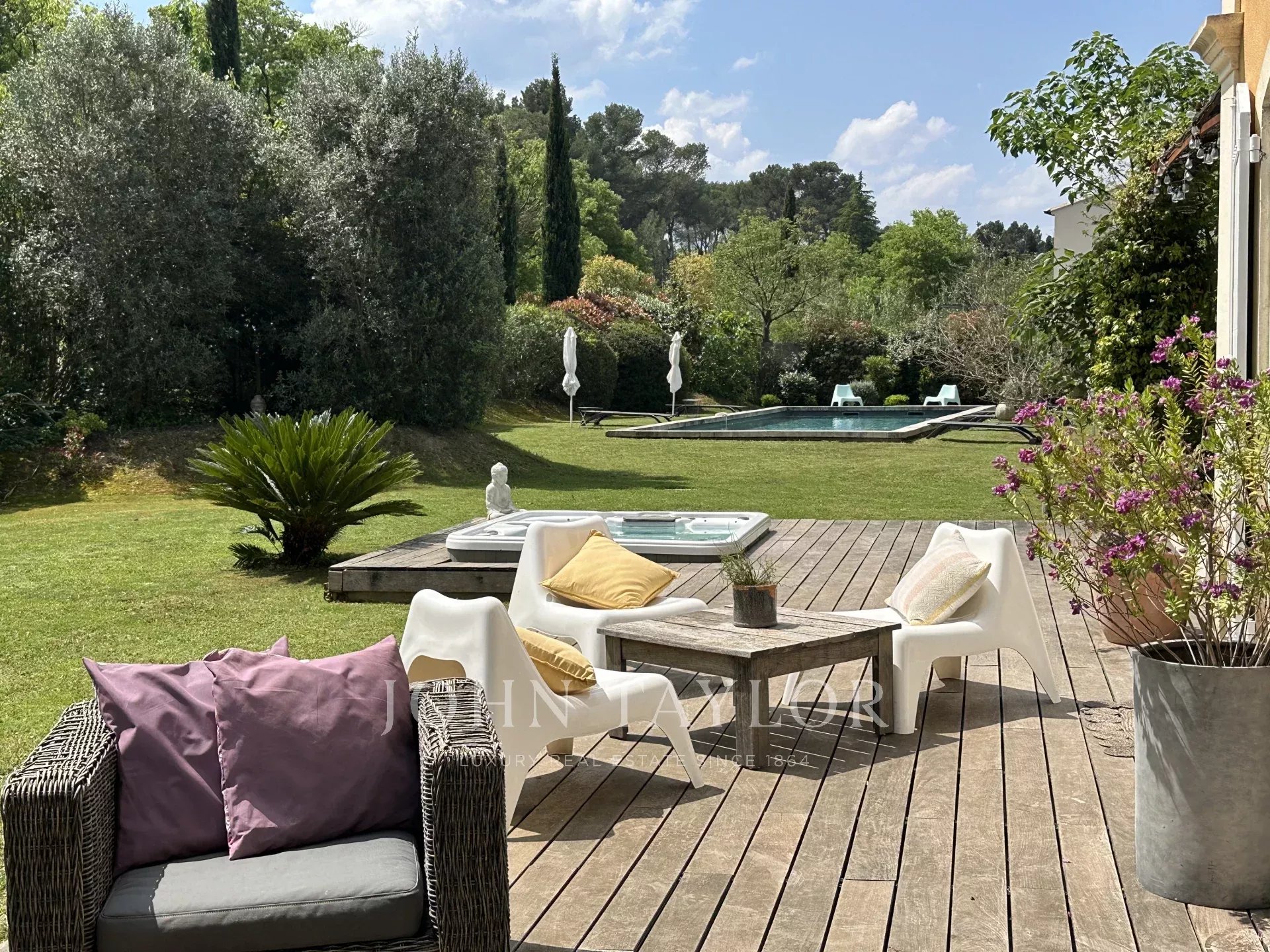 In the Alpilles mountains, 25 minutes from the TGV station of Aix and Avignon, the John Taylor agency located in Lourmarin proposes you to sell this magnificent renovated bastide of 320 m2 on a land of 3000 m2, divided into two distinct parts.