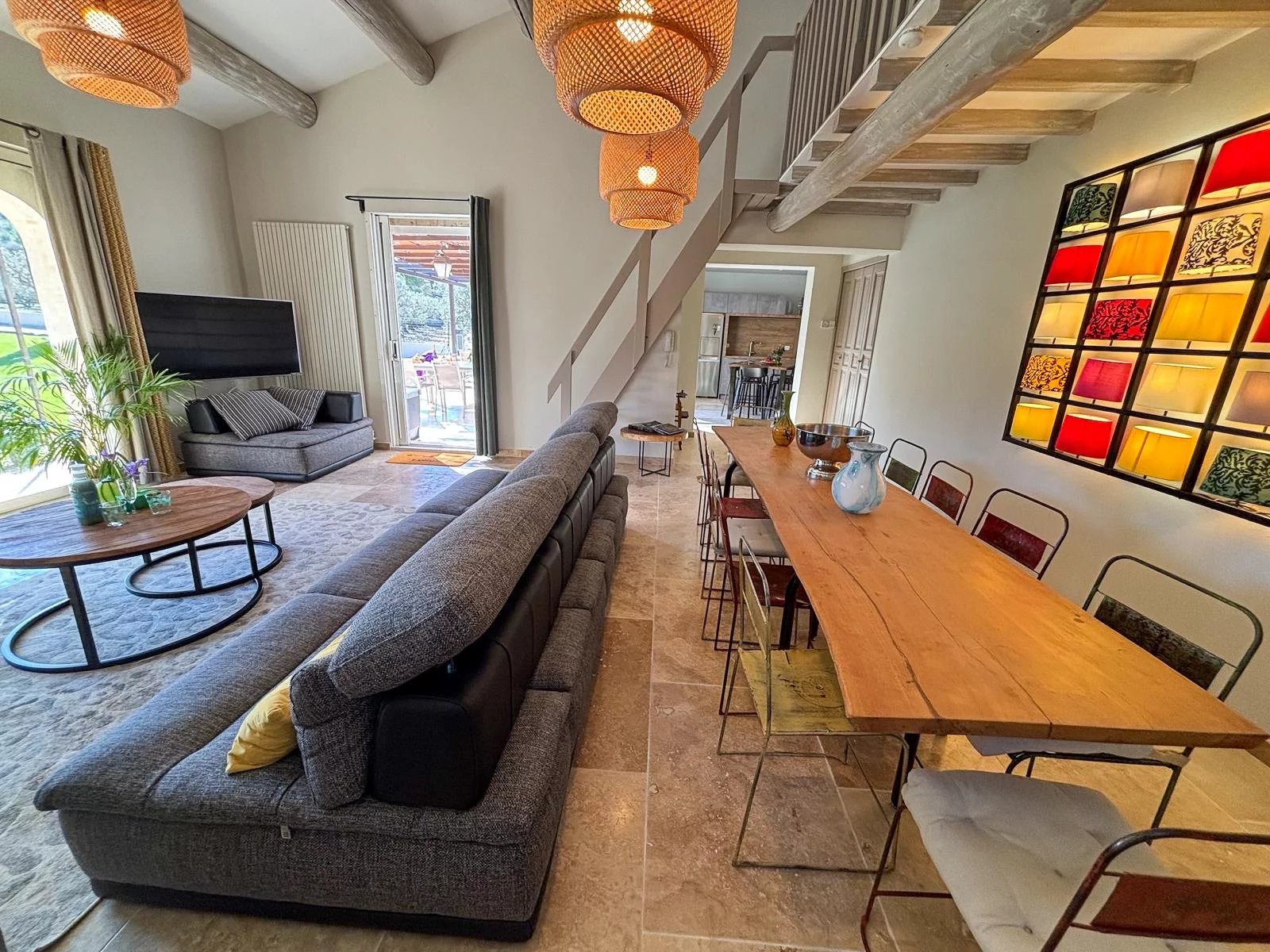 Just a 20-minute walk from the town center, in a sought-after neighborhood and idyllic, nuisance-free setting, discover this magnificent 2,000 m² enclosed plot. It features a heated swimming pool, spacious terraces, a bowling green and a garage. The 200 m² villa features a spacious 40 m² living room with mezzanine, a fitted kitchen opening onto a shaded terrace, two bedrooms sharing a bathroom, and a master suite. An adjoining apartment completes the property, comprising a large living room with mezzanine and a bedroom with shower room.