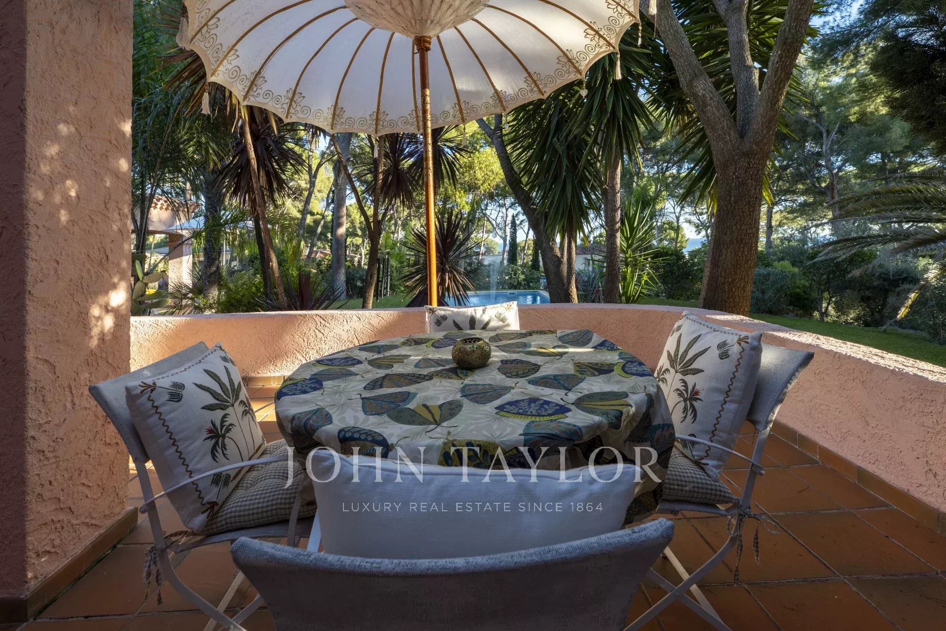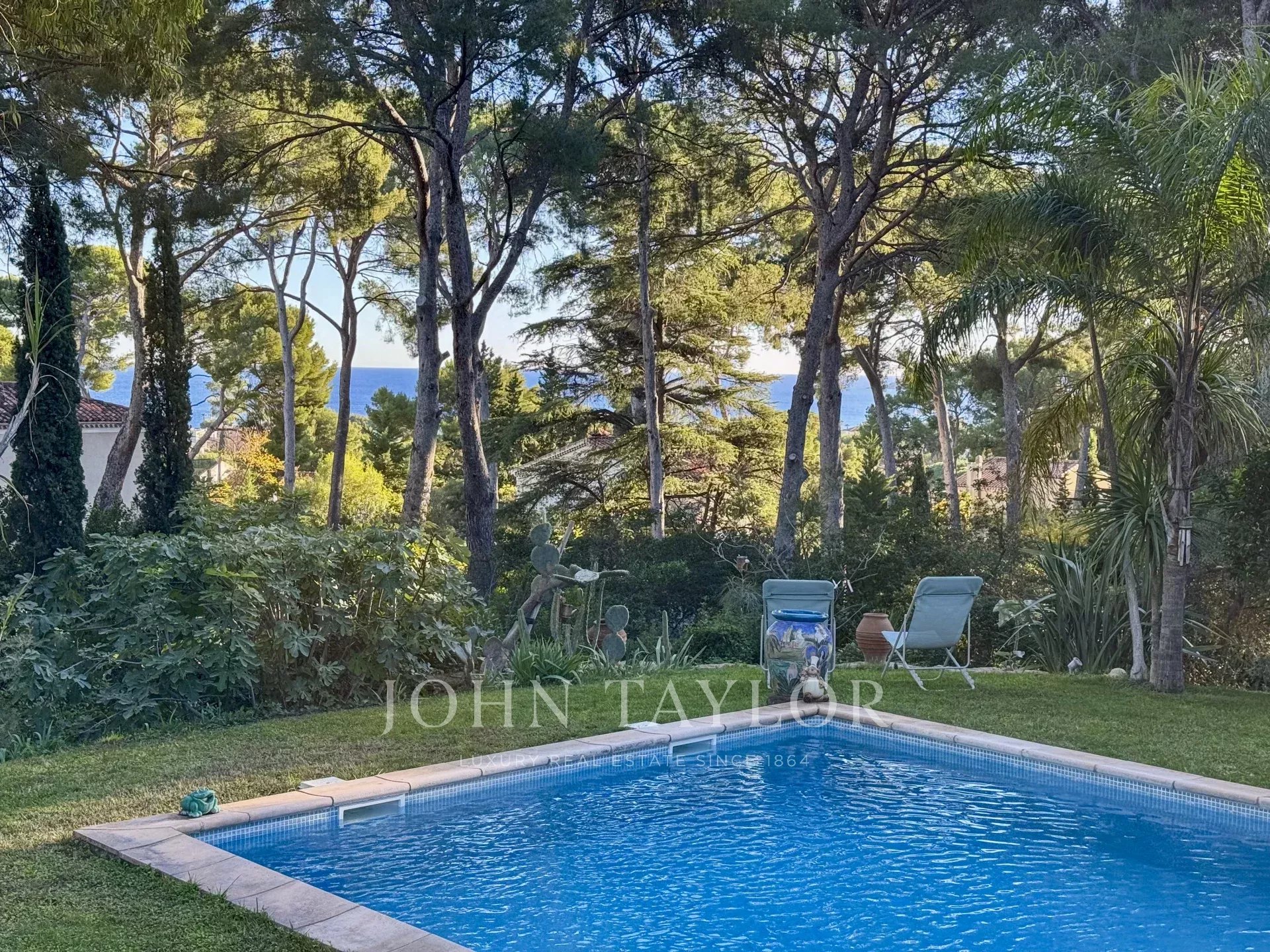 The Mediterranean grounds feature mimosas, centuries-old olive trees, citrus, eucalyptus, palms and exotic plants irrigated by the borehole. A large parking area accommodates several vehicles and a boat. Amenities include air conditioning, fiber internet, charging points, electric gate and video intercom, motion detectors, automatic irrigation and lighting, and a pool alarm.