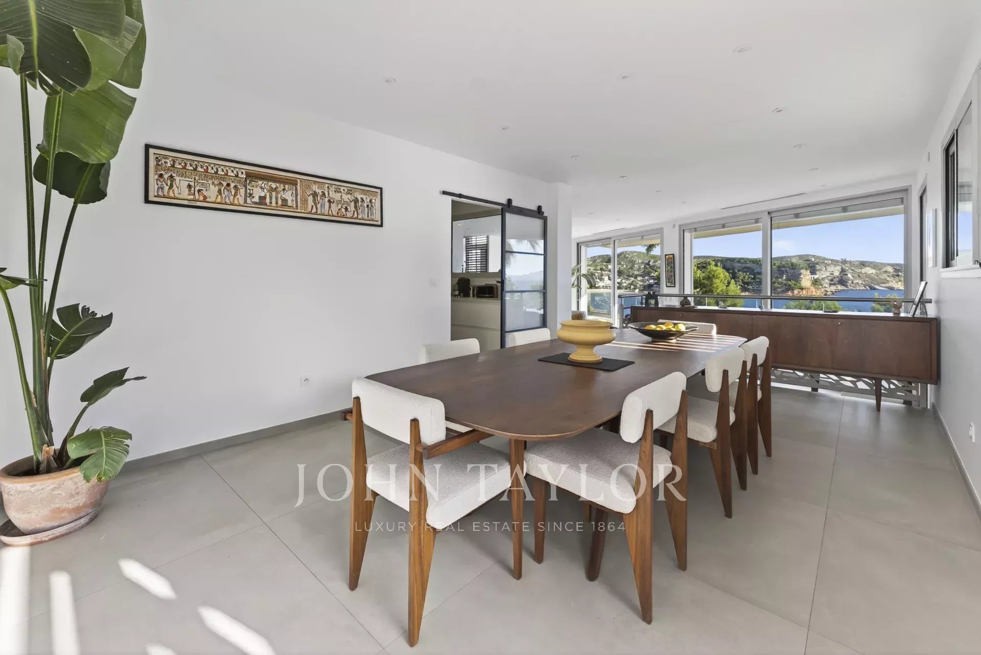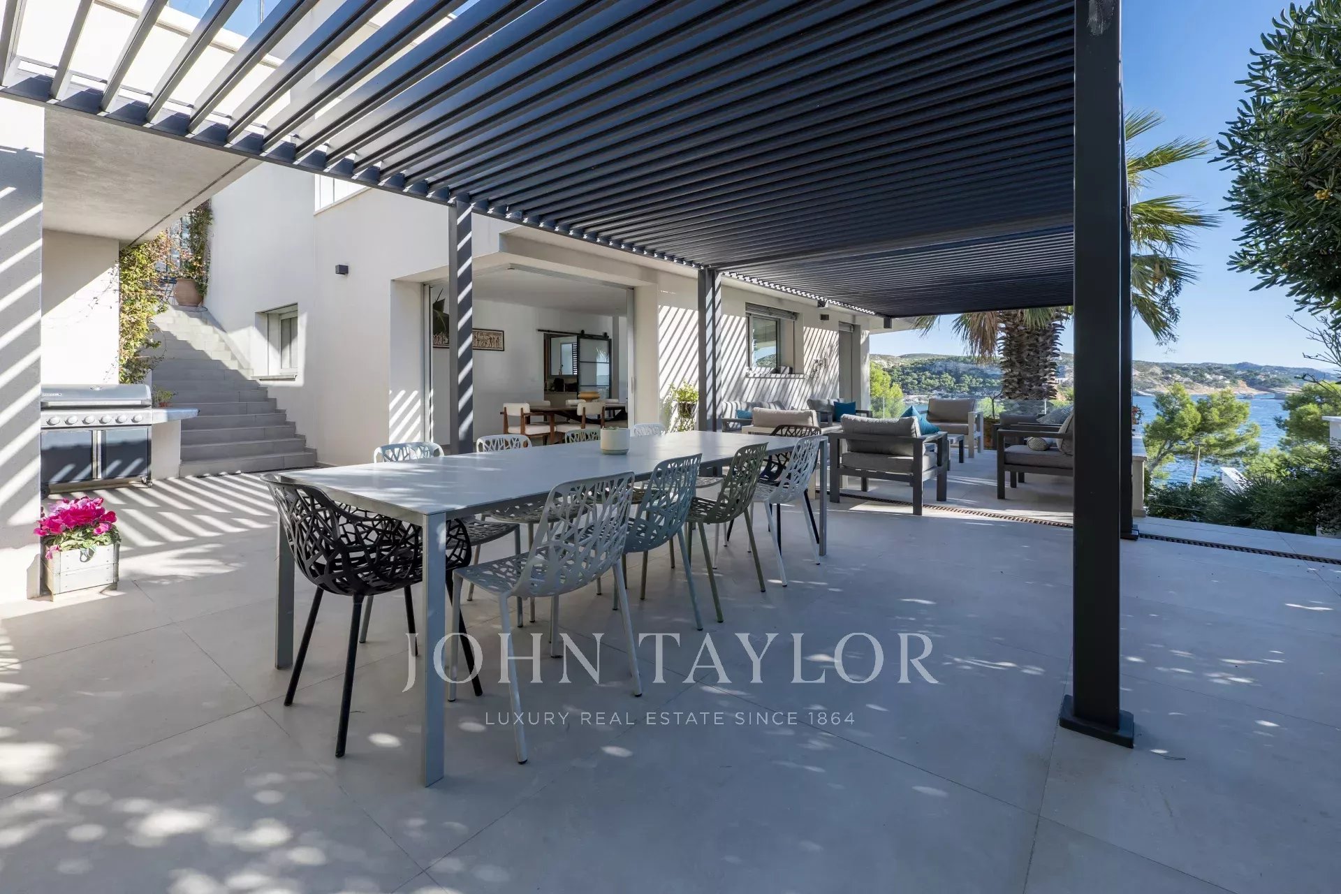 John Taylor Real Estate presents this contemporary seafront villa located in a private and secure residence in Carry-le-Rouet. Offering approximately 380 sqm of living space on a 1,376 sqm landscaped plot, it enjoys panoramic views of the Mediterranean Sea, the Bay of Marseille, and the Côte Bleue.