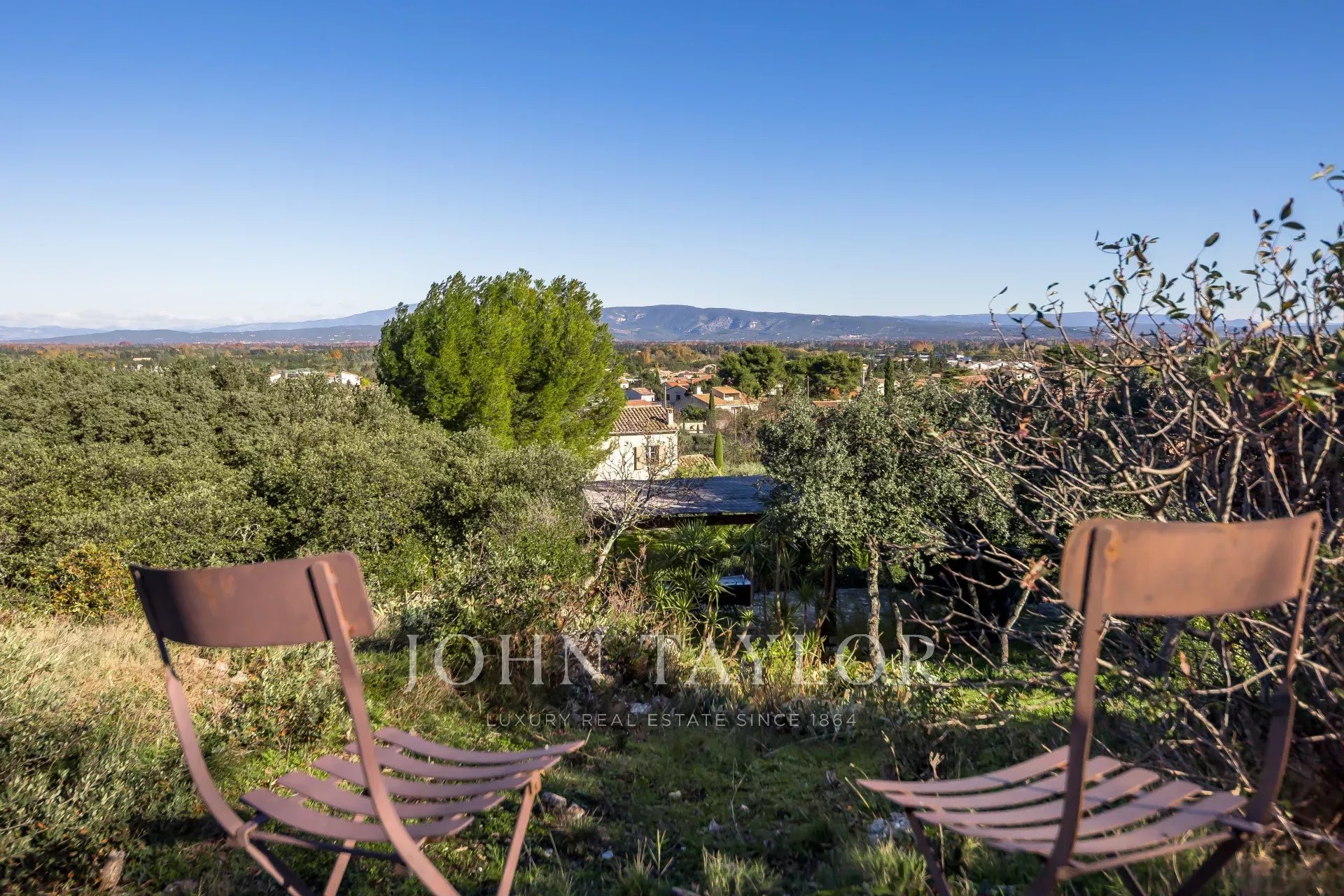 Outside, the landscaped garden extends harmoniously, adorned with olive trees, palm trees, and lush vegetation characteristic of the Provencal region. Sunny days can be enjoyed around the heated pool. The terraced terrain at the heart of this unique property offers an impressive terrace with a majestic view of Mont Ventoux. Sheltered by an elegant pergola, this outdoor space invites relaxation.