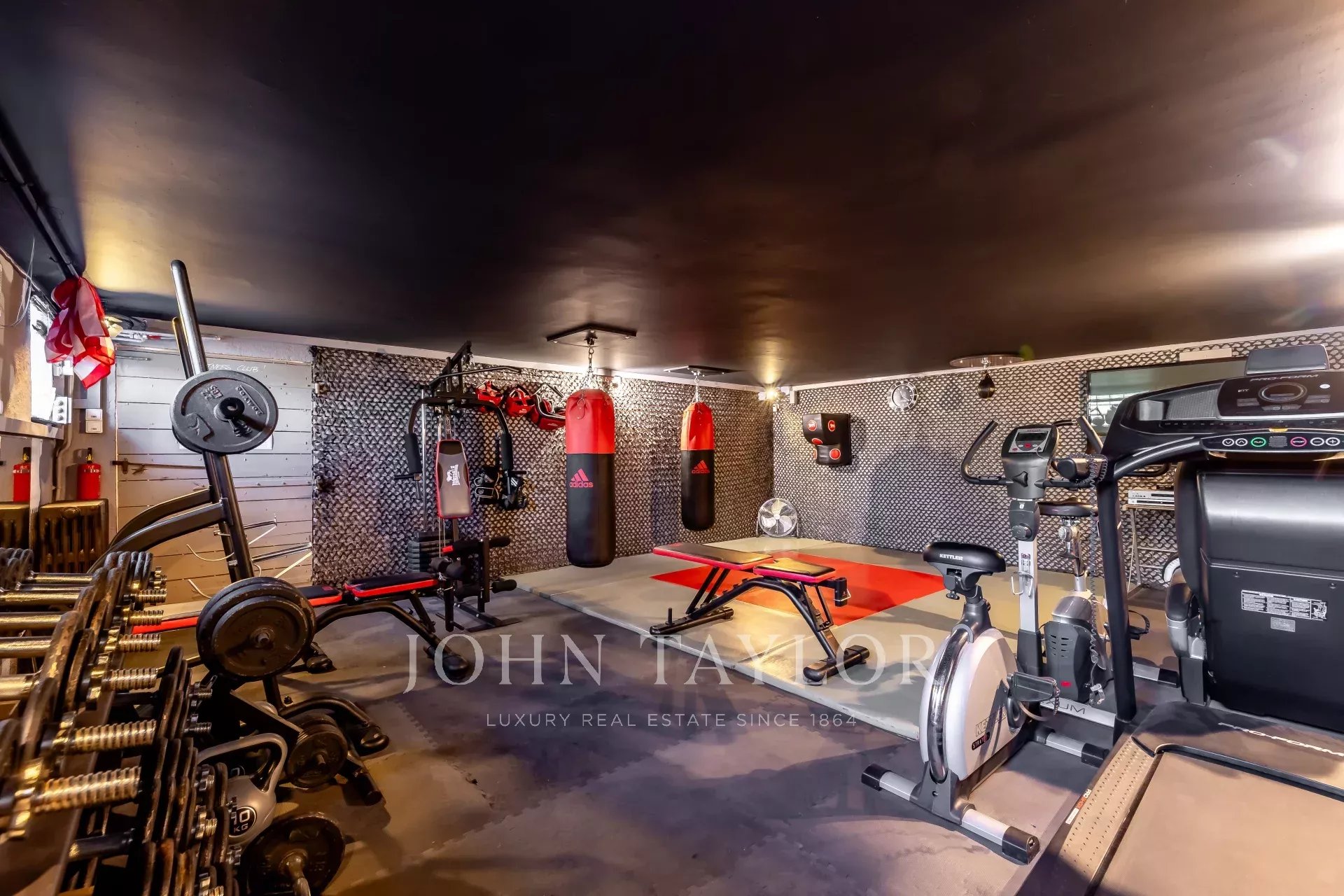 An elegant staircase leads to the upper floor, where three sumptuous bedrooms, all finely decorated, share an elegant living space. One of them boasts a generous walk-in closet and an en-suite bathroom.