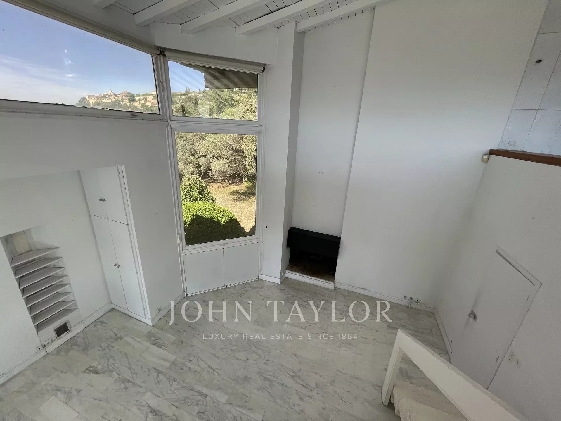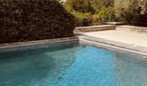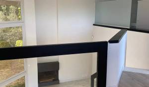 Built in 1980, the house faces south and east, offering 170 square meters (1,830 sq ft) of living space on a beautifully landscaped plot of 2,341 square meters (over half an acre). It features a spacious entrance leading to a large hexagonal living room, a kitchen with panoramic views, a second living area, and a dining room. The mezzanine level includes an open bedroom, a bathroom with WC, and a second bedroom. The garden level houses a third bedroom with en-suite shower room, as well as a large wine cellar carved into the rock.