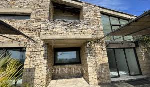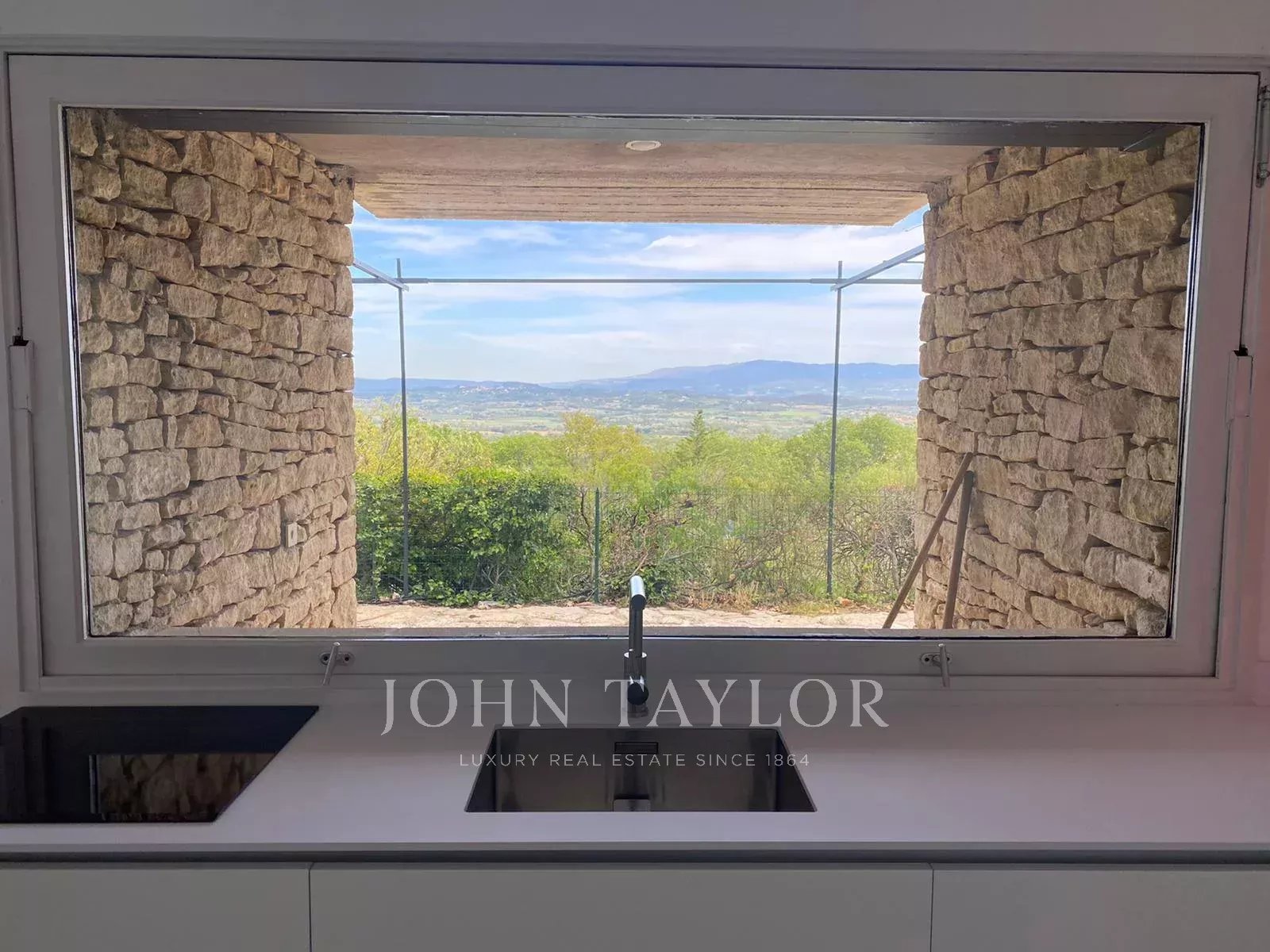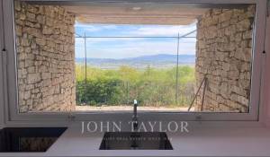 This contemporary mezzanine-style home offers exceptional views of Gordes, the valley, and surrounding villages from its privileged location atop a rocky outcrop. Its boldly modern architecture, defined by clean and simple volumes, is softened by traditional materials such as light wood and white marble.
