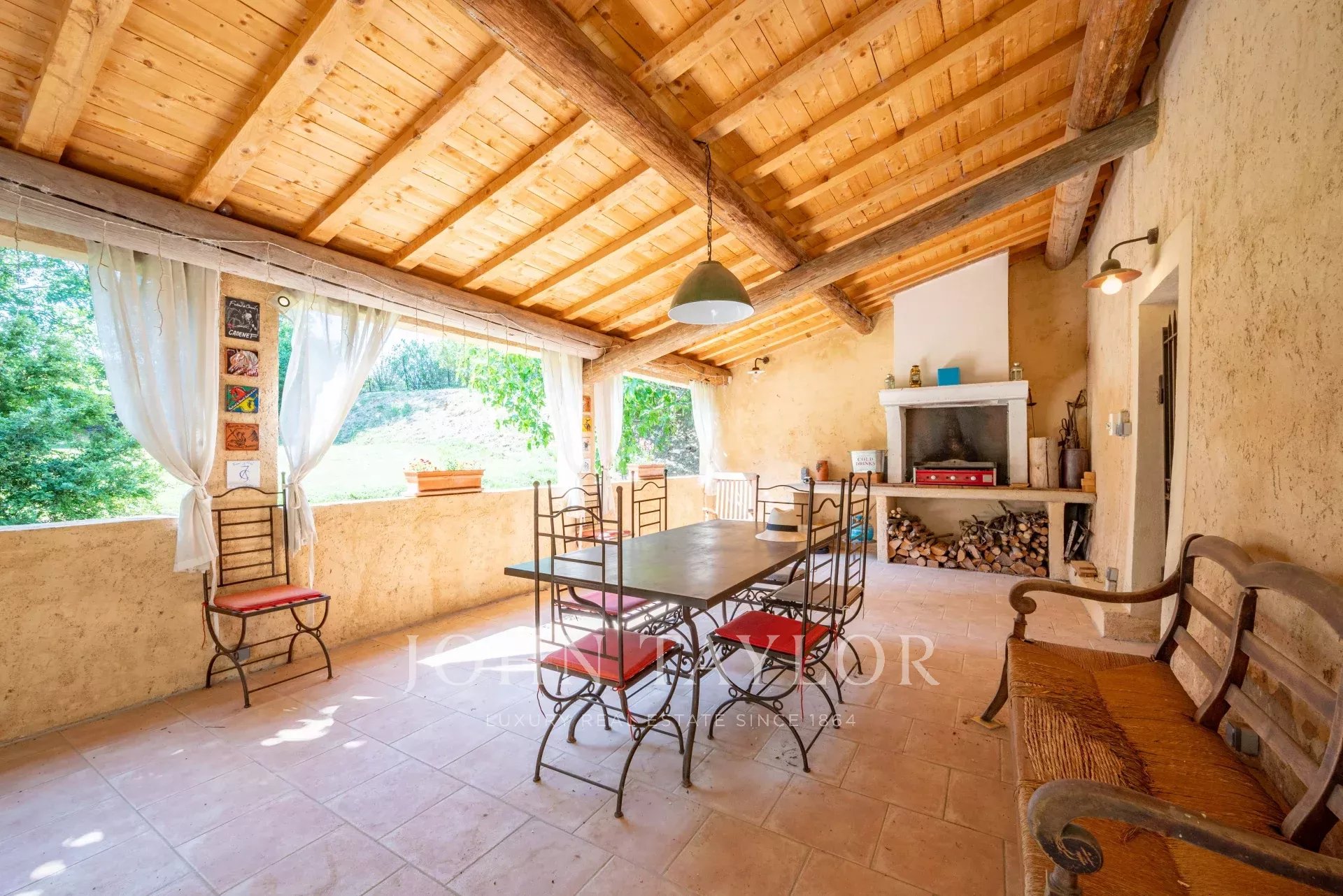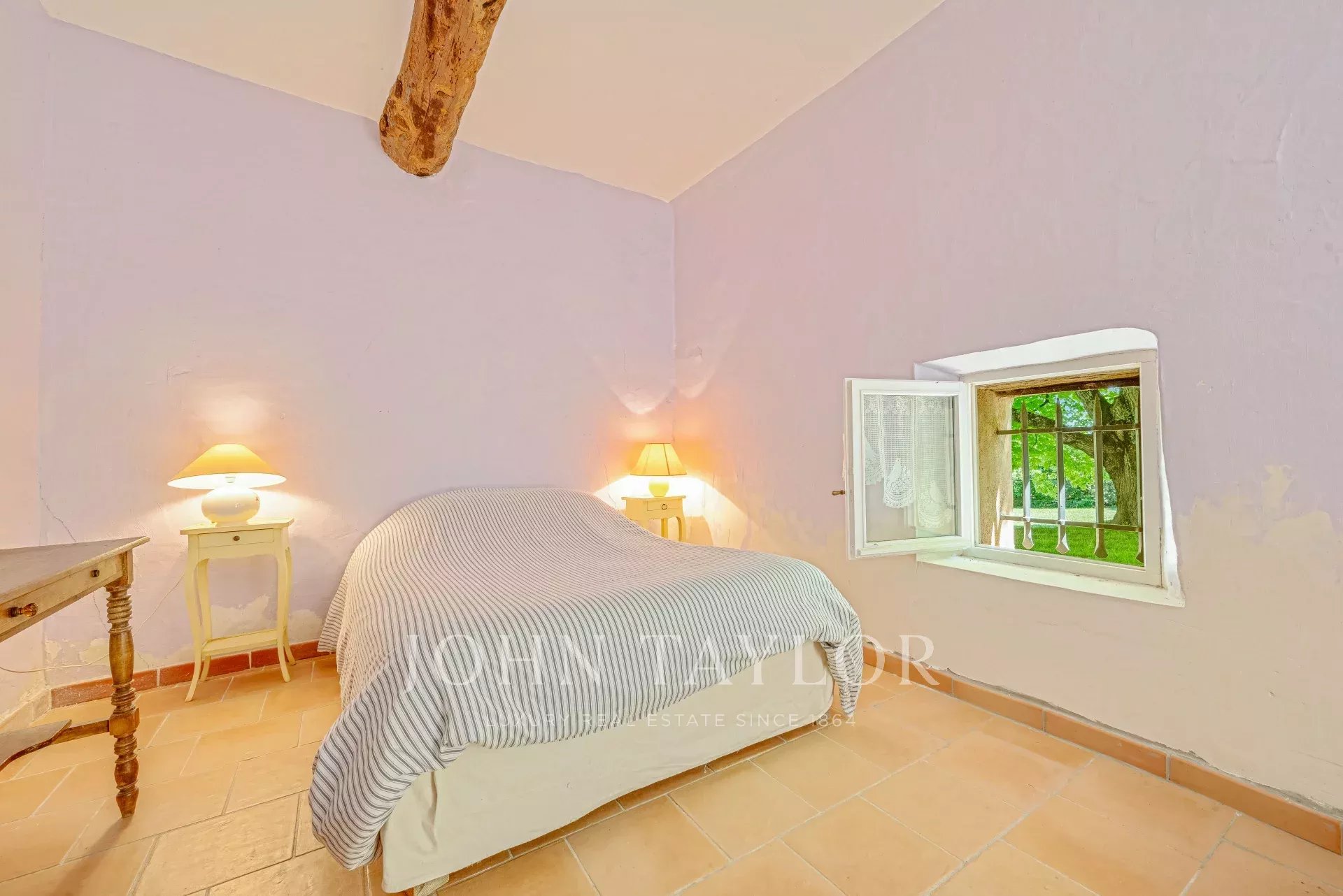 Near Lourmarin. Provence.Vaucluse 40 minutes from Aix en Provence and its TGV station. The John Taylor agency in Lourmarin offers you for sale EXCLUSIVELY in the countryside of La Tour d'Aigues this old farmhouse of 200m² with a magnificent covered terrace with barbecue of 36m², its stables of 60m² composed of 2 boxes of 10m² and outbuildings for 40 m2 with a fenced park to acquire horses. The land of 4935 m2 is closed and nicely planted. This rare property for sale is located in the countryside near the village of Ansouis. The farmhouse is composed of a beautiful living room with fireplace which opens onto a large covered terrace with summer kitchen and barbecue, a separate Provençal-style kitchen opening onto a south-facing terrace, a WC, a cellar and a garage. Upstairs Four large bedrooms including a master bedroom, two shower rooms, a WC. On the ground floor, an independent bedroom will allow you to receive family and friends. The trees there are majestic, they give shade and freshness to the whole property. This farmhouse will charm you with its authenticity, it leaves free choice to your imagination to transform it according to your needs. Watering by water from the Provence canal.
