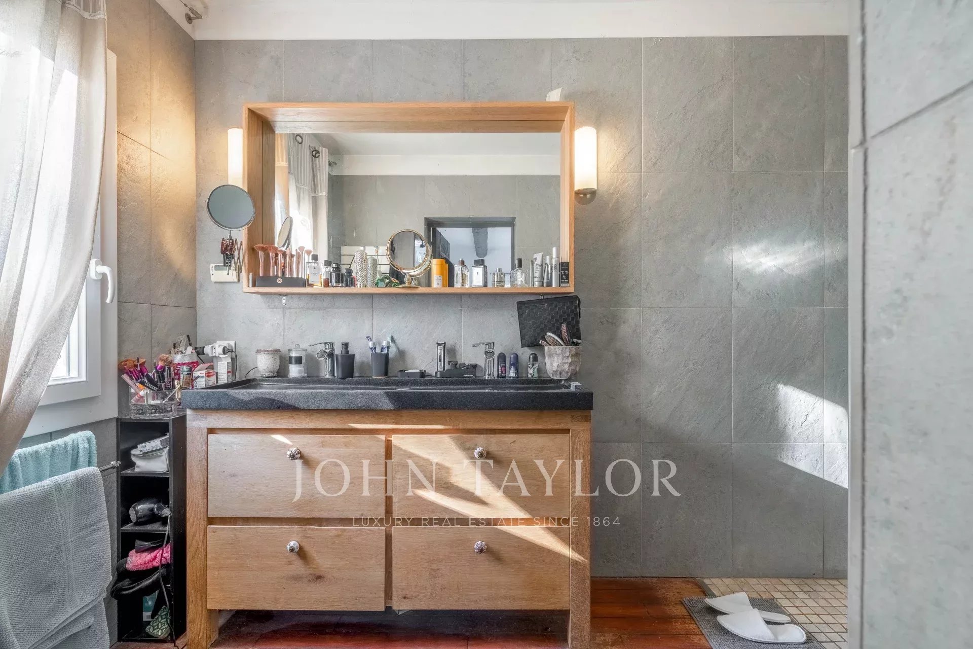 Upstairs, connected to the ground floor, the main residence features a spacious, light-filled 70 m² living room with an open-plan kitchen, a guest toilet, a utility room, an office, and two bedrooms, each with its own en-suite shower room or bathroom.