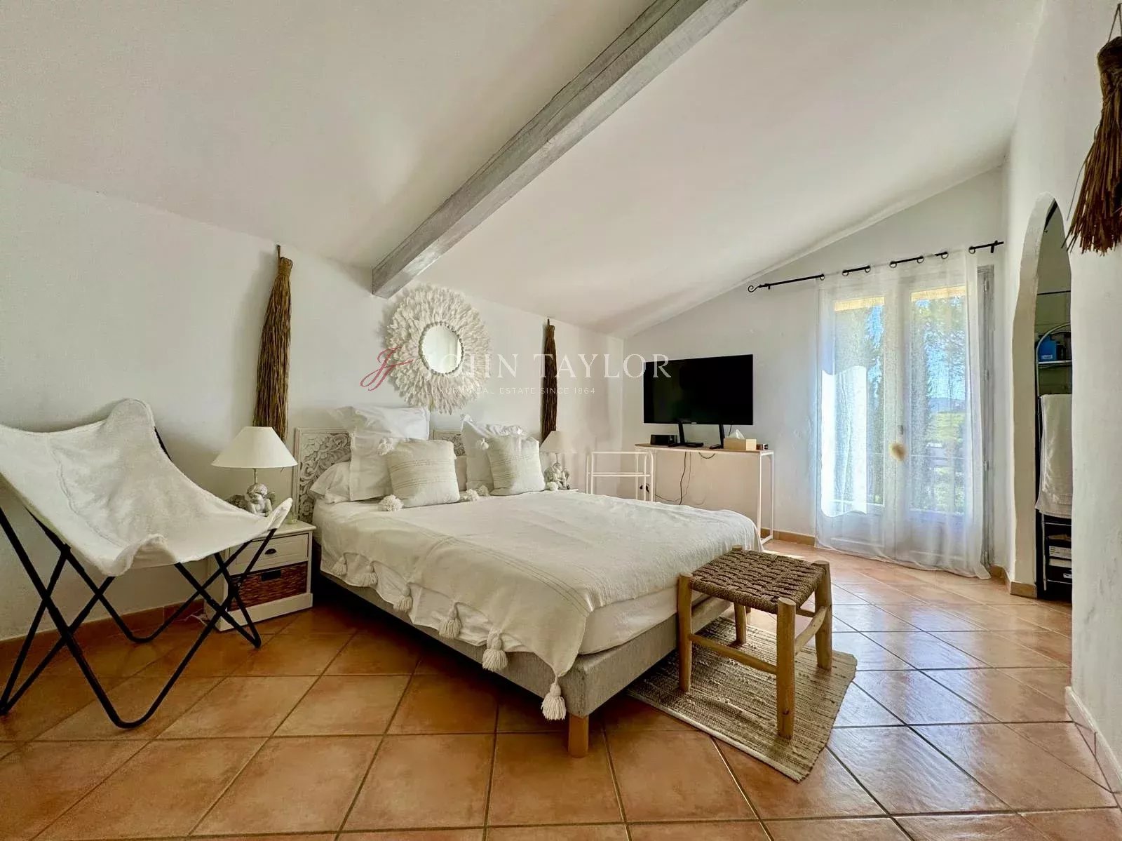 Just a few steps from its charming Provençal village, this authentic farmhouse offers an idyllic setting and a majestic view of Mont Ventoux. The true spirit of Provence reveals itself through the stone, the light, and the surrounding landscapes.