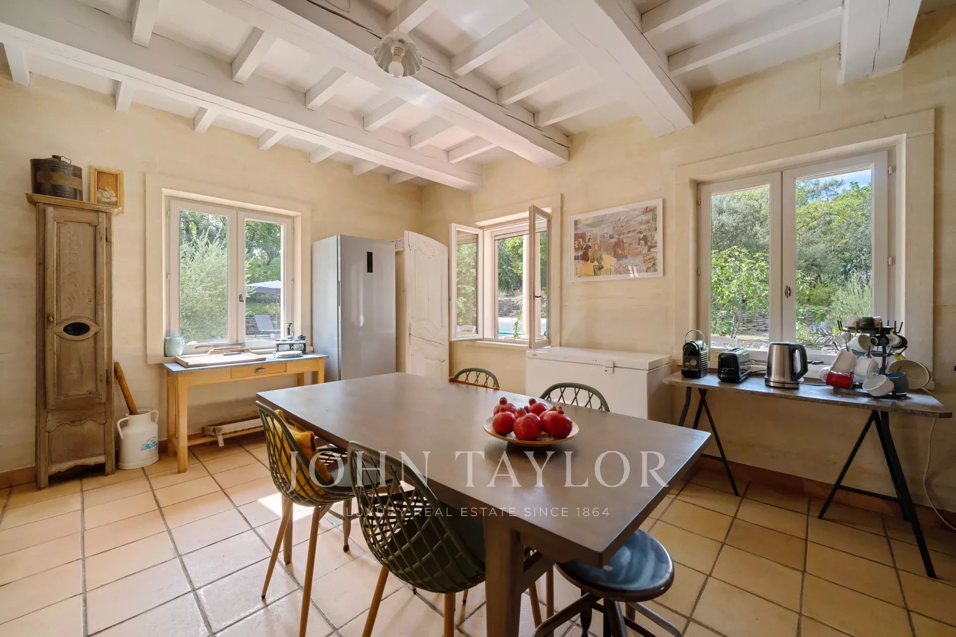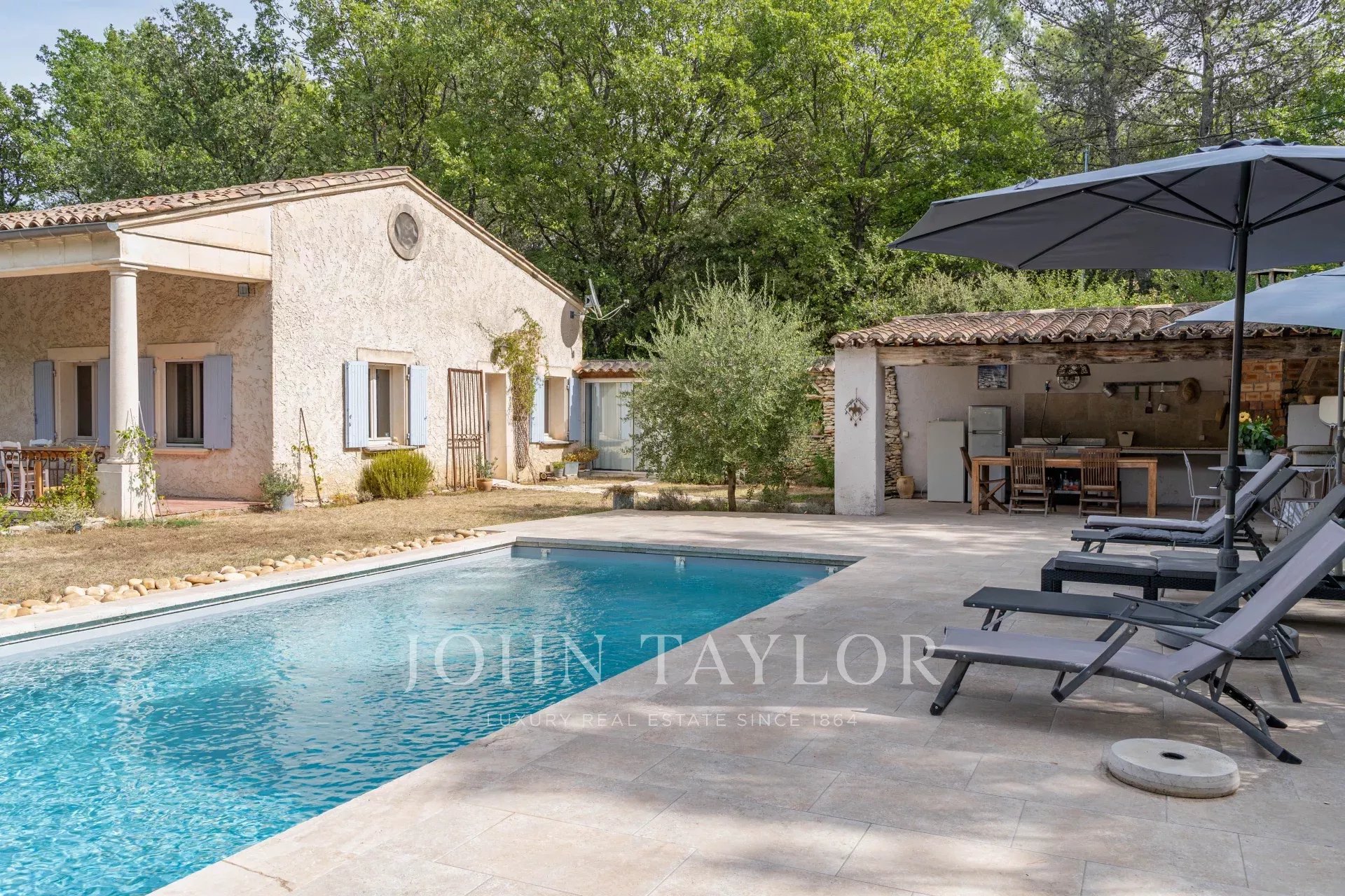 Outside, a recently renovated 10.40 x 4.25-meter swimming pool, equipped with an electric rolling cover, reigns in the midst of a sunny terrace. Additionally, there's a pool house featuring a fully equipped summer kitchen, a barbecue, and an authentic pizza oven, providing a matchless entertainment space. Furthermore, an independent dry stone garage and a charming stone-built annex have been arranged for storing gardening equipment, adding practicality to this property.
