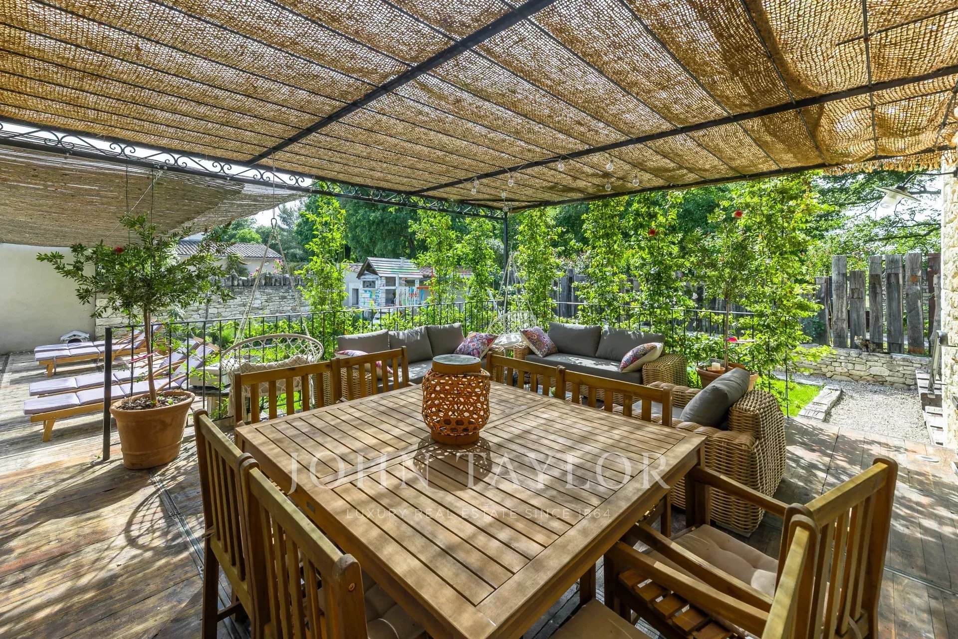 The beautifully landscaped 600 m² garden offers a true Provençal lifestyle. The swimming pool, lounge area, and terrace provide the perfect space to enjoy sunny days with family or friends.