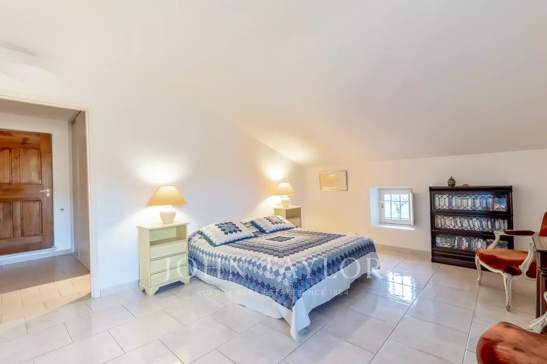 The vast grounds of around 1.1 hectares, with an olive grove of 70 majestic trees, offer charming terraces, inviting you to relax and contemplate. At the heart of this verdant setting, a generous 20x10-meter swimming pool blends harmoniously into the landscape. Nearby, a spacious pool house provides an ideal shaded area after a pleasant swim.