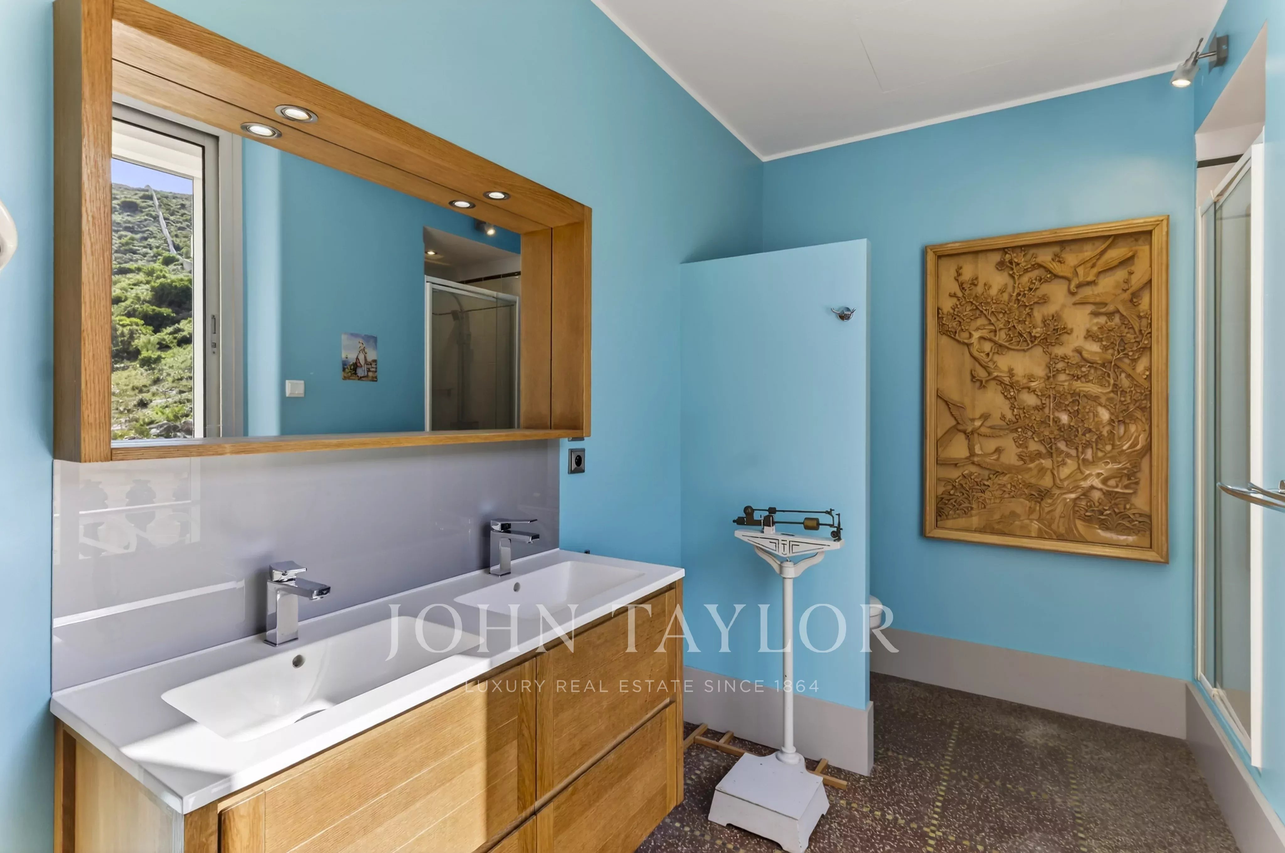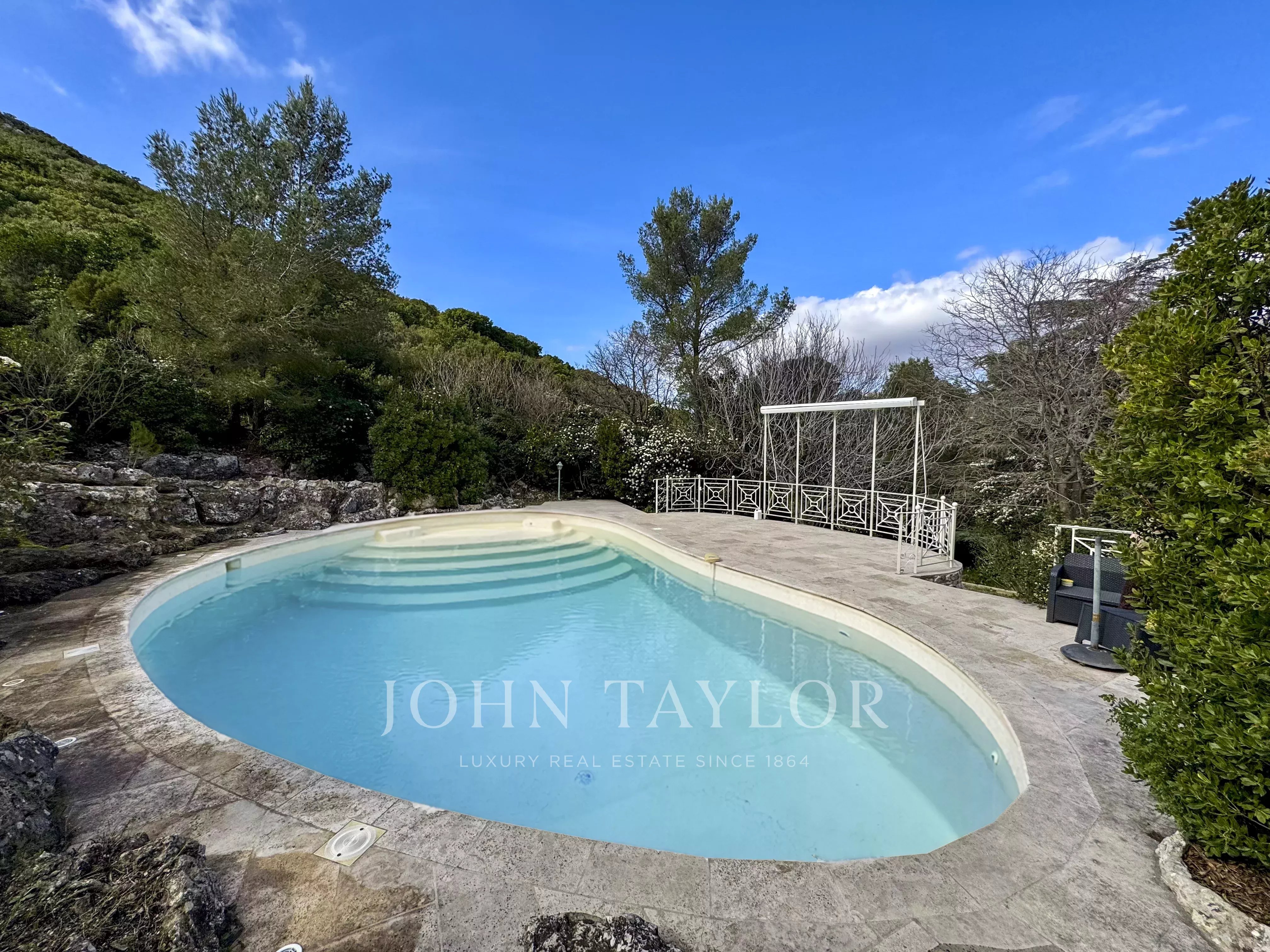 Hidden from view, a large south-facing swimming pool (13 x 7 m) blends seamlessly into the Mediterranean vegetation.