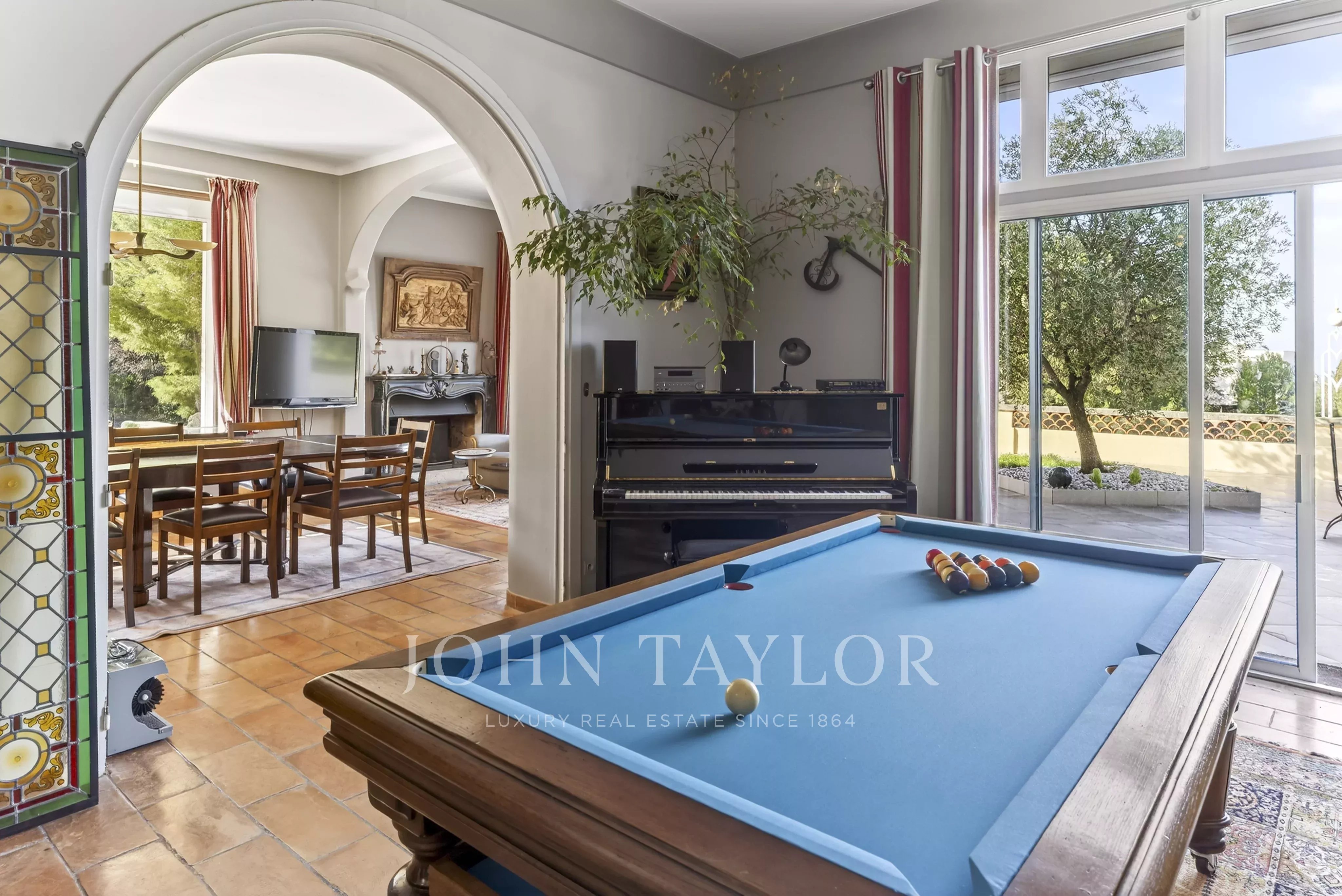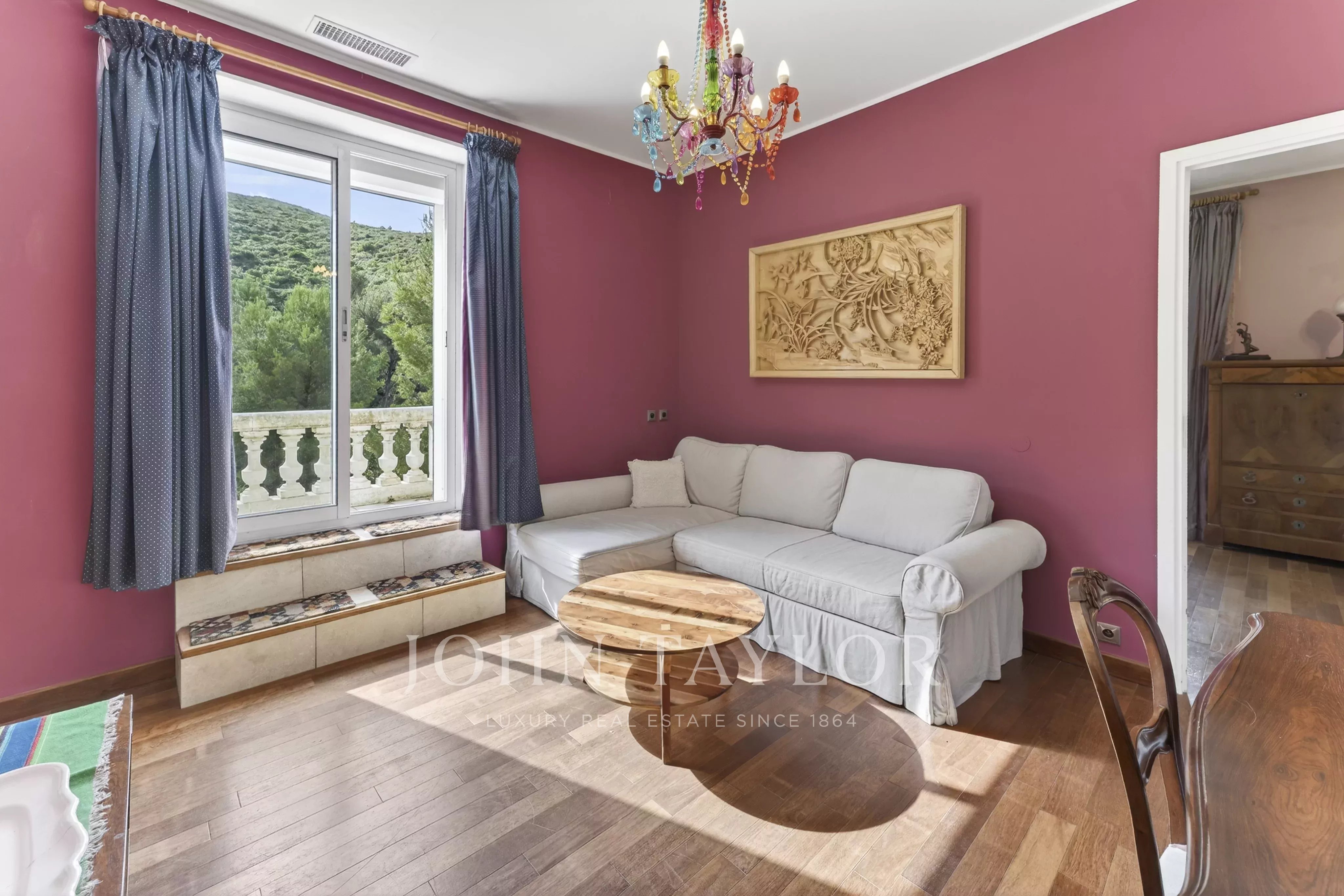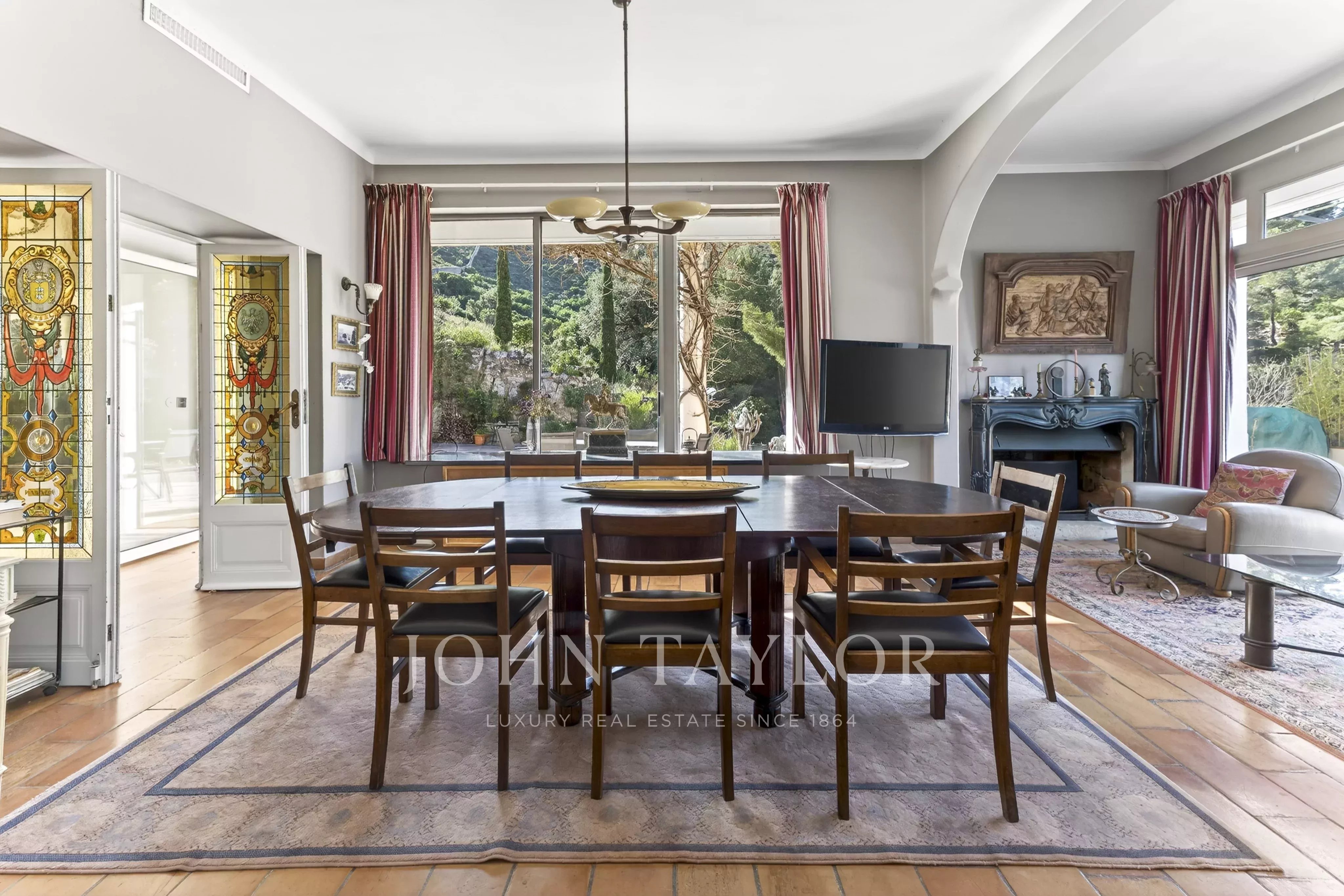 Set in the heart of a beautifully landscaped park of over 14,000 sqm, this character Château, built in 1881 by a Dutch shipowner, rises proudly on its rocky outcrop, sheltered from all disturbance. It blends Venetian-inspired terrazzo floors with refined Art Deco elements, including a remarkable sweeping staircase, stained-glass windows, and sandblasted glass doors.
