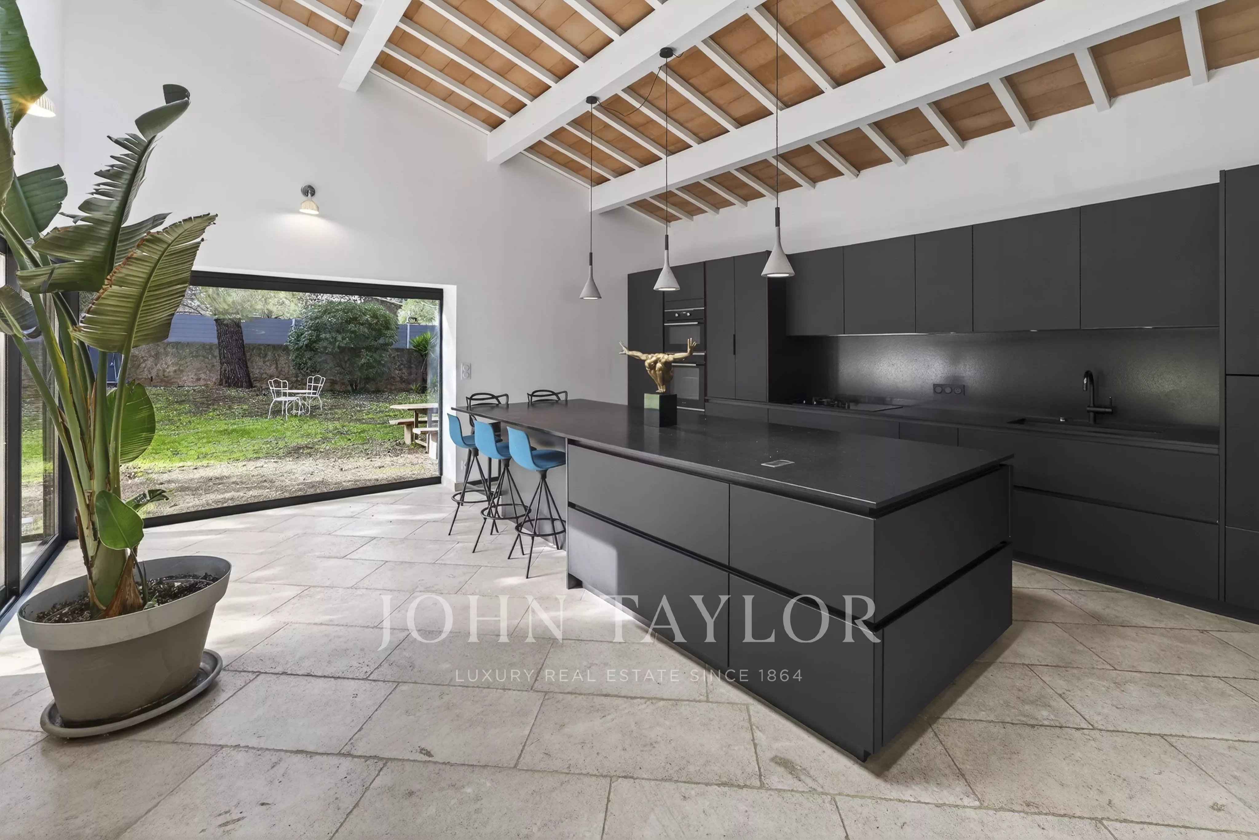 John Taylor Sanary/Bandol presents this architect-designed villa by Maurice Sauzet, located in the sought-after Janas area of La Seyne-sur-Mer, close to Six-Fours-les-Plages. Set on a flat and beautifully landscaped plot of approximately 3,200 sqm, the property offers a rare living environment combining timeless architecture, generous volumes and absolute comfort.