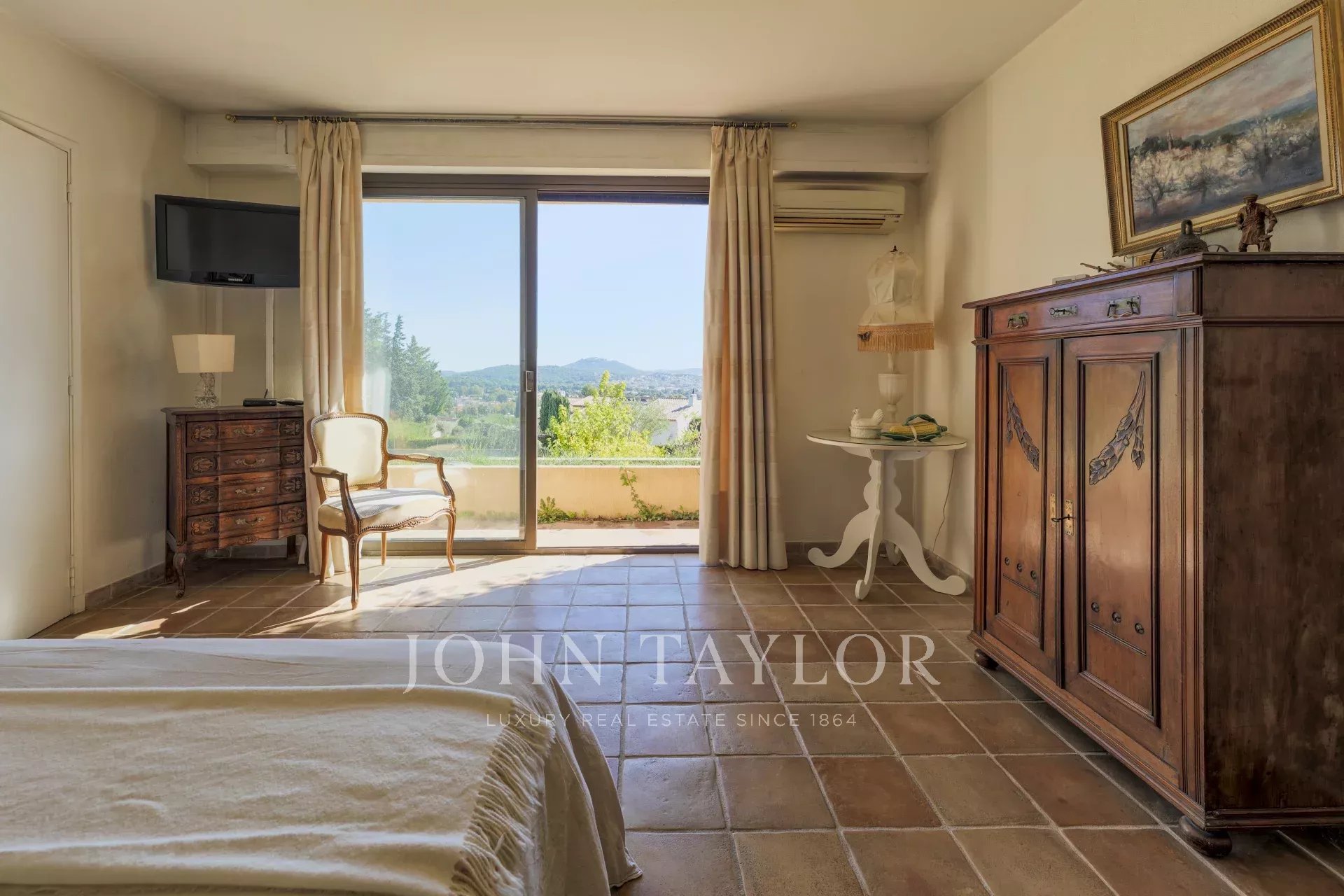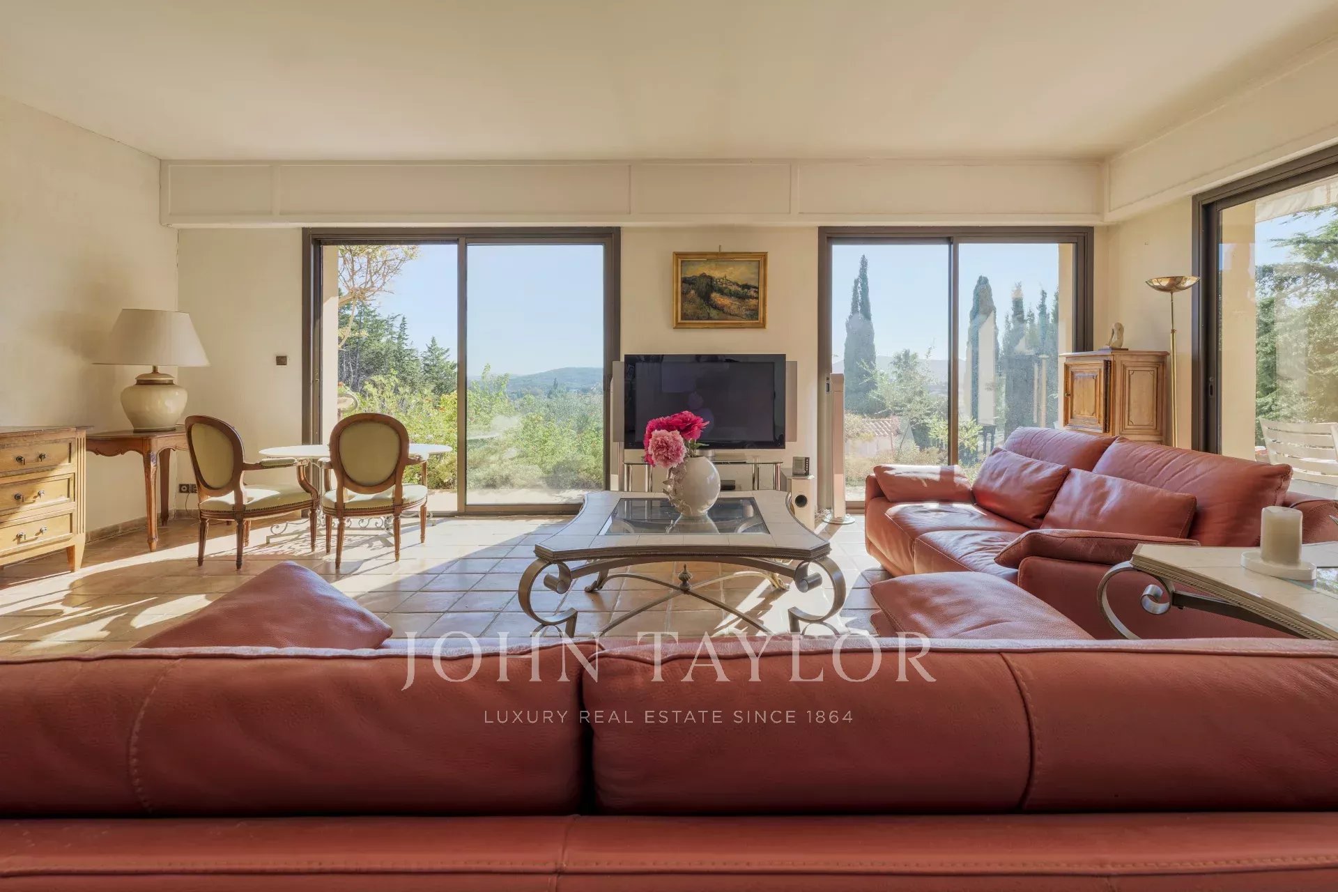 Outdoors, the villa offers an 11 x 5 m swimming pool surrounded by large terraces, a technical room, and an irrigation system connected to the Canal de Provence. With no overlooking neighbors, the property combines comfort, space, and tranquility.