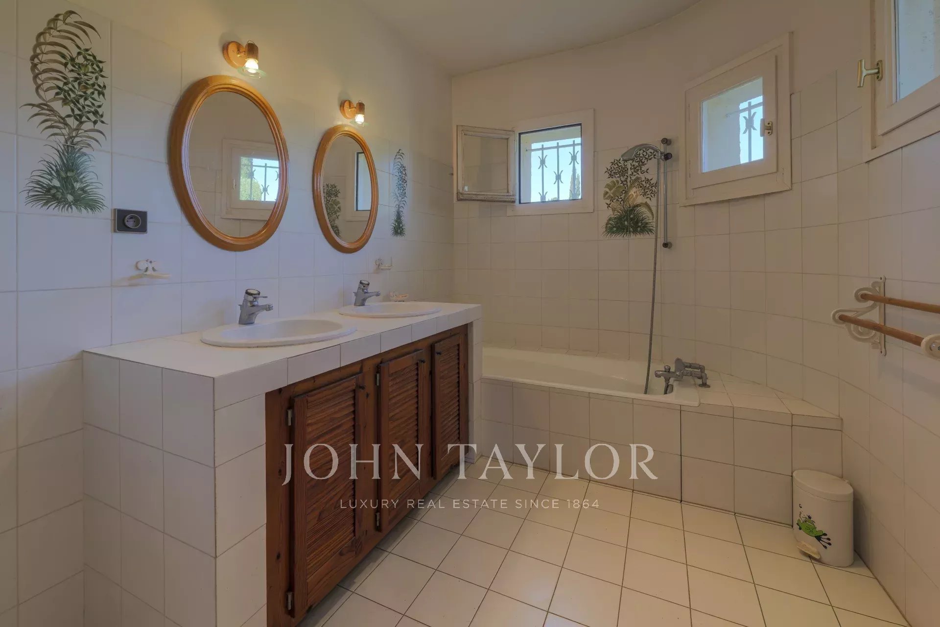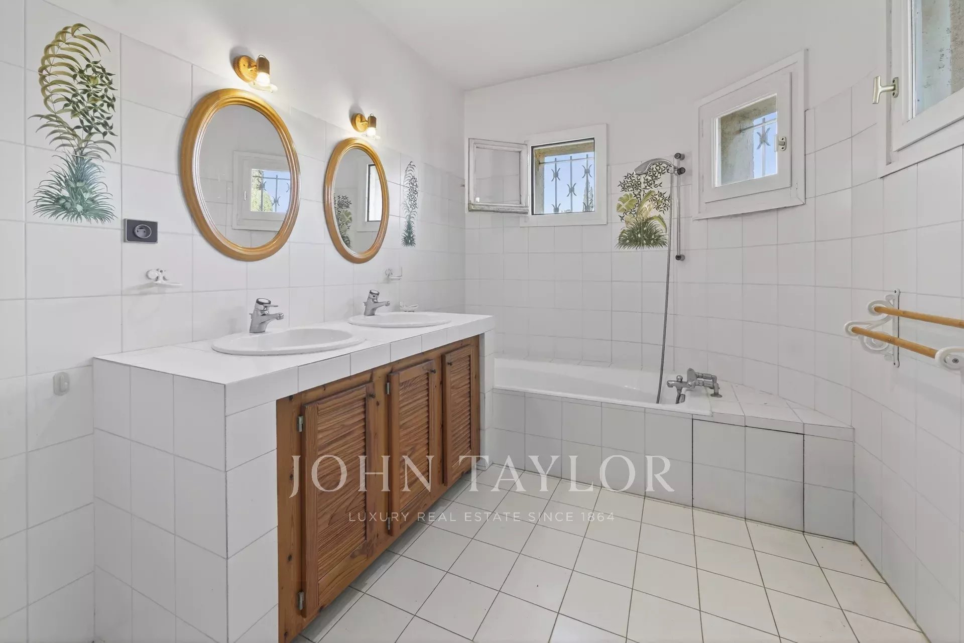 John Taylor Sanary presents this architect-designed villa of 217 sqm, located in Sanary-sur-Mer on a fully enclosed and landscaped plot of 2,200 sqm in an elevated position. It enjoys a beautiful south/southeast exposure, open views, and a particularly peaceful setting. Built in a traditional style, it impresses with its generous volumes, natural light, and terracotta floors that lend authenticity and character.