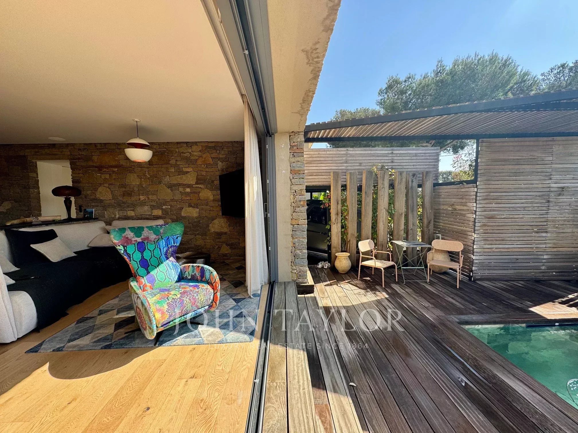 The JOHN TAYLOR Marseille & Littoral Agency is pleased to present you, just a few minutes' walk from the village of La Cadière d'Azur, its shops, and Provençal lifestyle, an elegant recent contemporary house of 125 m², nestled in a quiet and preserved environment.