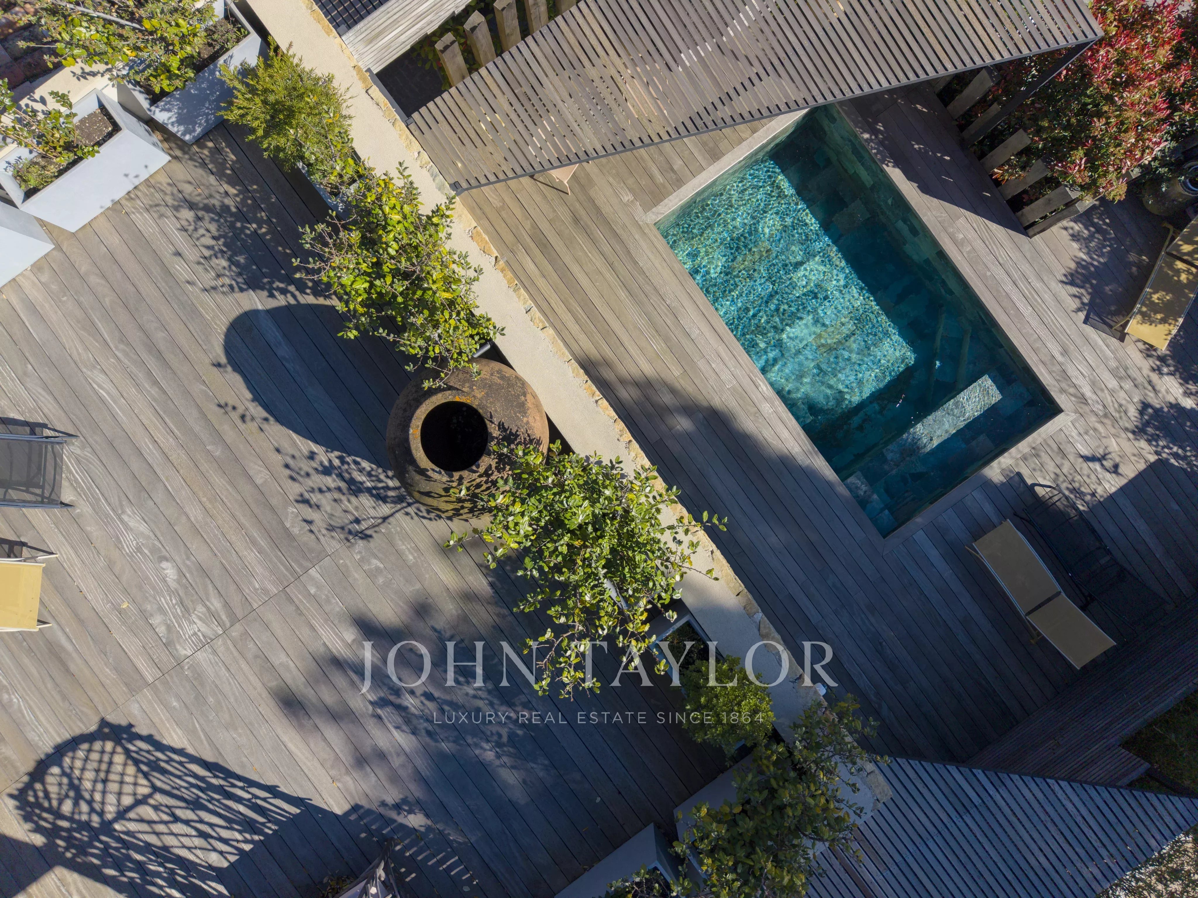 The features are of high quality, kitchen equipment by Miele, connected to the sewer system, heated pool, Technal folding glass doors, oak parquet (...)