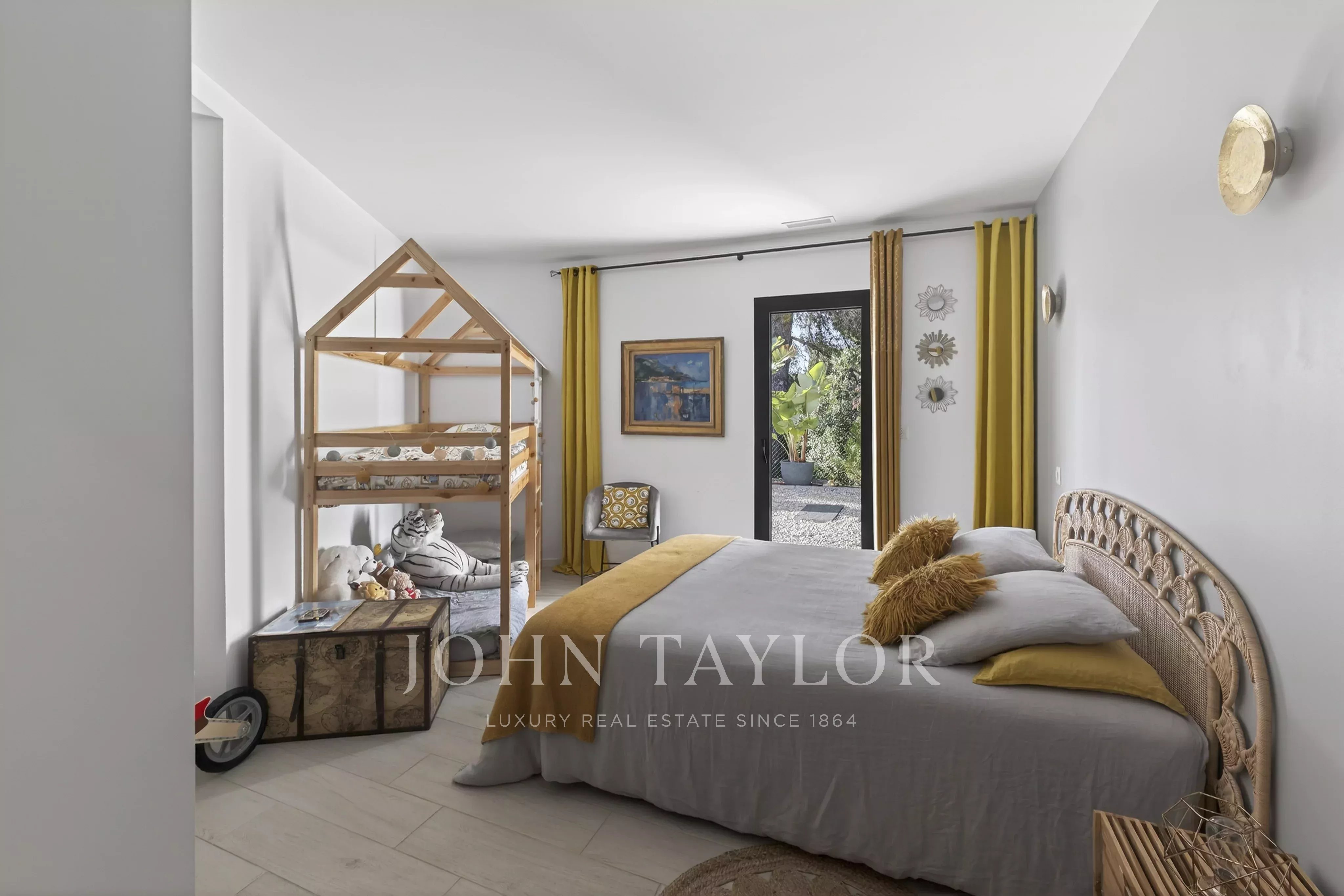 Located 2.5 km from the center of the village of Saint-Cyr-sur-Mer and 4 km from Les Lecques beach, this contemporary single-storey home is set in a very quiet environment with no overlooking neighbors. It sits on a fully enclosed and landscaped plot of over 2,000 sq.m.