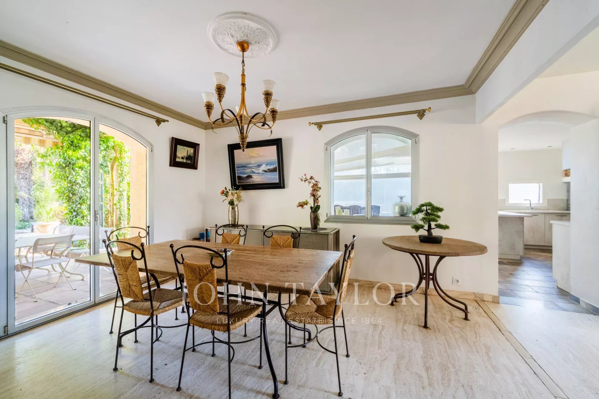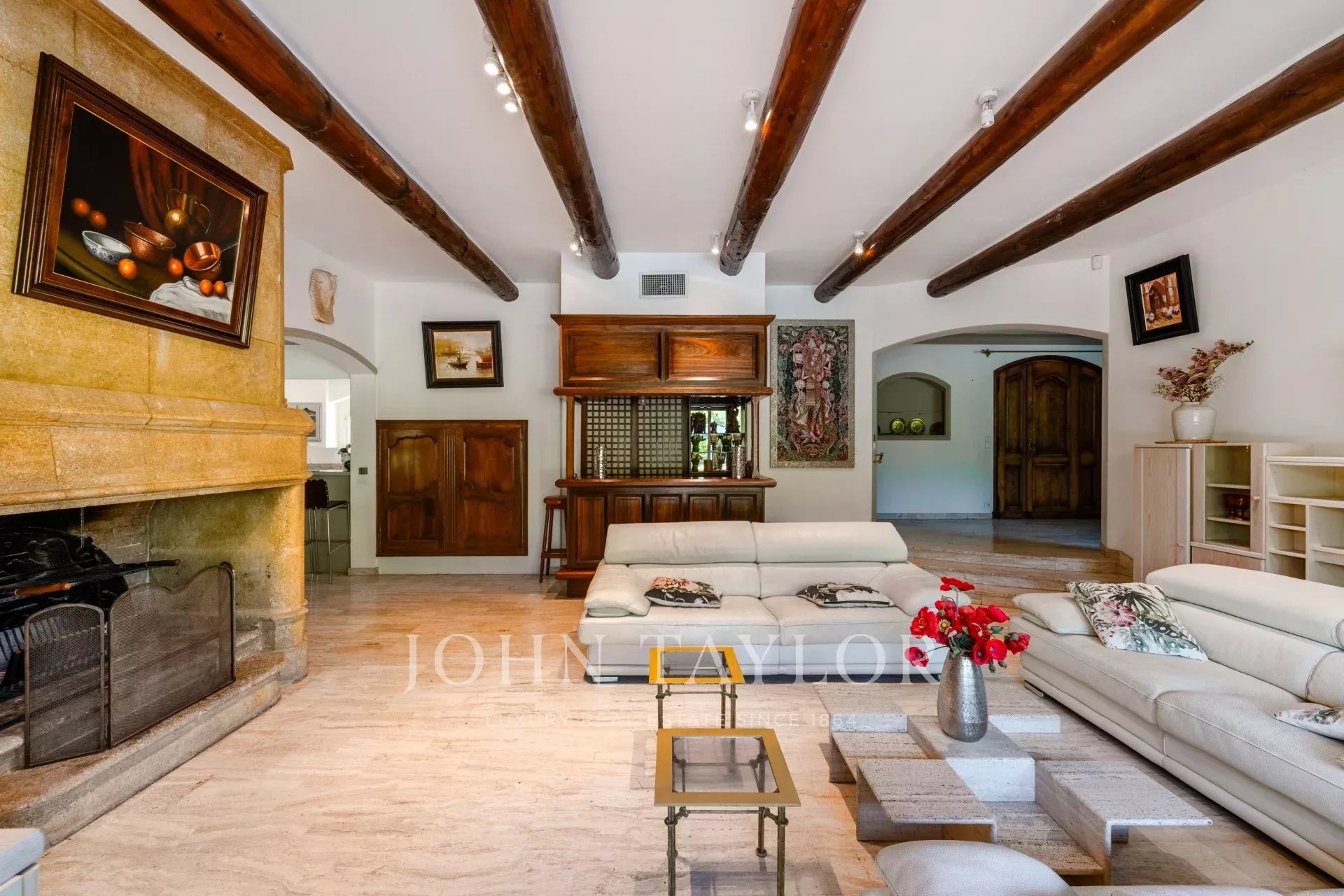 The house is organized mainly on one level, around a vast entrance hall leading to a large living room with a stone fireplace, a convivial dining room opening onto a sheltered terrace, the garden and the swimming pool.