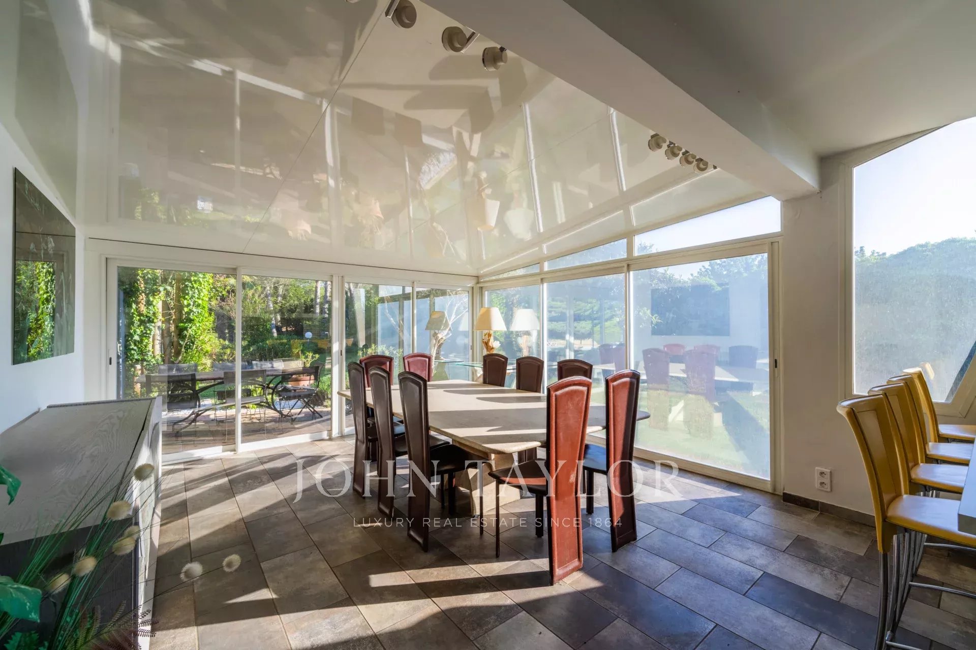 A bright adjoining veranda provides a second, spacious reception area, equipped with a kitchen and opening onto the garden in all seasons.