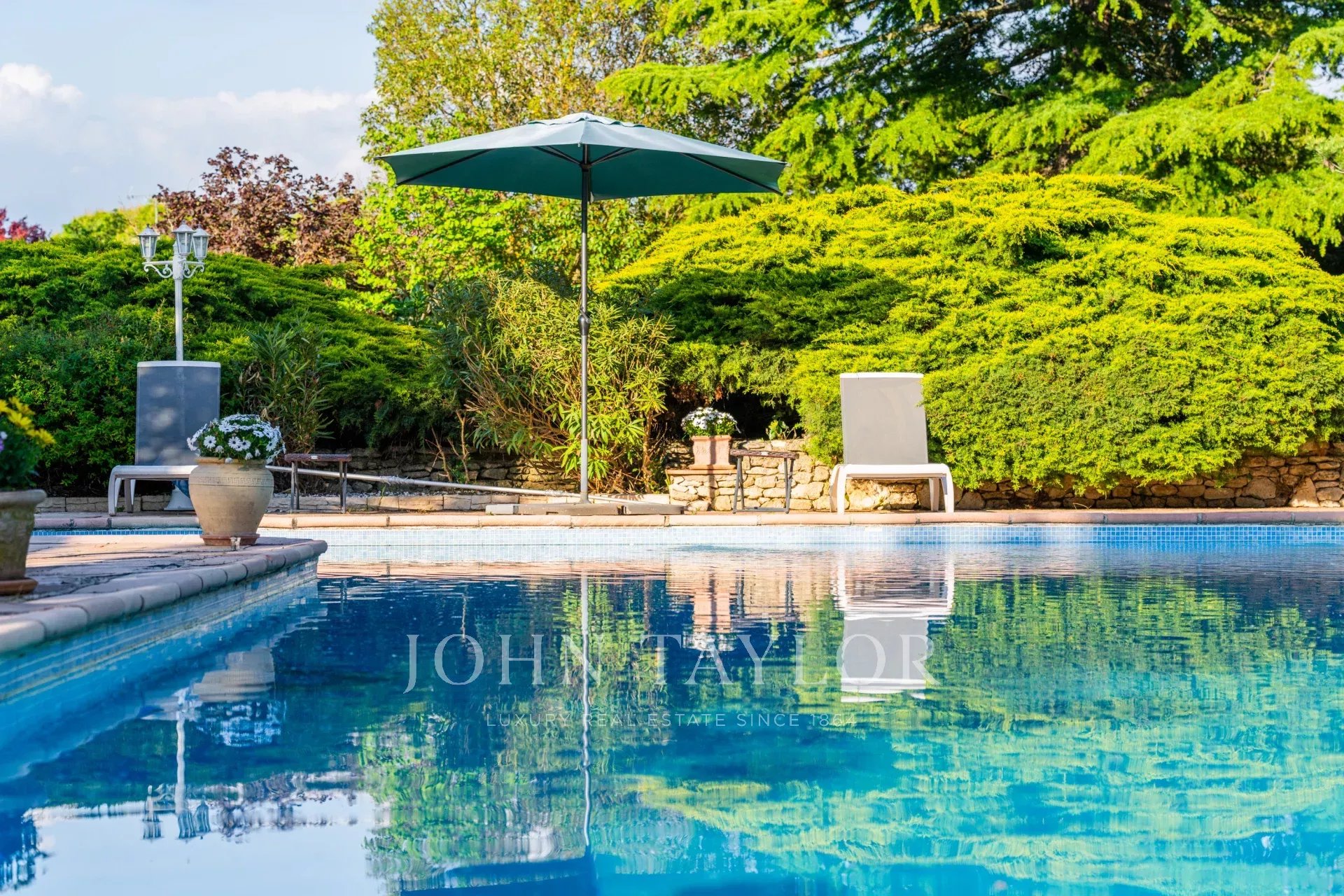 Your John Taylor prestige real estate agency is pleased to present for sale a spacious family property set in 4000 sqm of beautifully landscaped gardens with trees and a heated swimming pool.