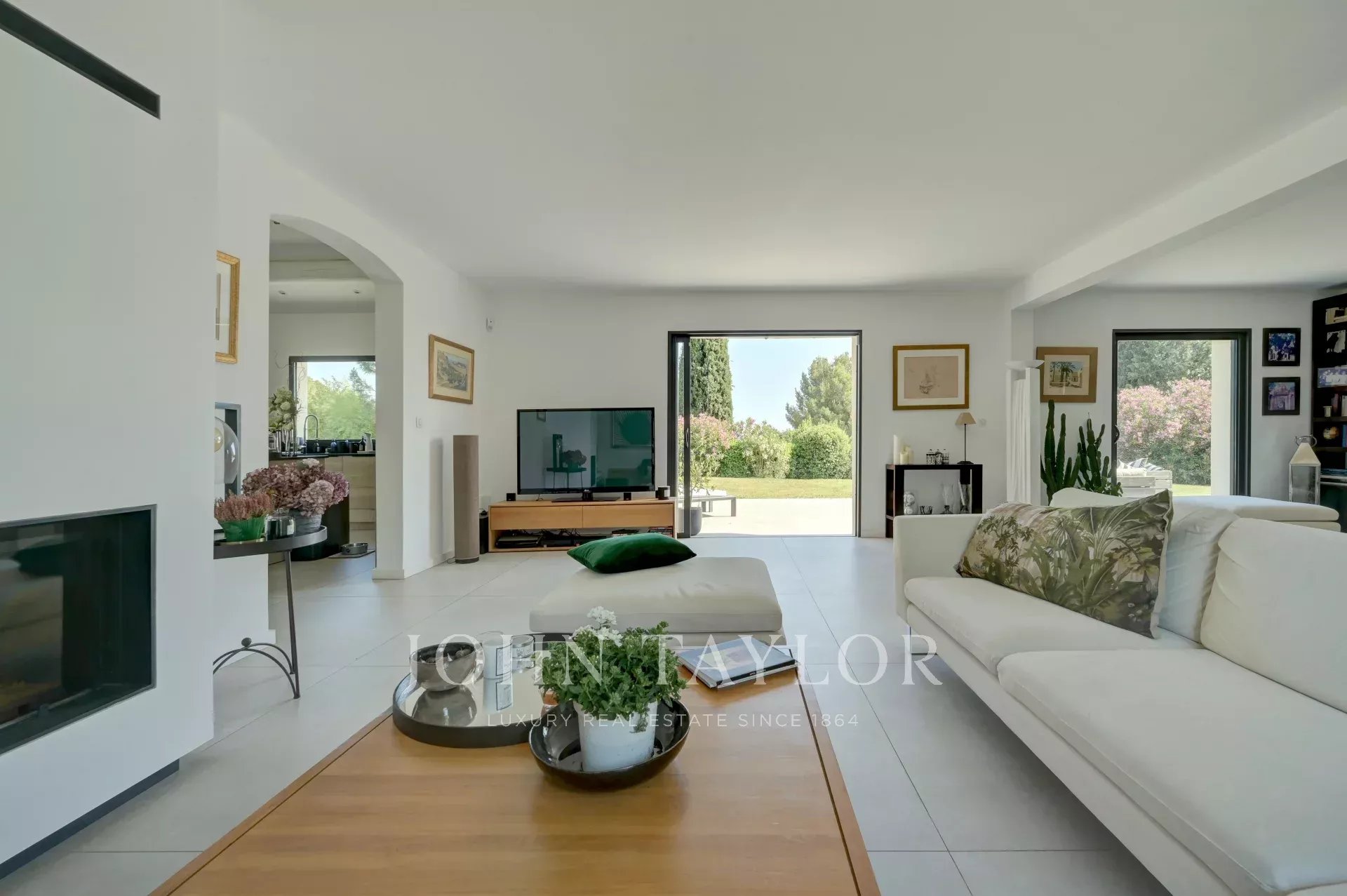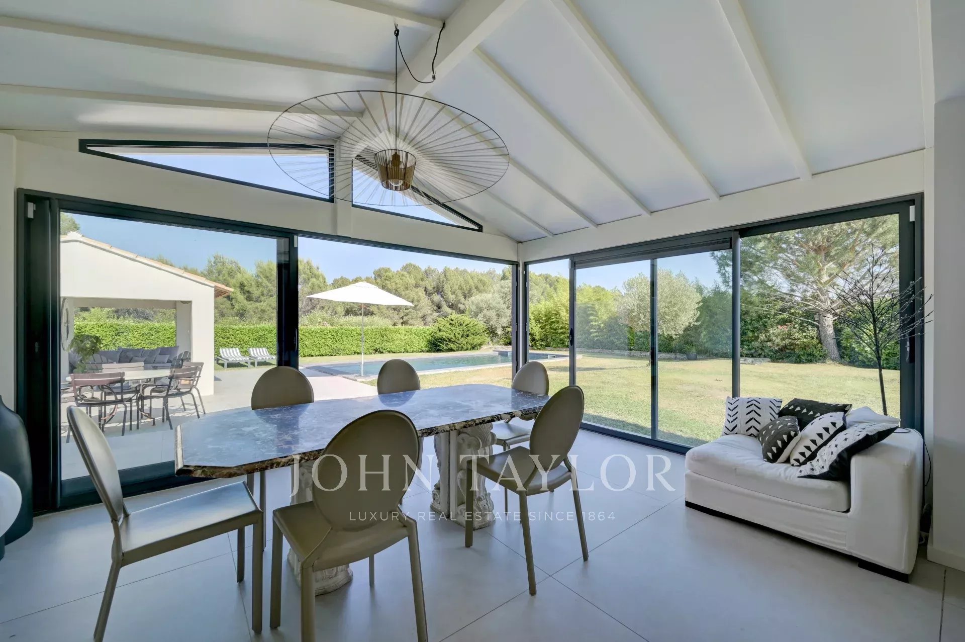 Nestled in a verdant setting, just 15 minutes from the center of Aix-en-Provence, in the commune of Eguilles, this elegant contemporary house, with its 240 sqm of living space, will seduce you with its generous volumes, luminosity and exceptional living environment. It benefits from a rare environment, in a dominant position, with a perfectly unobstructed view and absolute peace and quiet.