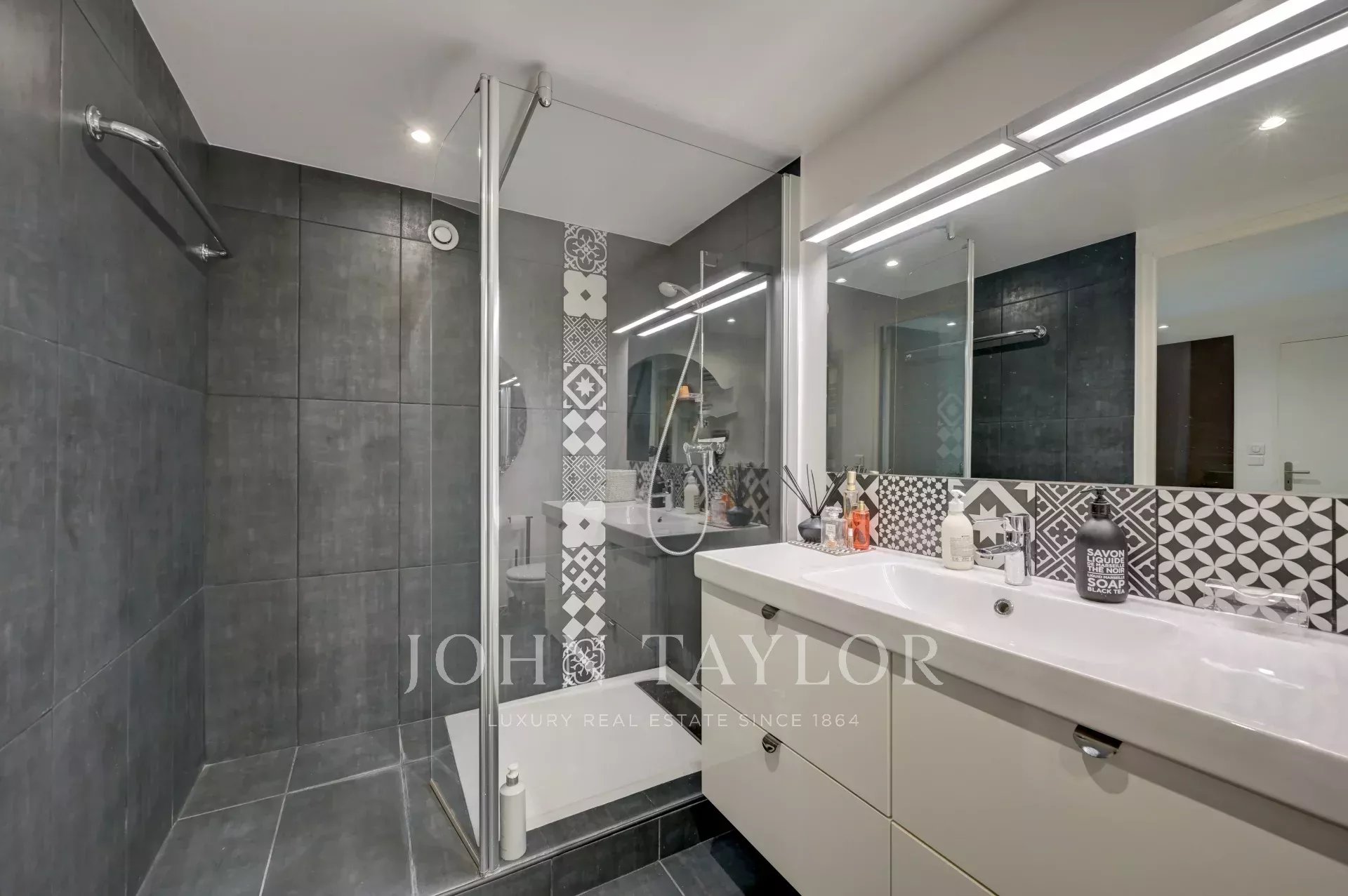 On one level, the property features a vast living room bathed in light thanks to large bay windows opening onto beautiful terraces and the garden. A contemporary open kitchen and veranda extend this convivial space, opening onto the pool and garden. A master suite, with shower room and dressing room, completes the ground-level living space.
