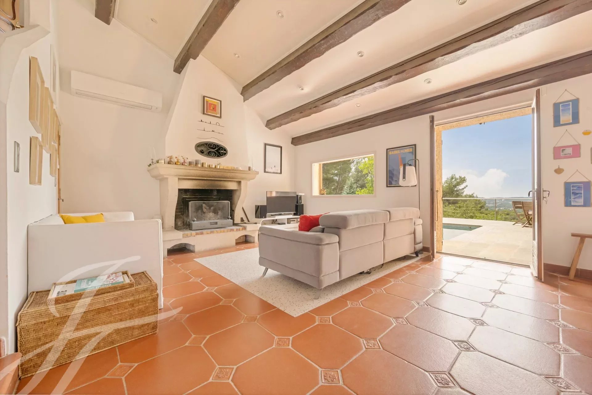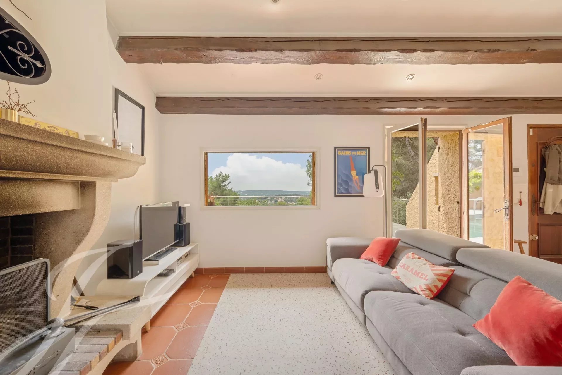 The property's exceptional natural setting is enhanced by a host of outdoor amenities: large terrace, swimming pool with movable floor and pool house, tennis court, pétanque court, vegetable garden and orchard.