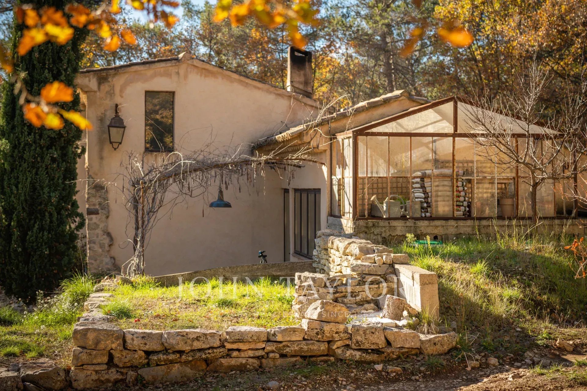 North of Aix-en-Provence, in the heart of an unspoilt natural setting, this charming house is revealed at the end of a quiet lane, nestled in a clearing surrounded by forest. An exceptional, rare setting, where absolute calm and close proximity to nature create a unique atmosphere.