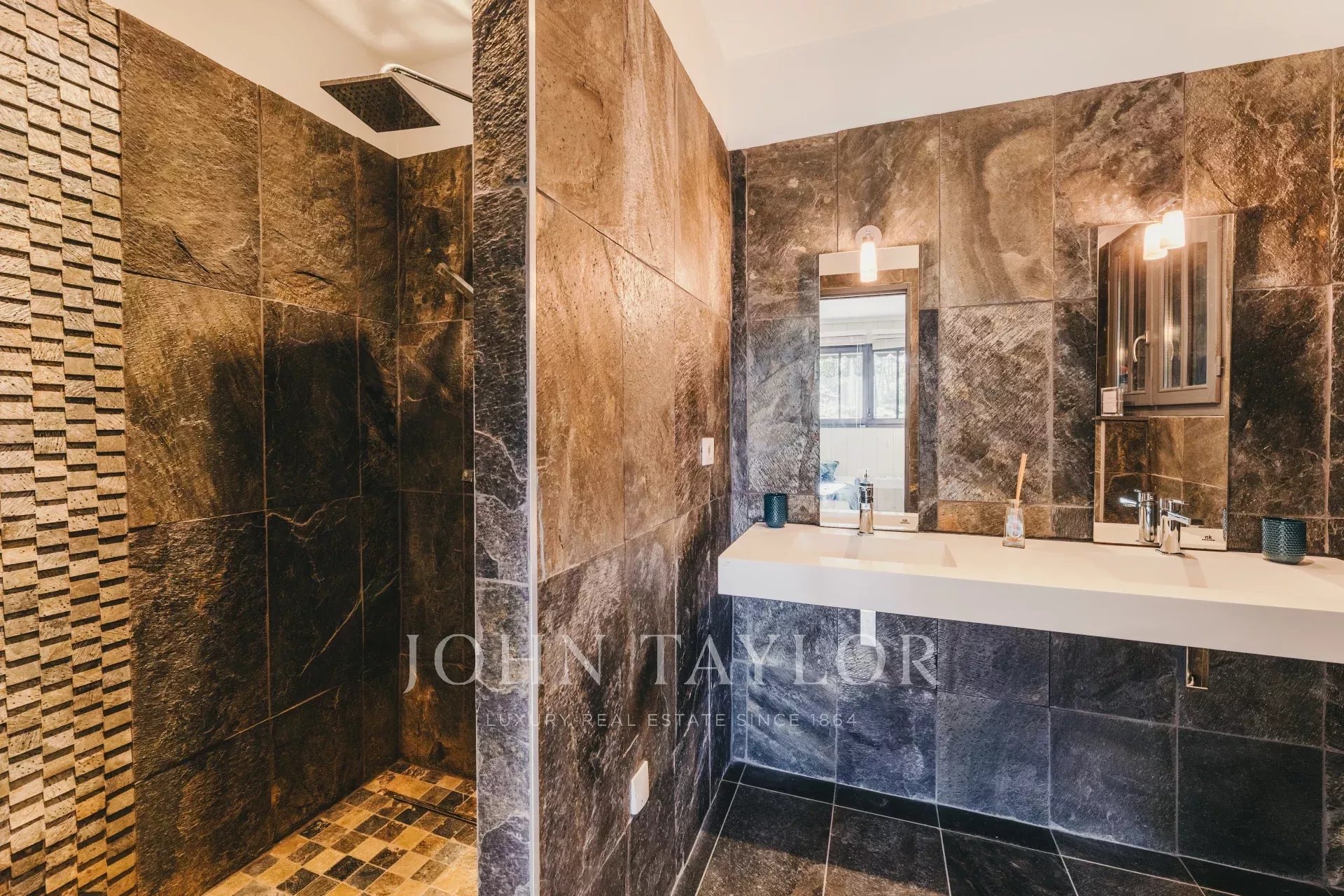 The garden is a veritable haven of peace, equipped with an automatic watering system to preserve its verdant beauty.