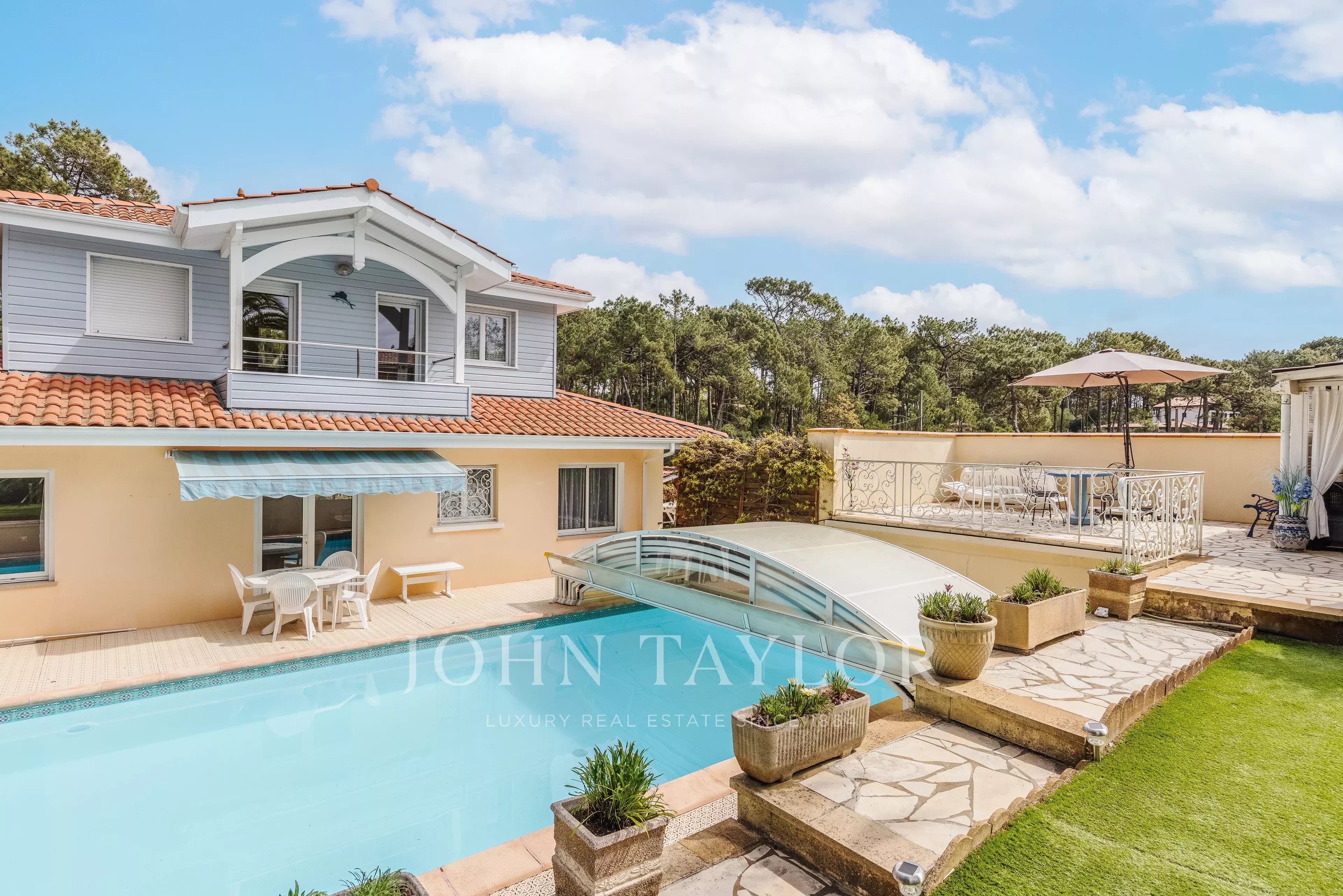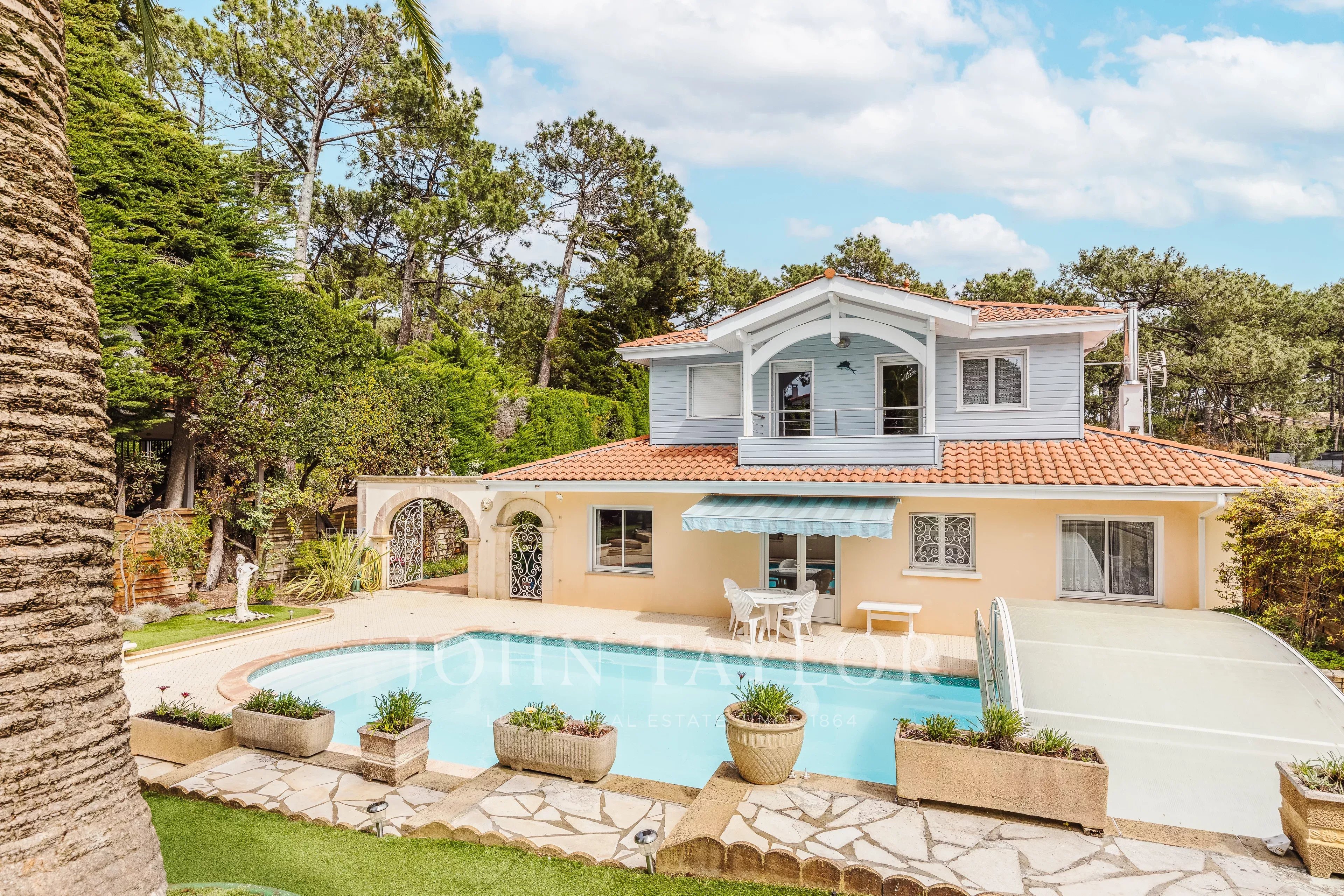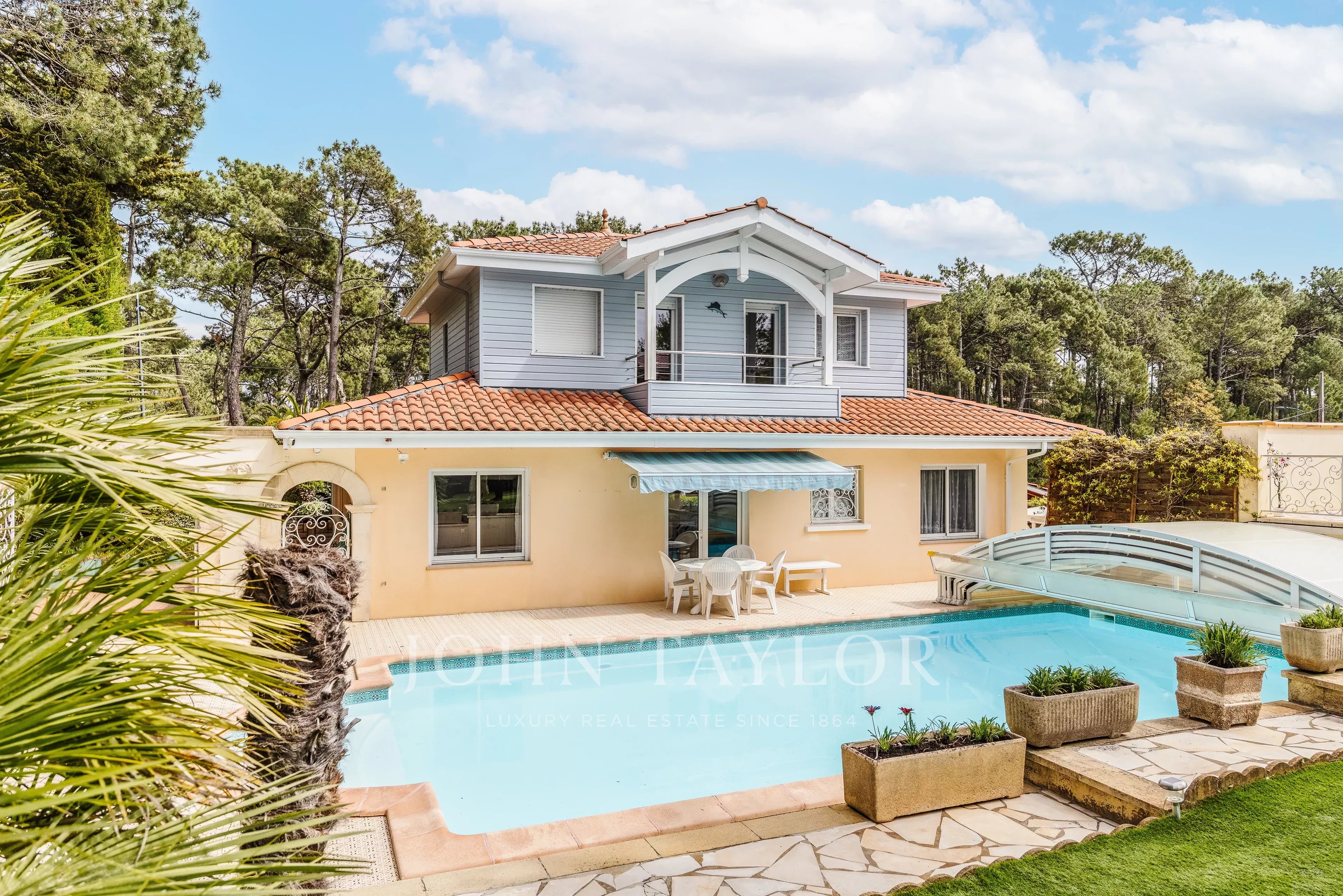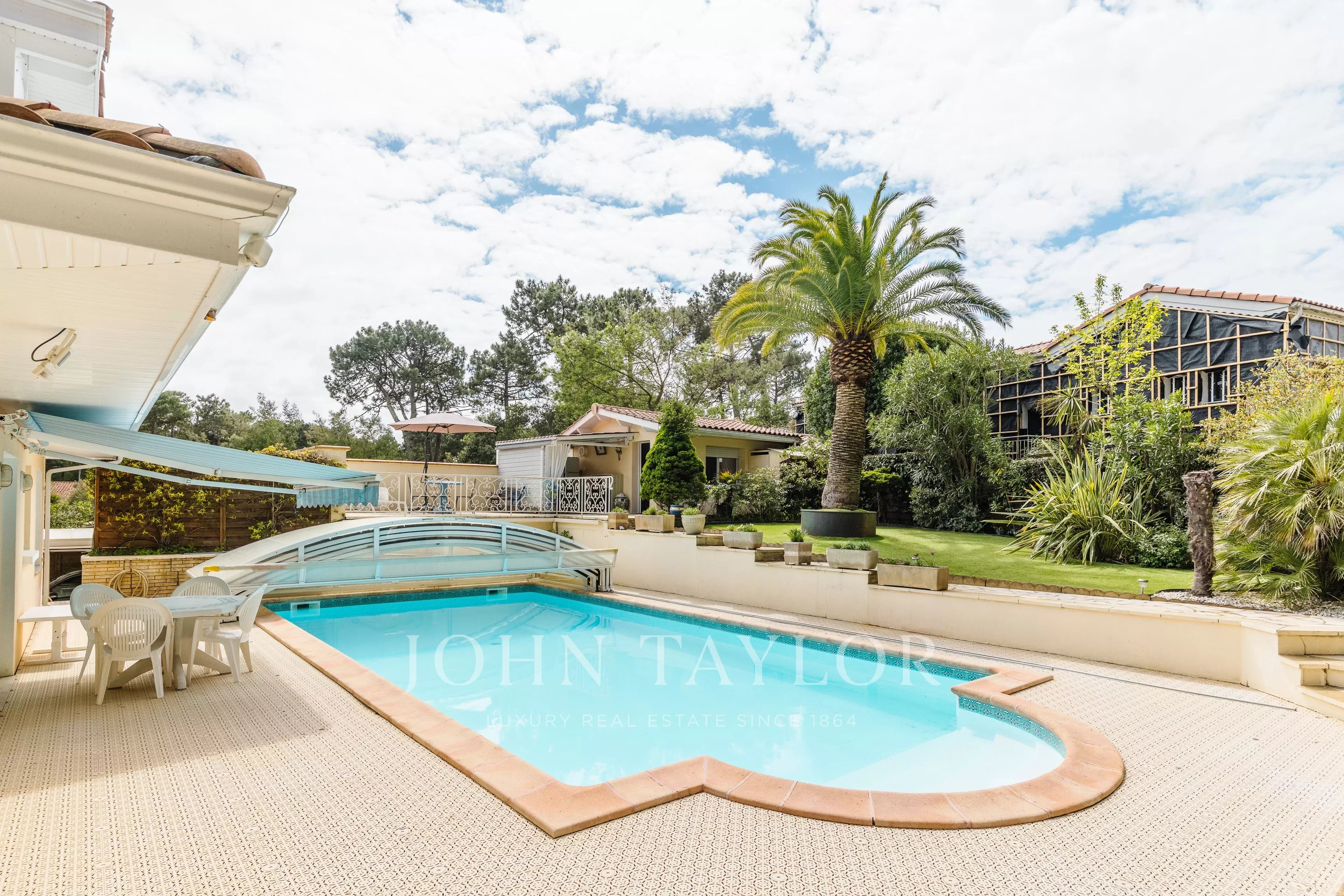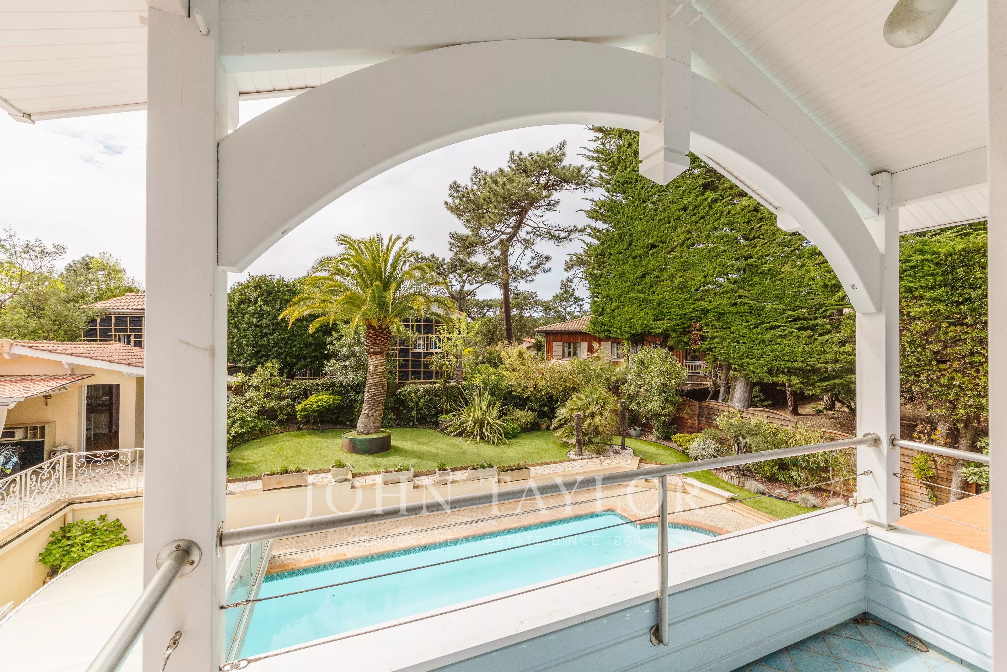 Outside, the setting is fully conducive to the art of living in the Basin: a large swimming pool for long summer days, a garden suitable for sharing moments, and an outbuilding offering multiple possibilities — guest house, workshop, or independent space. A large garage completes this set with many assets.