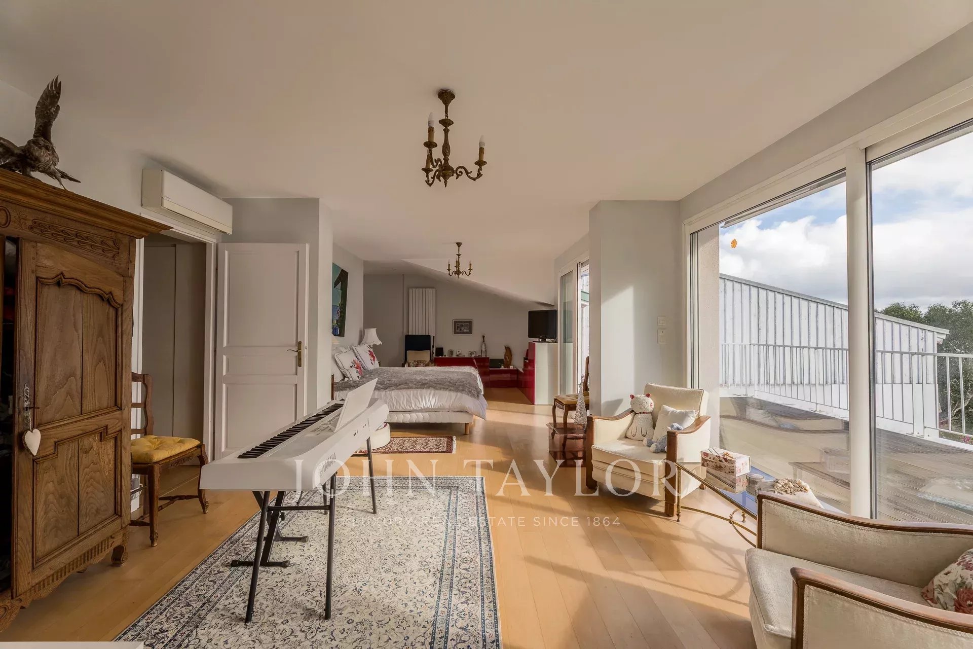 Six bedrooms across several levels, including a majestic master suite extended by a private terrace overlooking the Bay,
