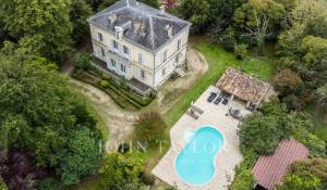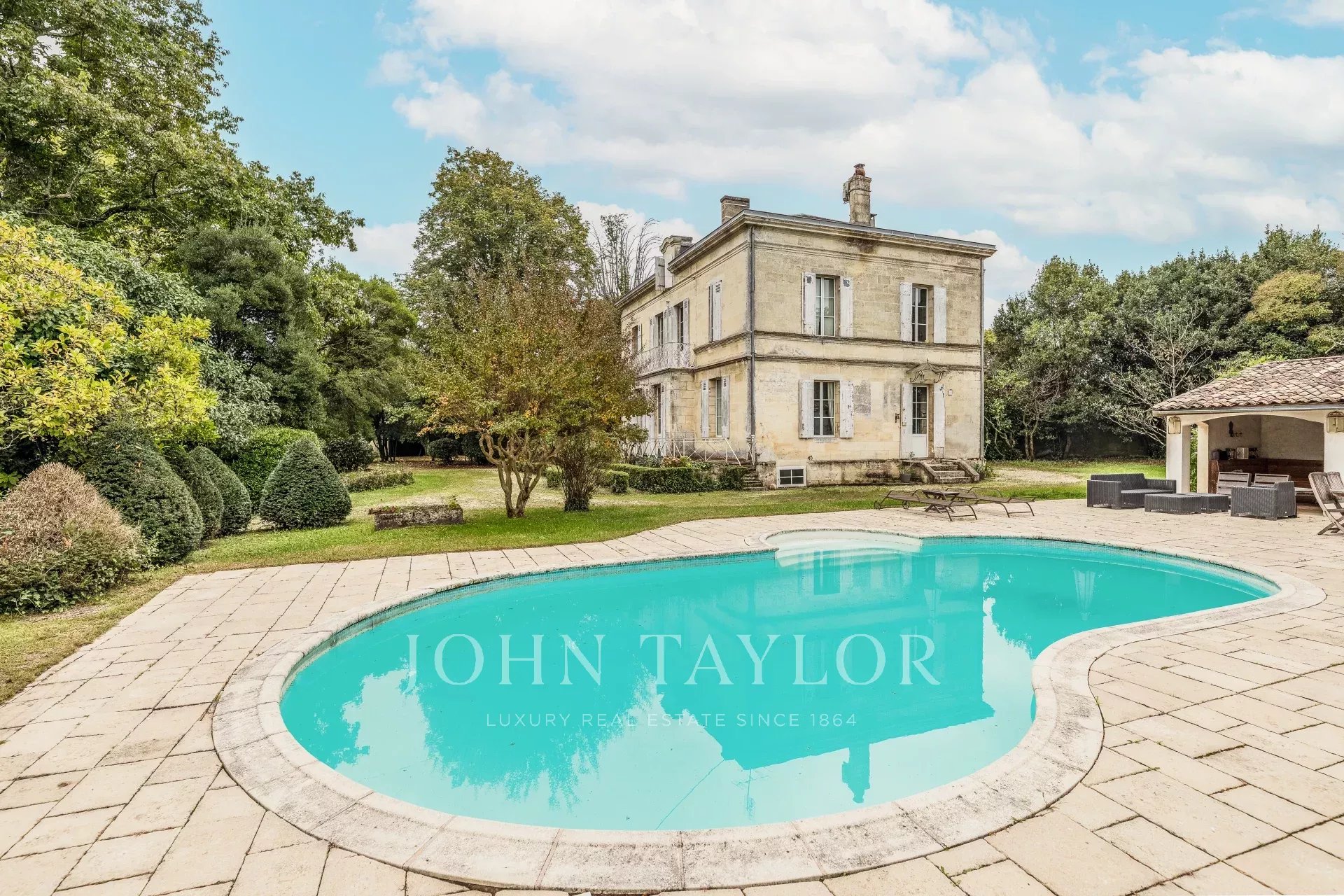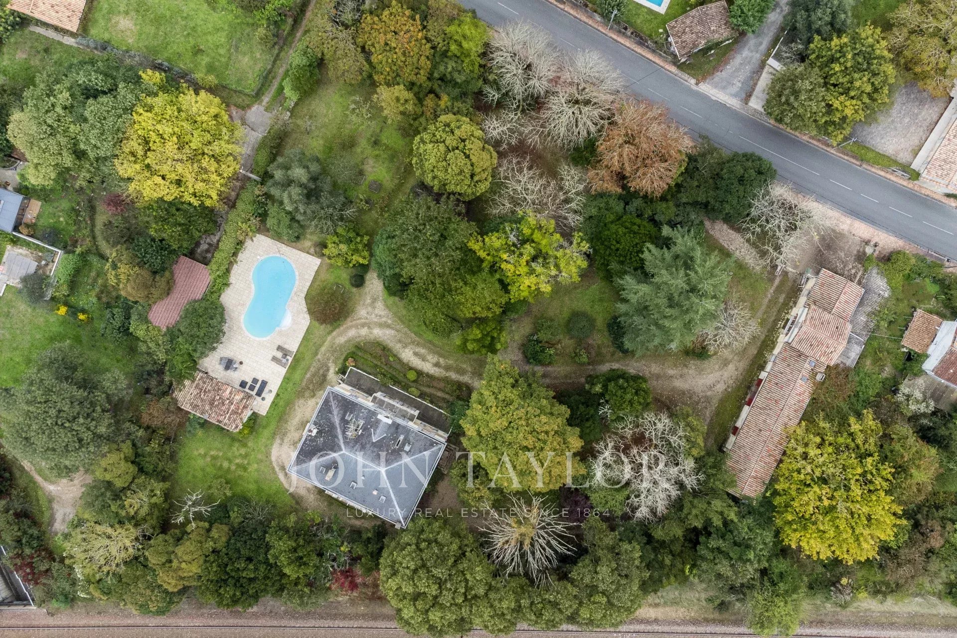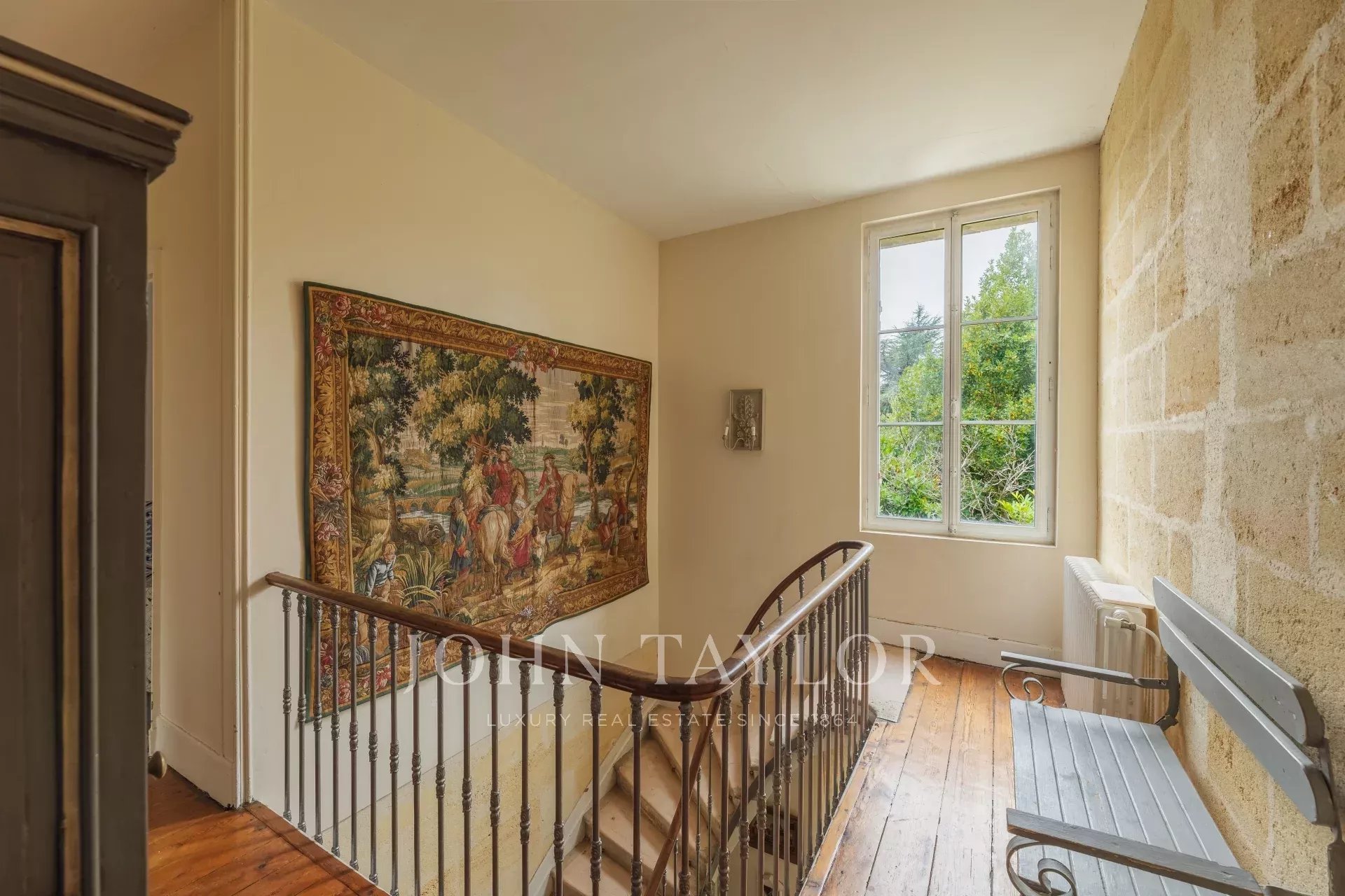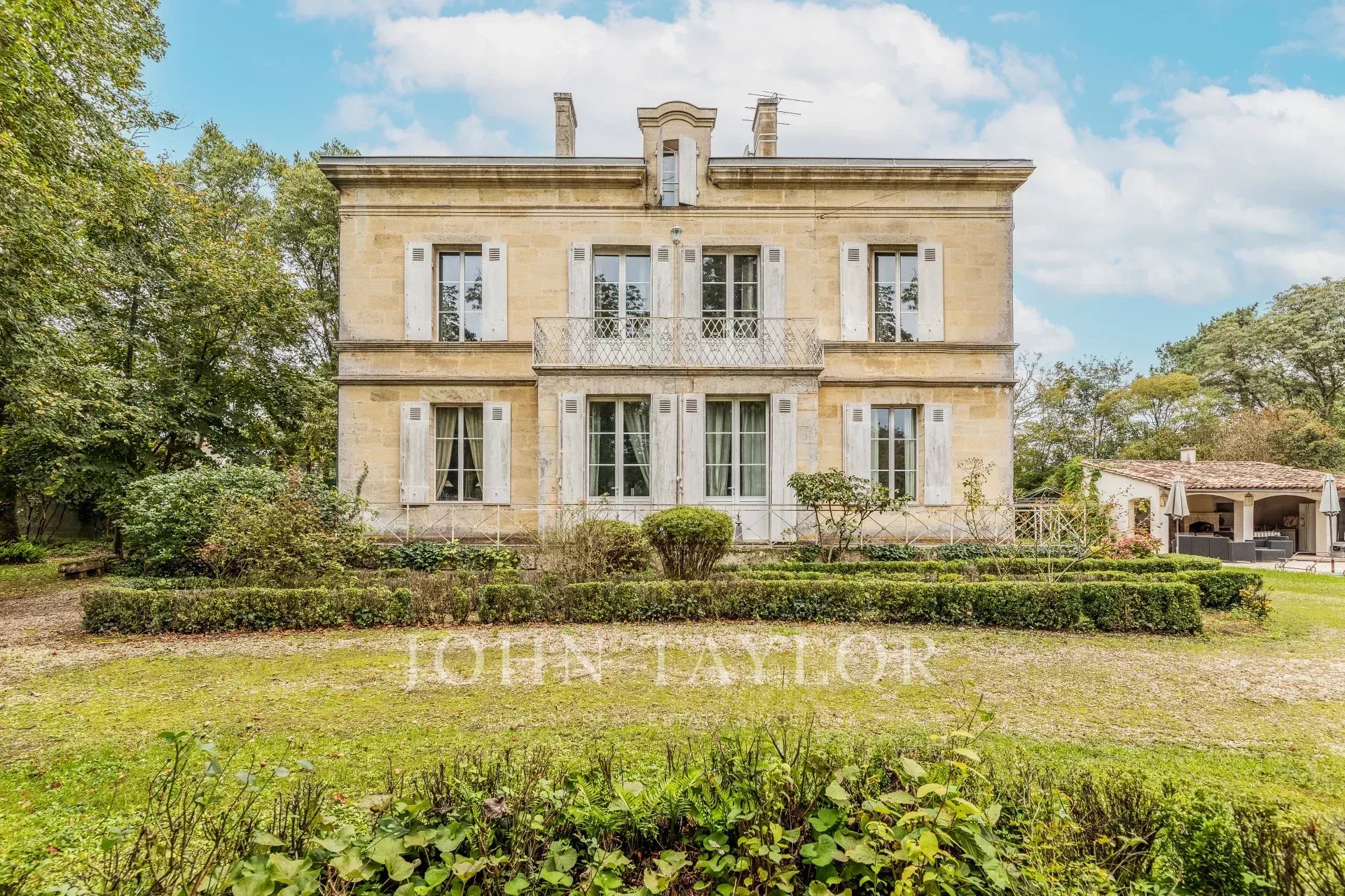 Located in Vayres, just a few minutes from Bordeaux, this magnificent 19th-century property spans approximately 368 sqm of living space, combining historic charm with exceptional potential. Nestled in the heart of a beautifully landscaped 4,200 sqm park, it offers a unique lifestyle in absolute tranquility, while being close to all amenities.