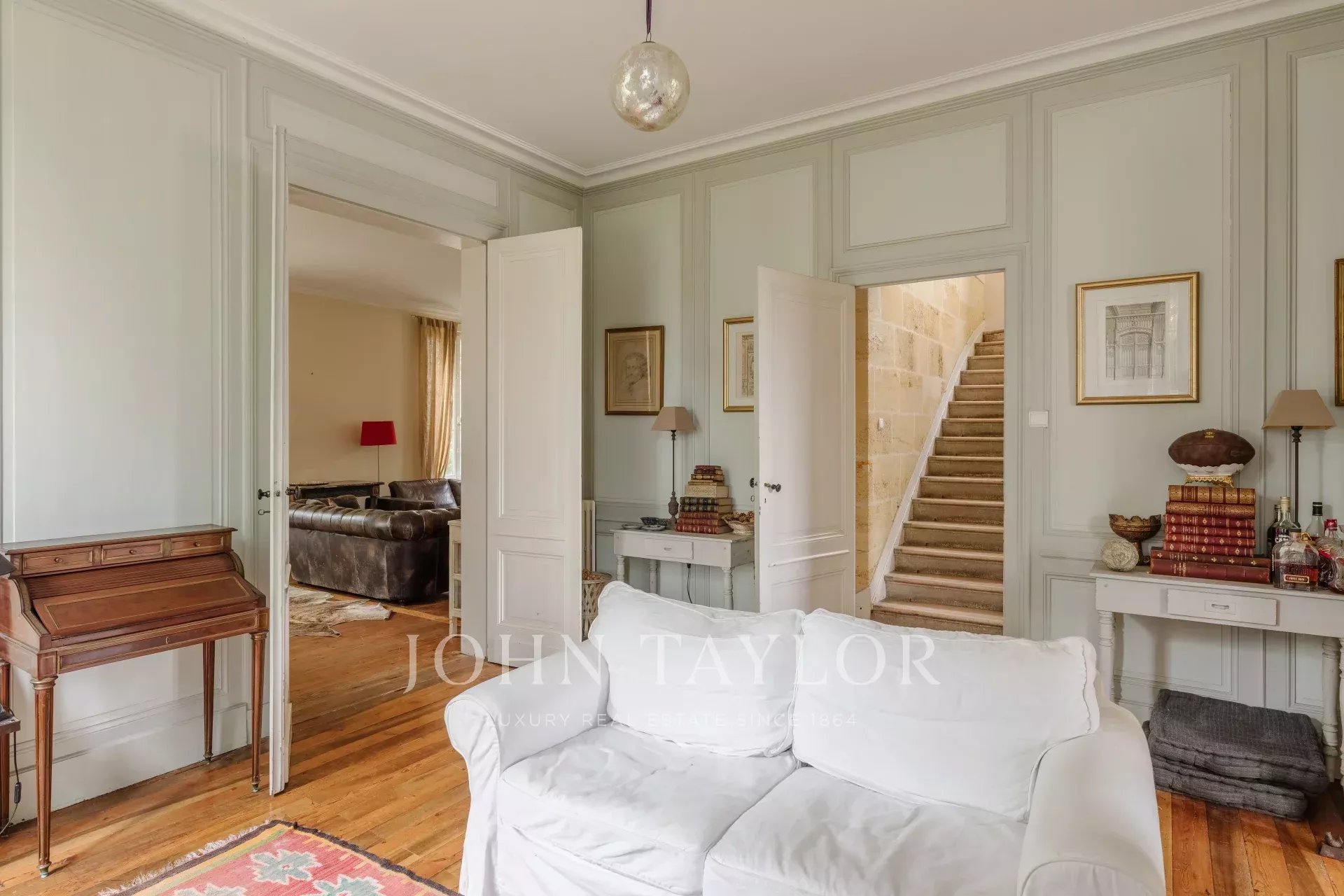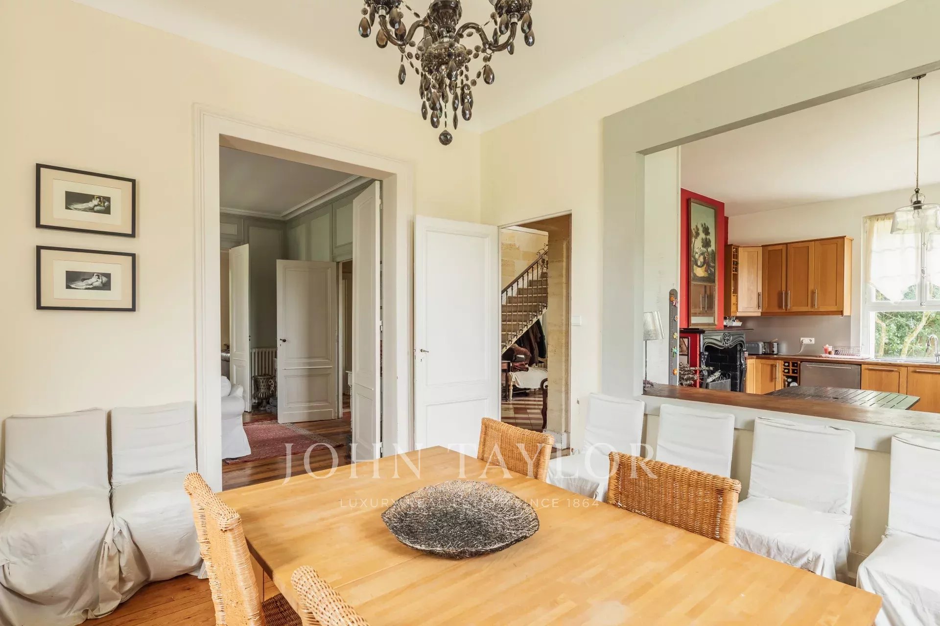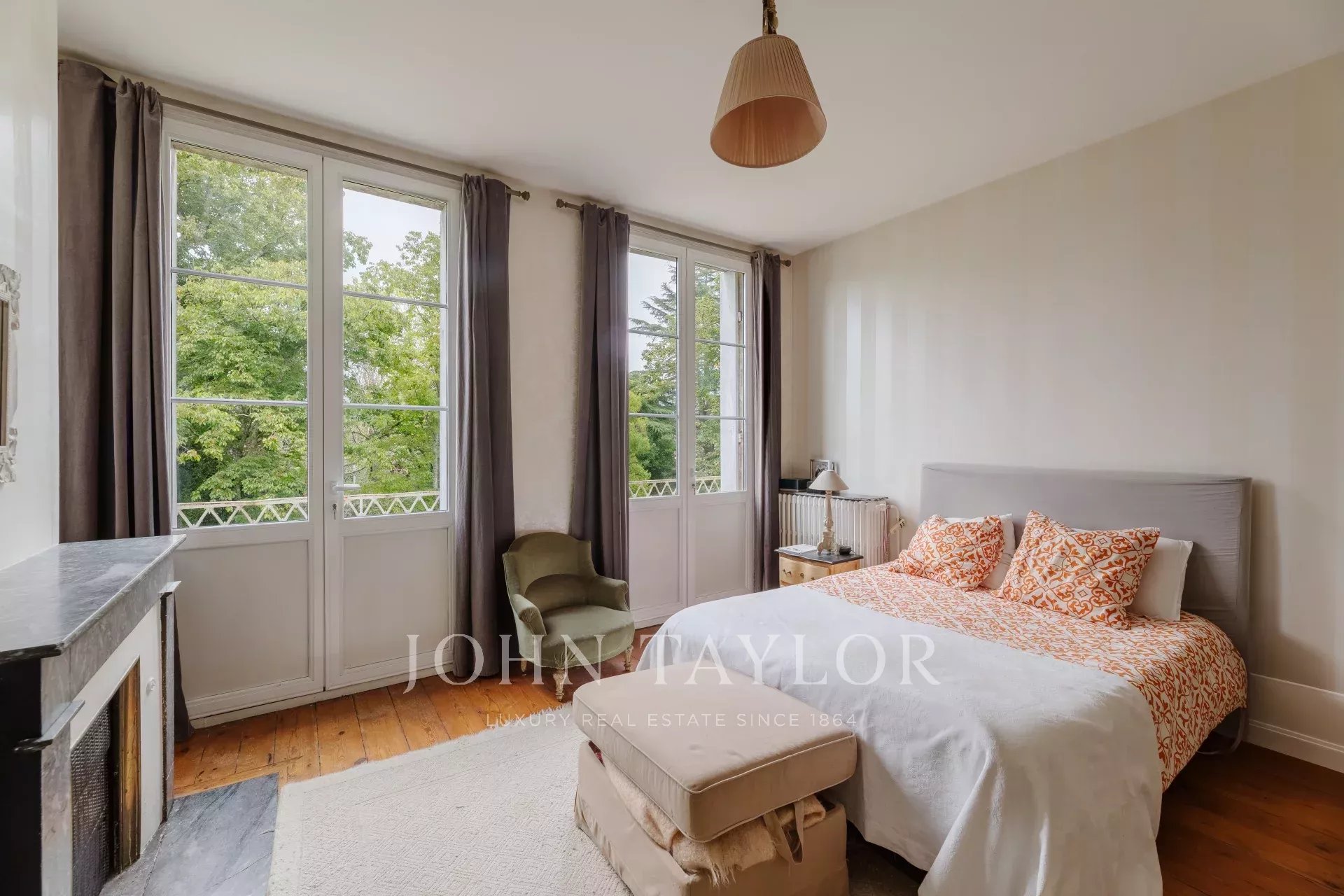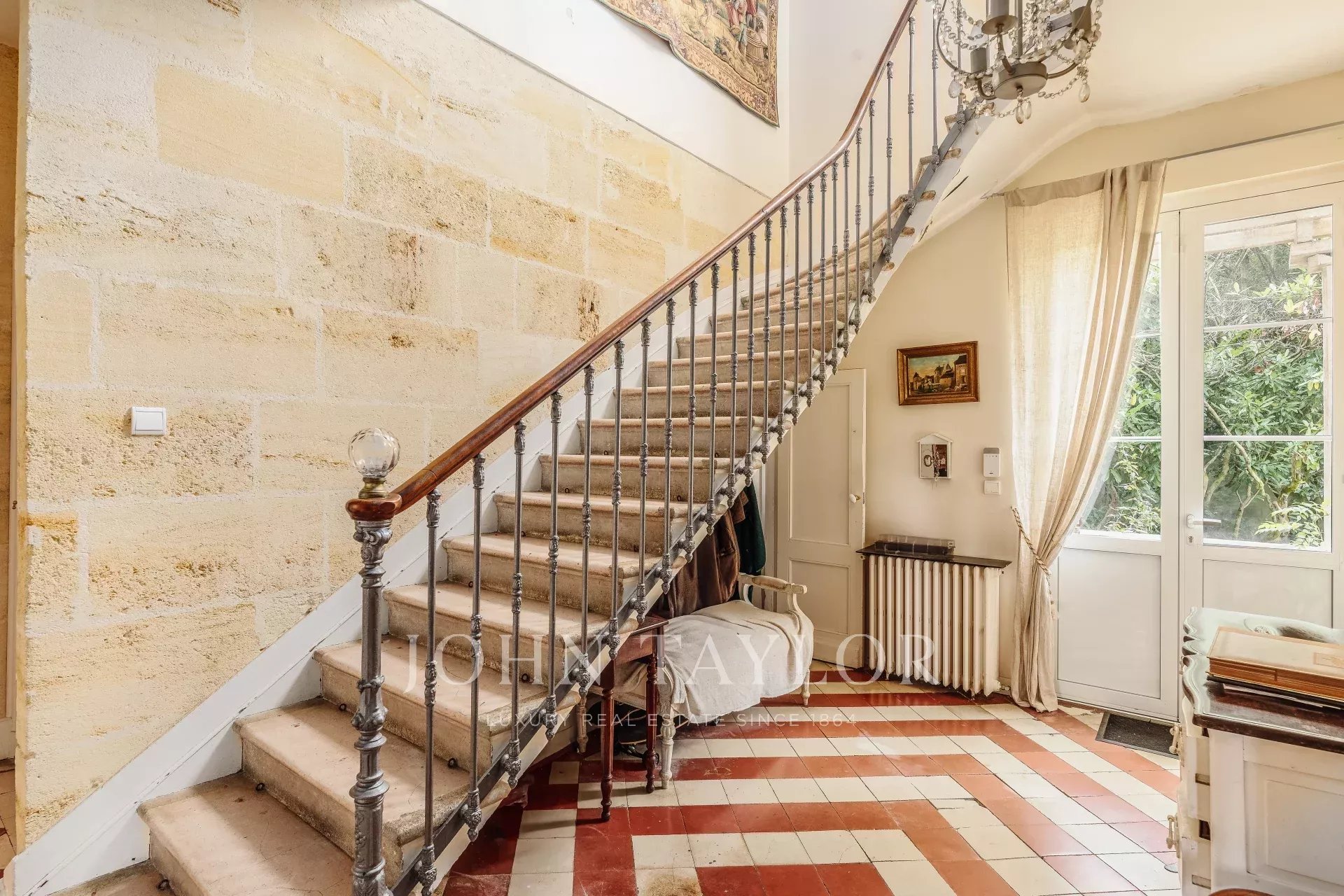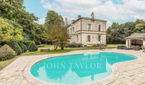 Located in Vayres, just a few minutes from Bordeaux, this magnificent 19th-century property spans approximately 368 sqm of living space, combining historic charm with exceptional potential. Nestled in the heart of a beautifully landscaped 4,200 sqm park, it offers a unique lifestyle in absolute tranquility, while being close to all amenities.