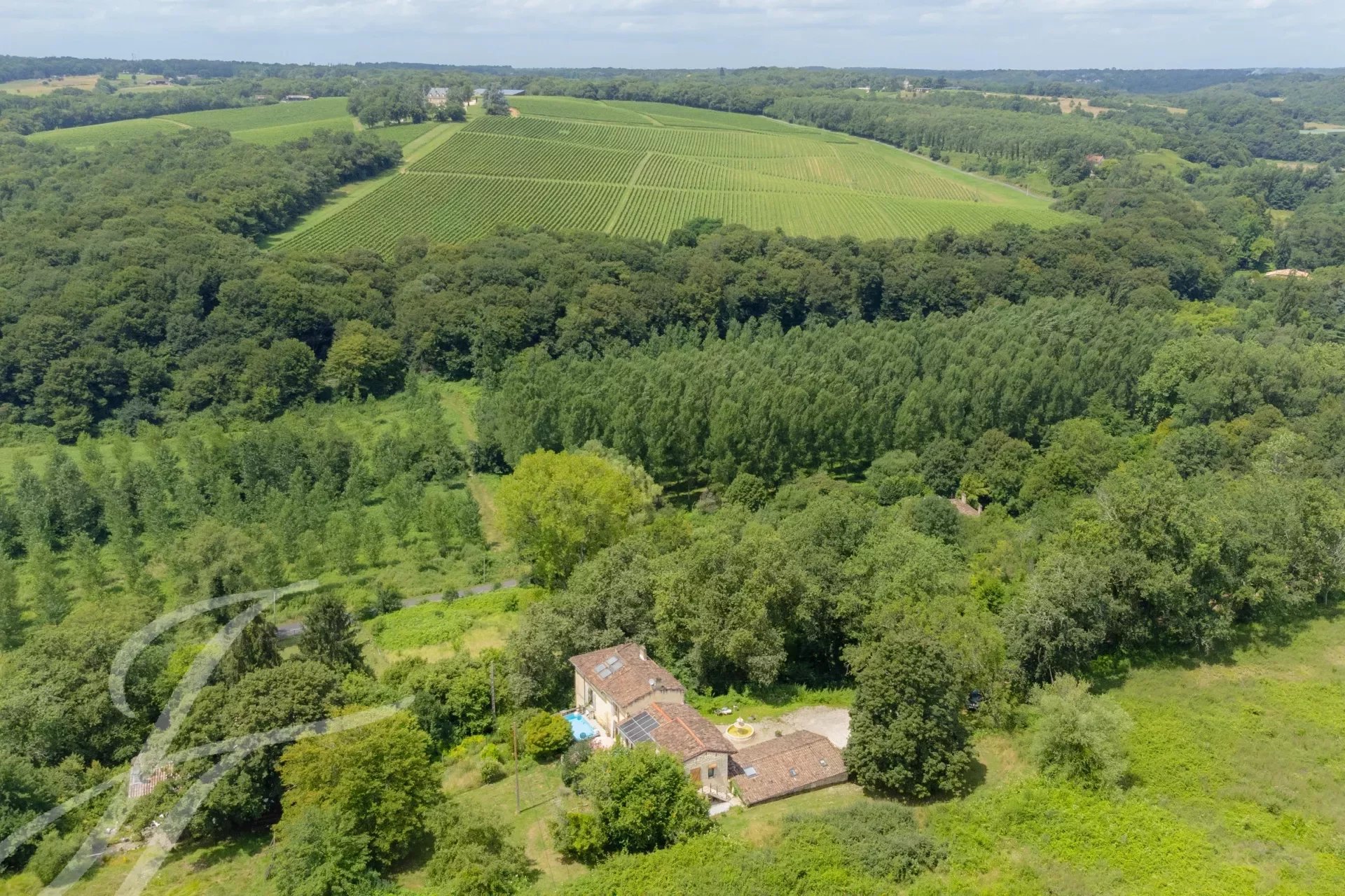 Located in the Entre-deux-Mers region, this property is 25 minutes from Bordeaux Saint-Jean Station and 29 minutes from Saint-Émilion. The ocean beaches are accessible in just 60 minutes by car. The residence features an art studio, a vegetable garden, and an environment rich in local wildlife, including deer, horses, sheep, and hares.
