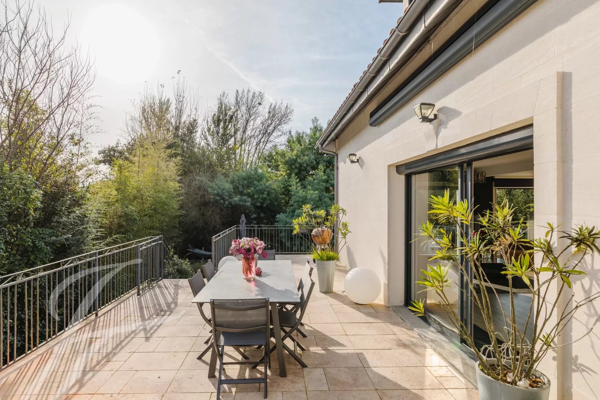 Indoors, the house boasts a sophisticated combination of style and functionality. A welcoming fireplace creates a cozy atmosphere in the living area, while an intercom system ensures secure communication throughout the property. The house combines timeless elegance with contemporary amenities, making it a perfect sanctuary in one of France's most desirable regions.