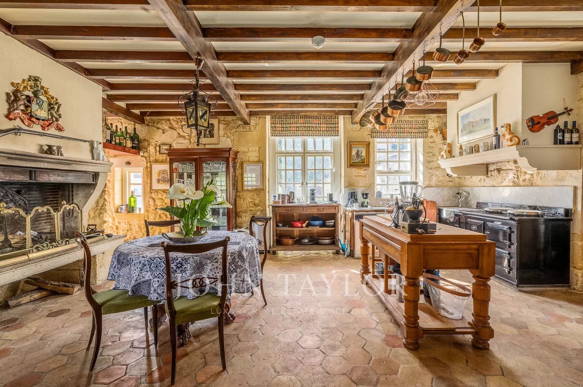The estate, made up of several buildings totaling some 2,200 m², boasts several prestigious spaces suitable for organizing events. A spacious reception hall, seating up to 200 people, is ideal for large-scale receptions. In addition, three sub-commission rooms are available for more intimate meetings. An Irish bar, a nod to the current owner's influence, adds a unique touch.