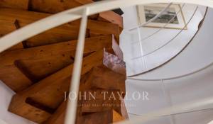 Upstairs: four bedrooms, two bathrooms, study, play area or second office. Plenty of built-in storage space, air-conditioning and an attractive layout provide everyday comfort. The character of the old house has been preserved: stone walls, fireplace, period staircase.