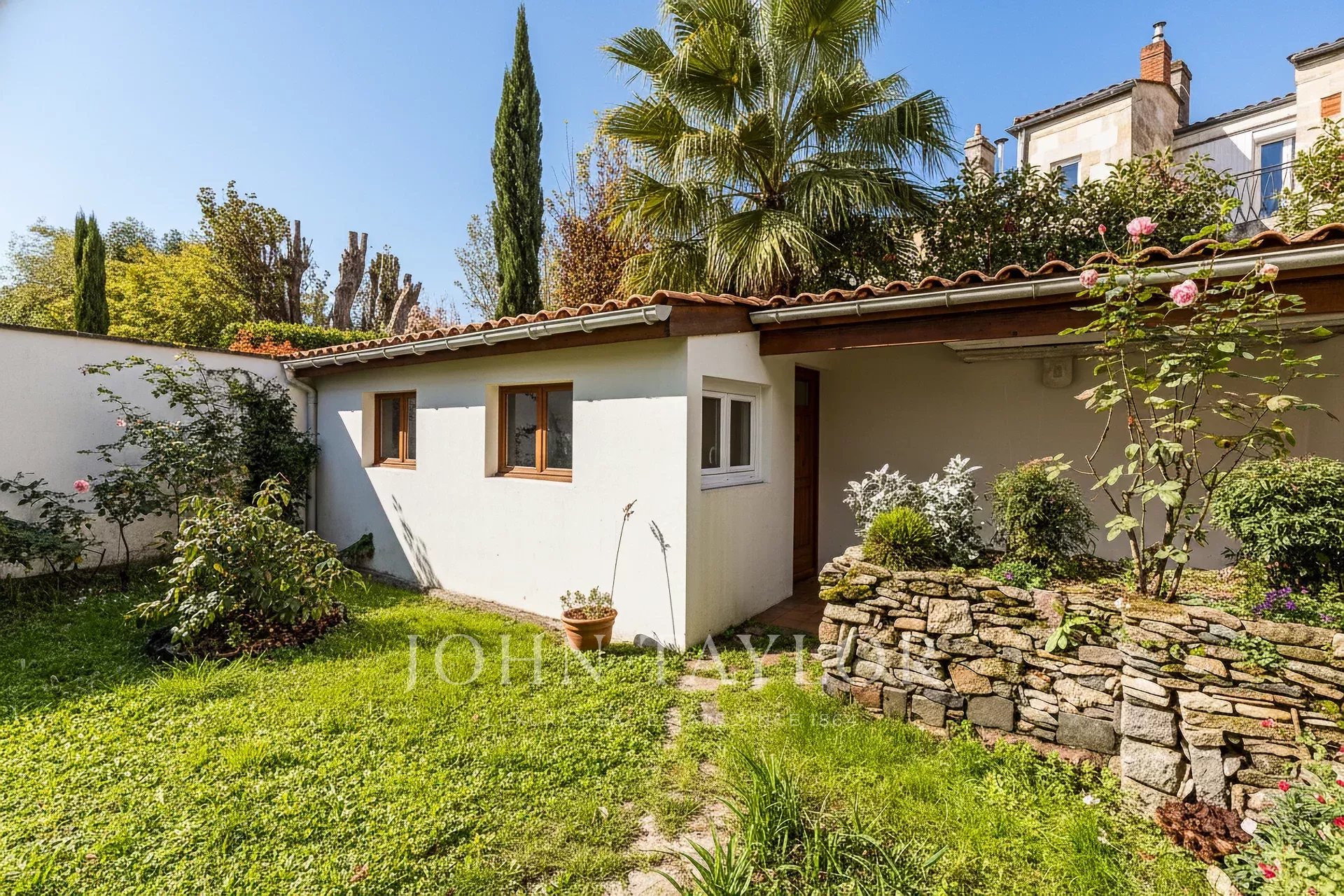 Behind an attractive stone facade, charming, bright two-storey house with large, south-facing, quiet 100 m² garden. Close to schools in the Jardin Public district.